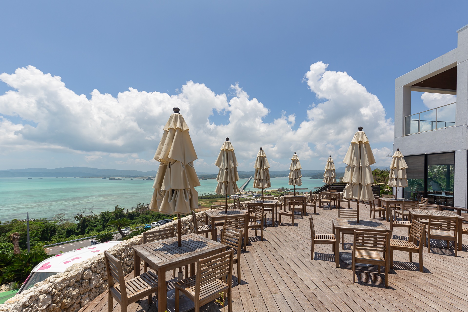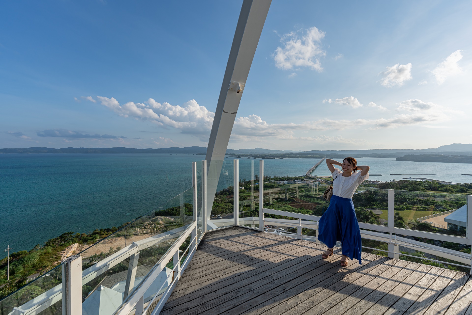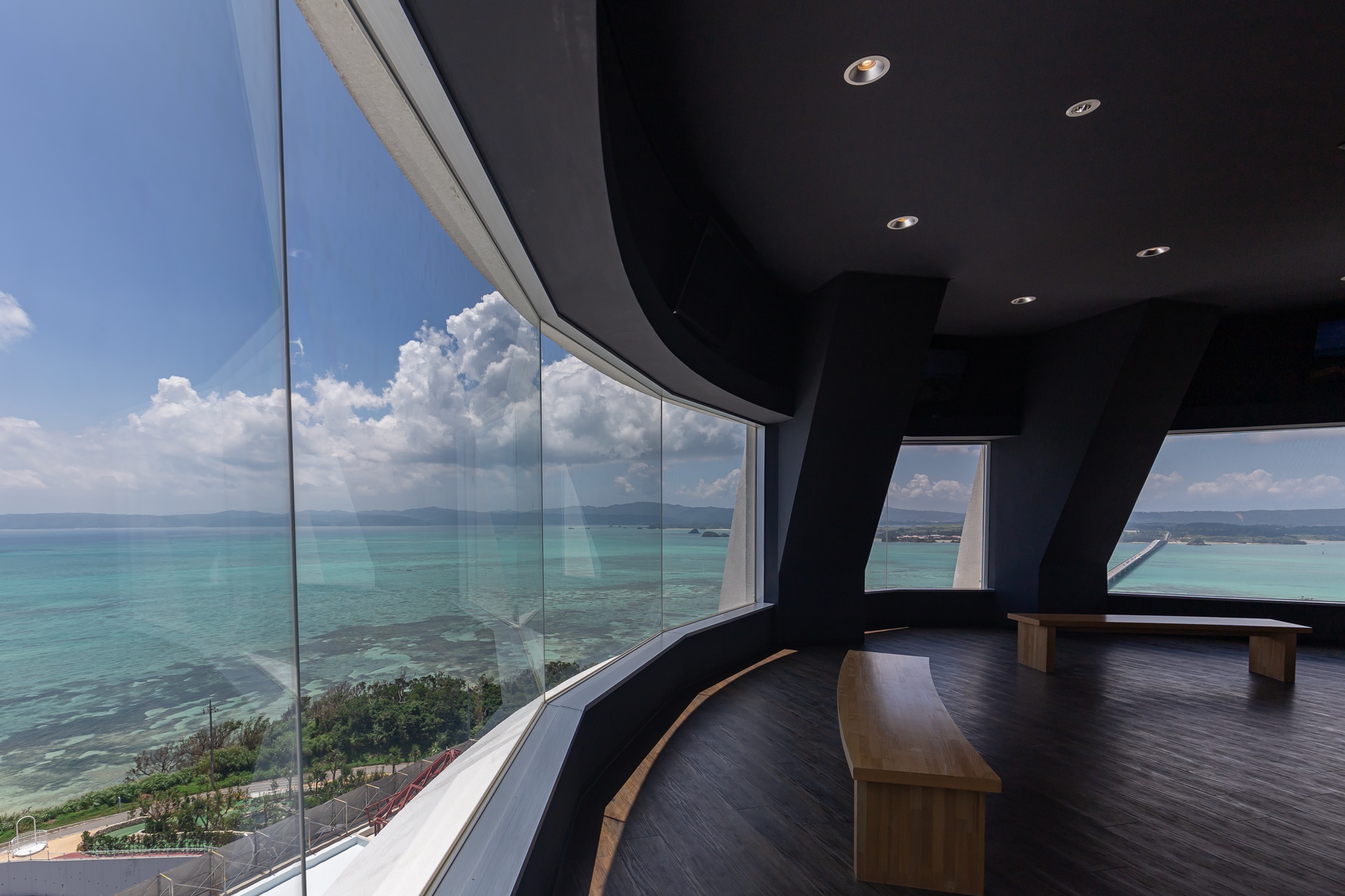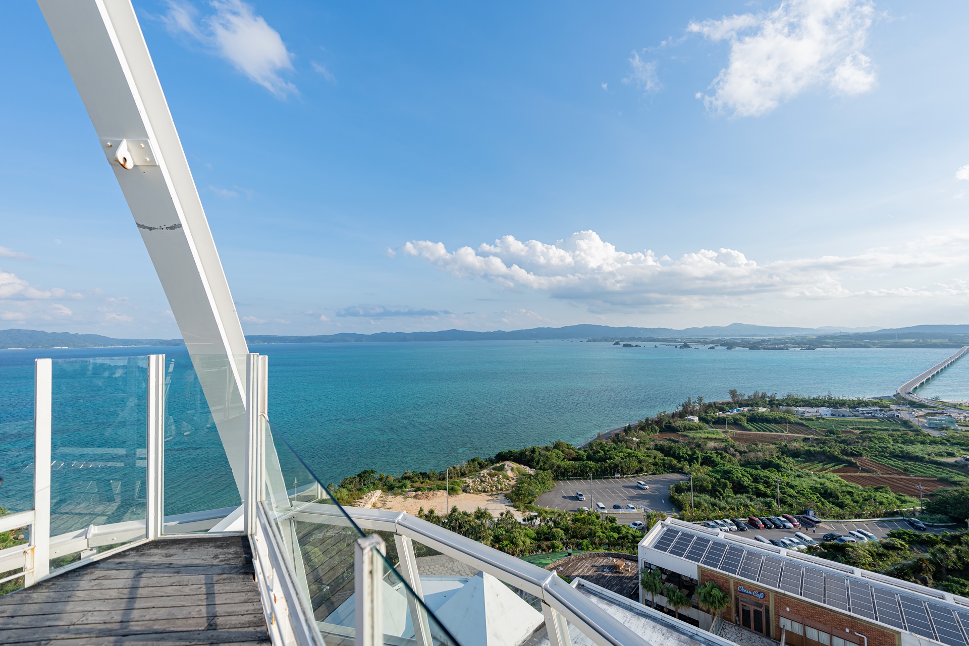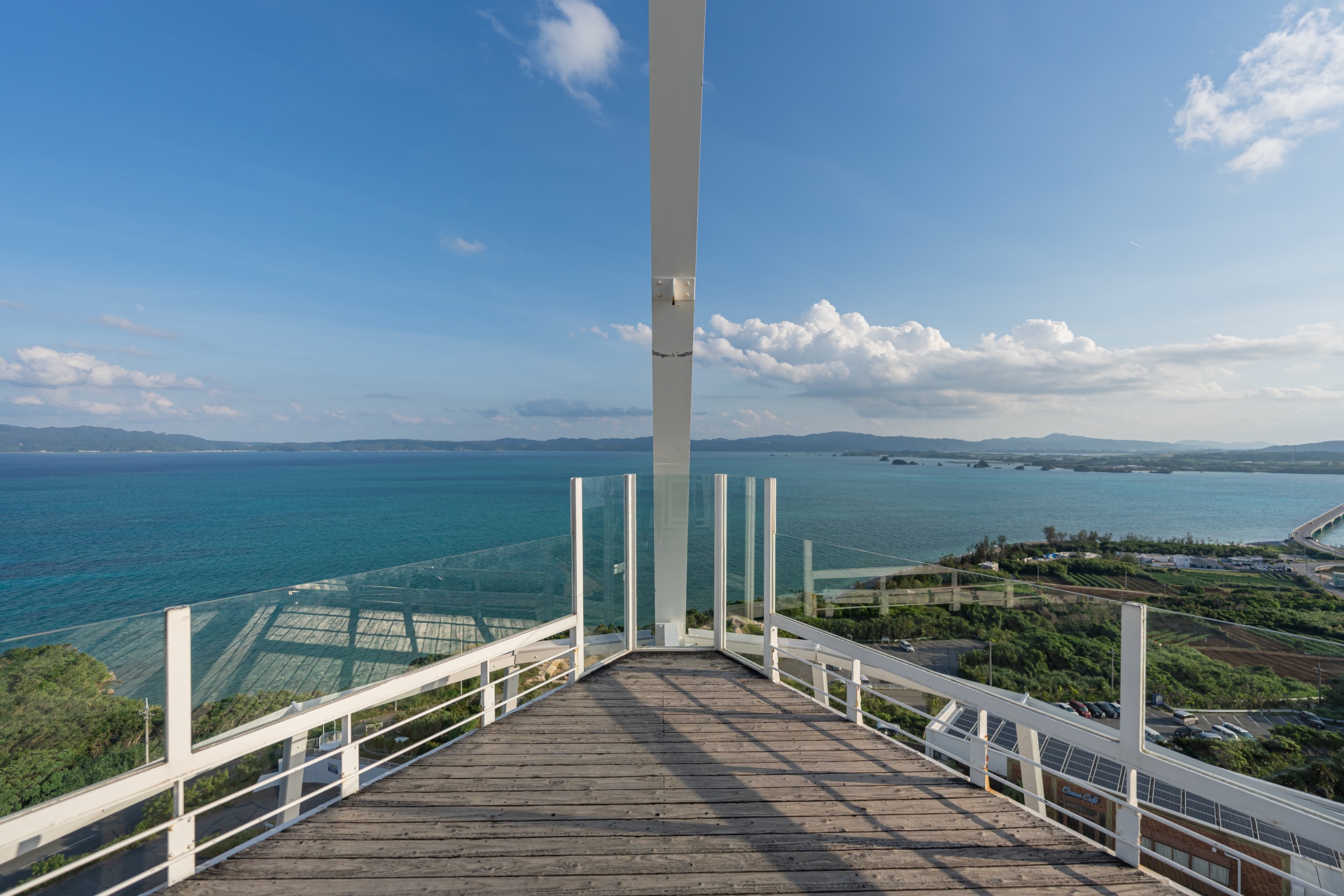 야외 전망대에서의 풍경은 불어오는 오키나와 바다 바람과 함께 시원하게 펼쳐집니다.