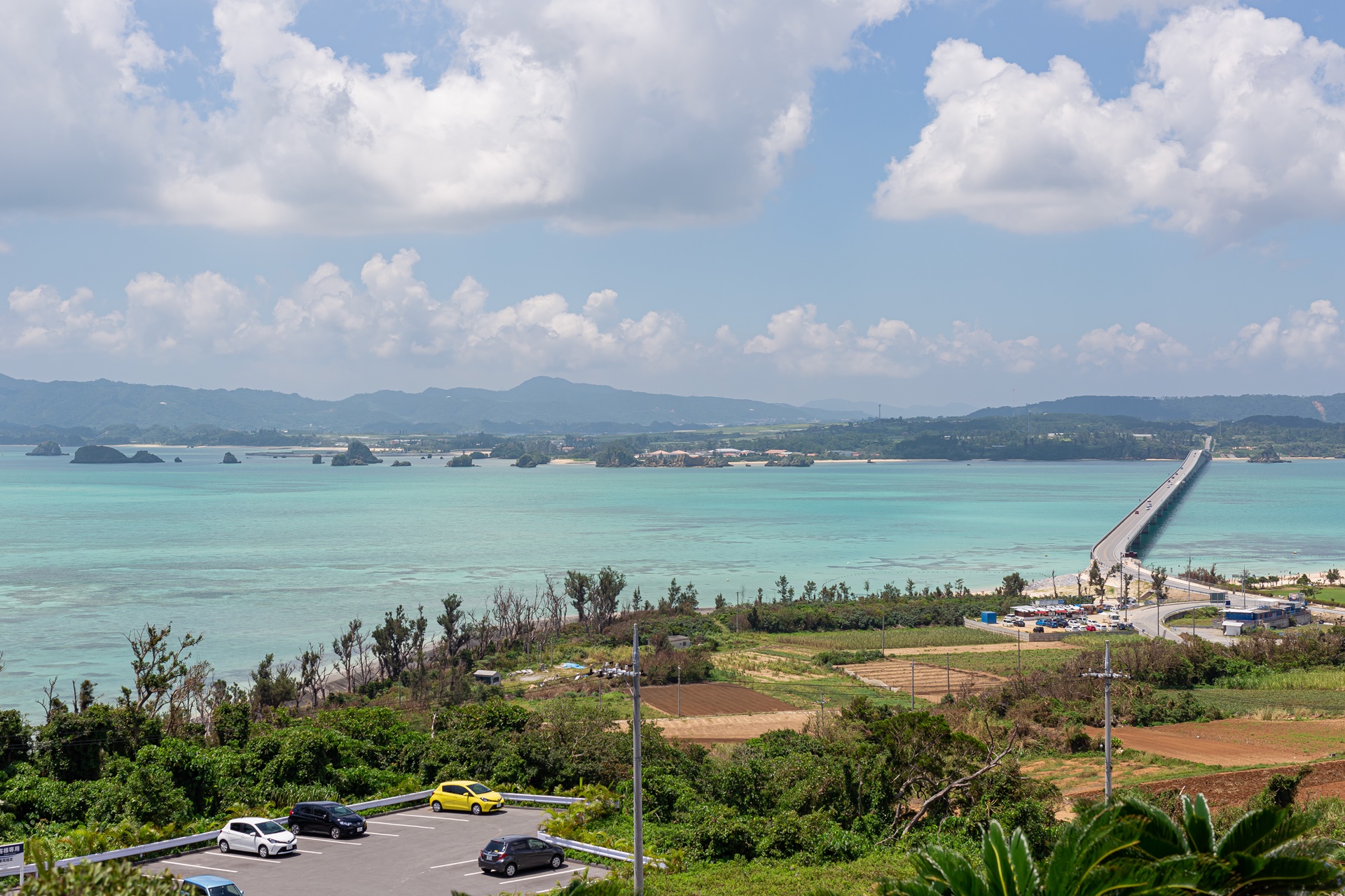고우리 섬까지 섬들을 연결하는 고우리 대교와 와루미 대교(ワルミ大橋)