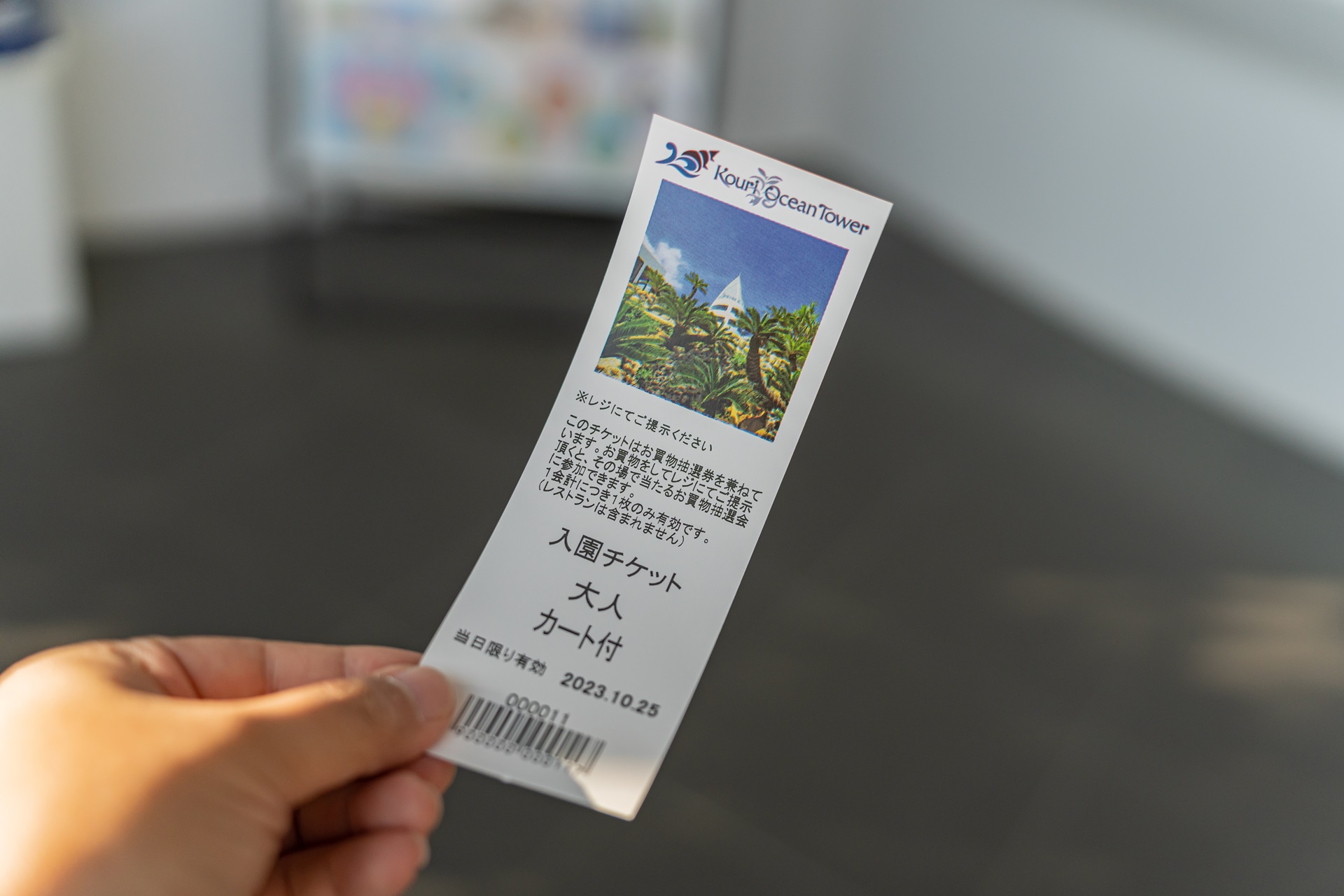 입장 요금은 1,000엔 바코드가 찍혀 있는 티켓을 들고 이동합니다.