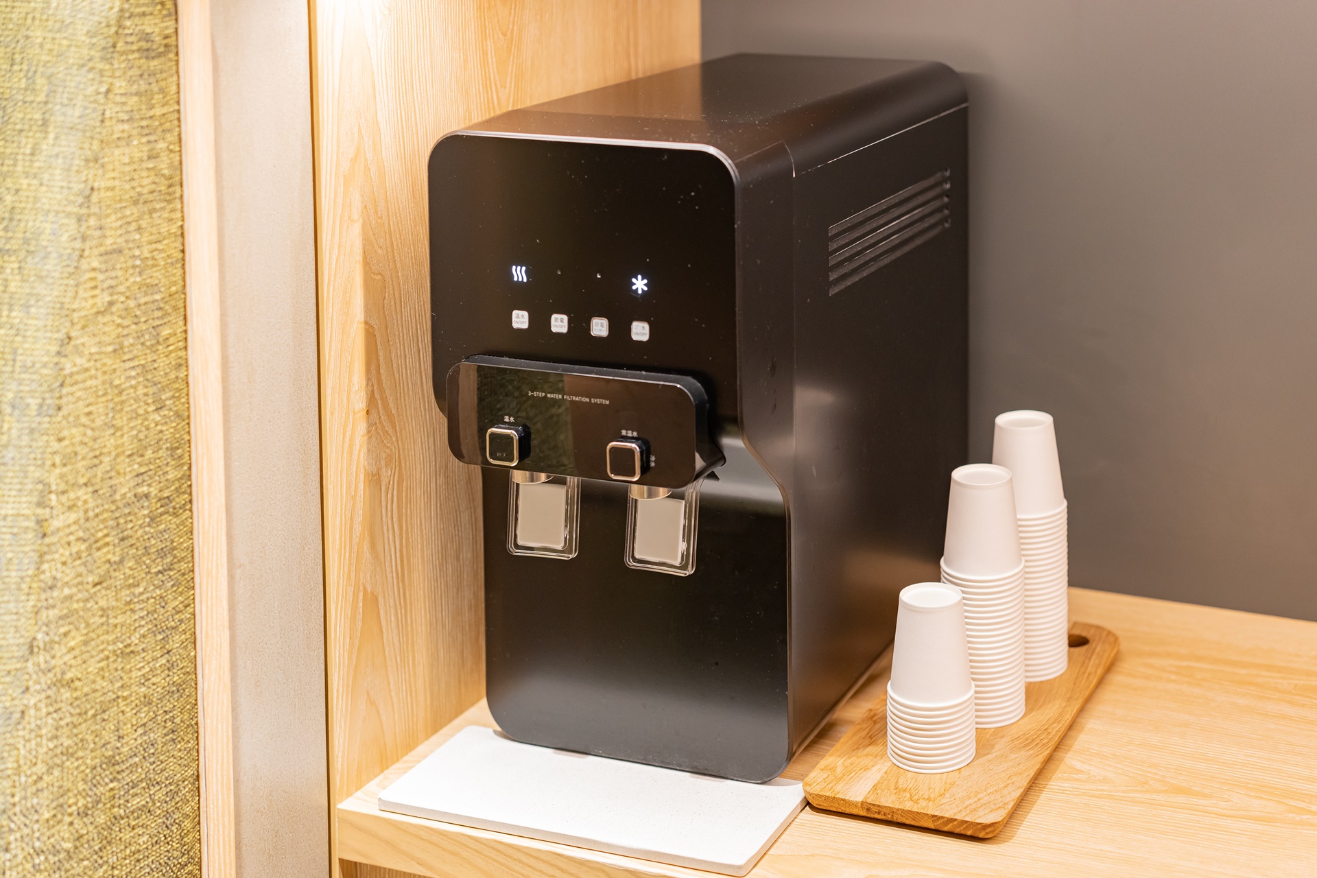 호시노 리조트는 물이 패트병으로 제공되지 않고 대신 물통과 함께 로비나 카페에 정수기가 설치되어 있습니다.
