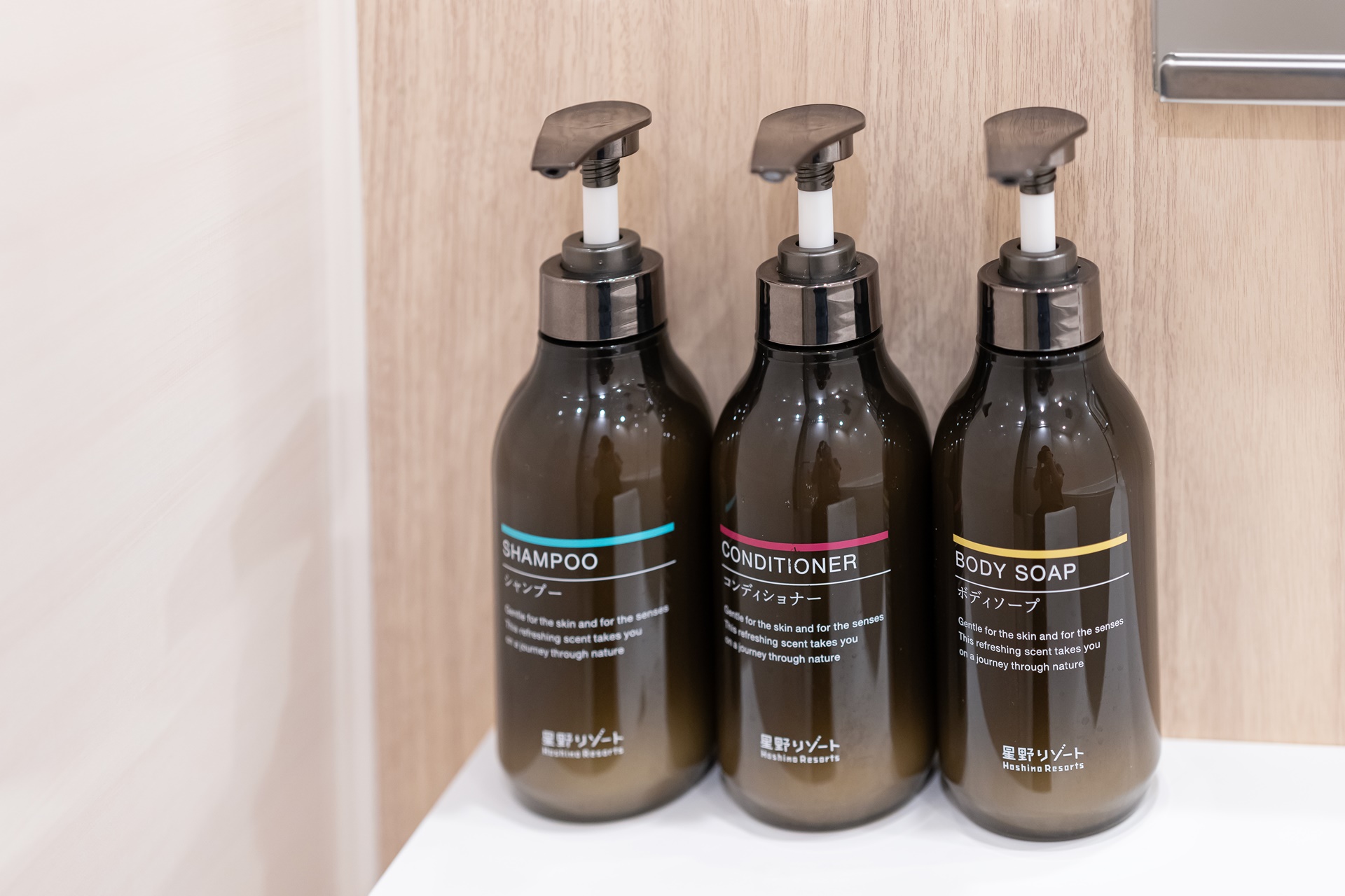 호시노 리조트에서 직접 제공하는 샴푸, 컨디셔너, 바디 소프
