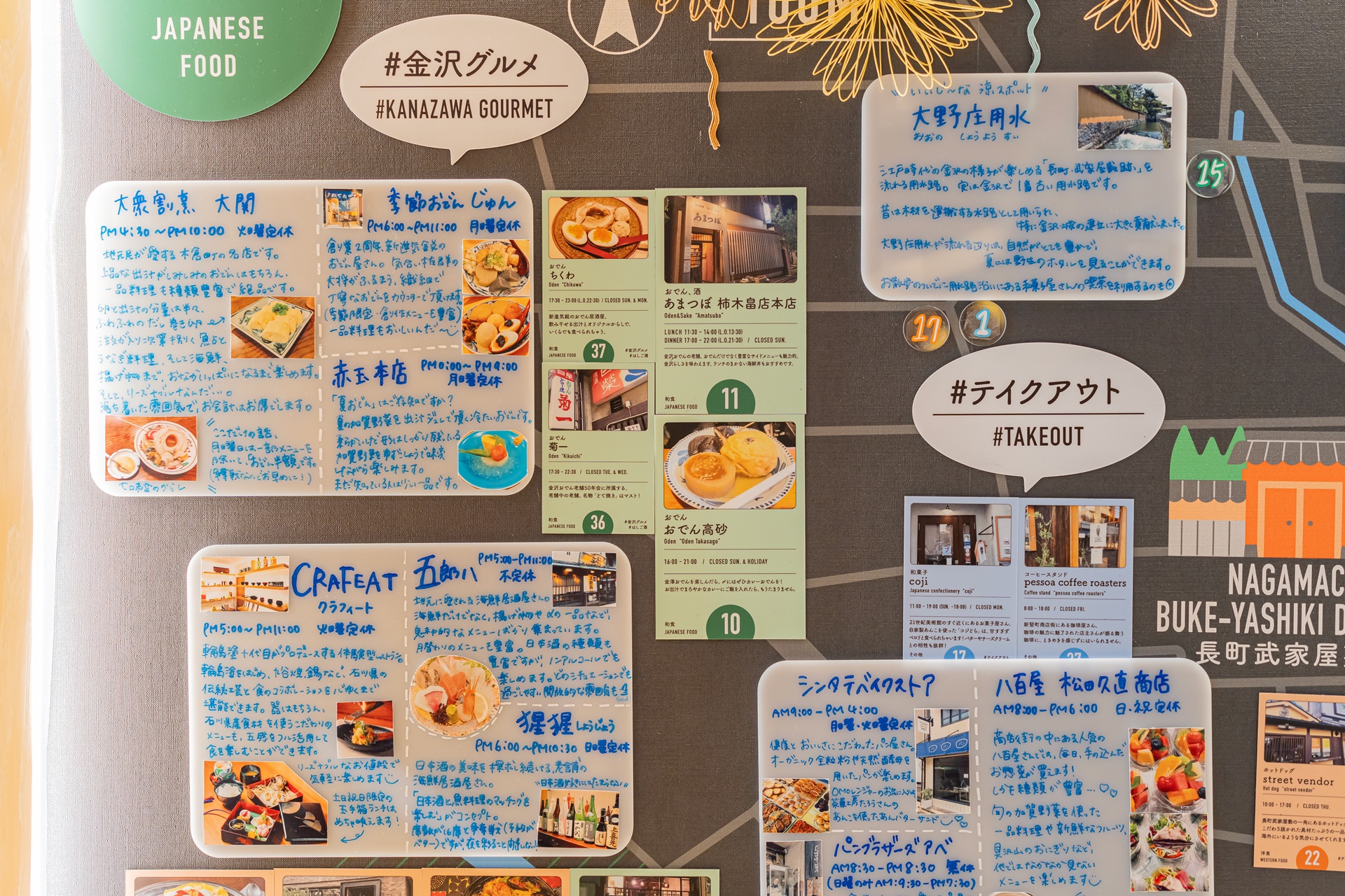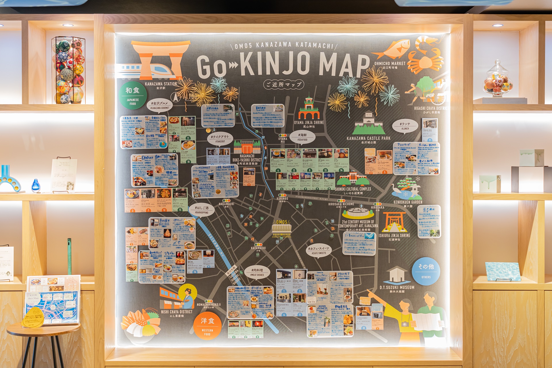 오모5 가나자와 가타마치 호텔에는 고킨죠 맵이라는 주변 지역을 안내하는 맵이 설치되어 있어 관광정보나 맛집 정보를 얻을 수 있습니다.