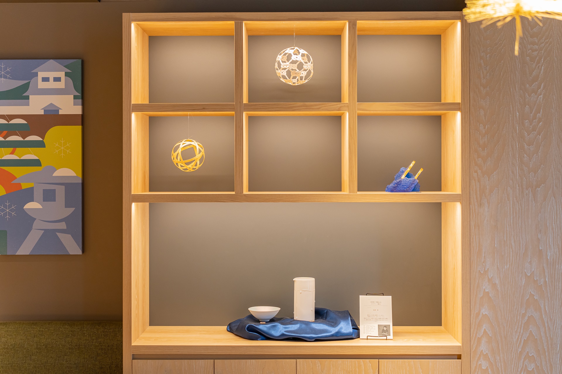 로비에는 다양한 가나자와의 공예 품과 함께 가나자와의 정보를 얻을 수 있는 책이 놓여 있었습니다.
