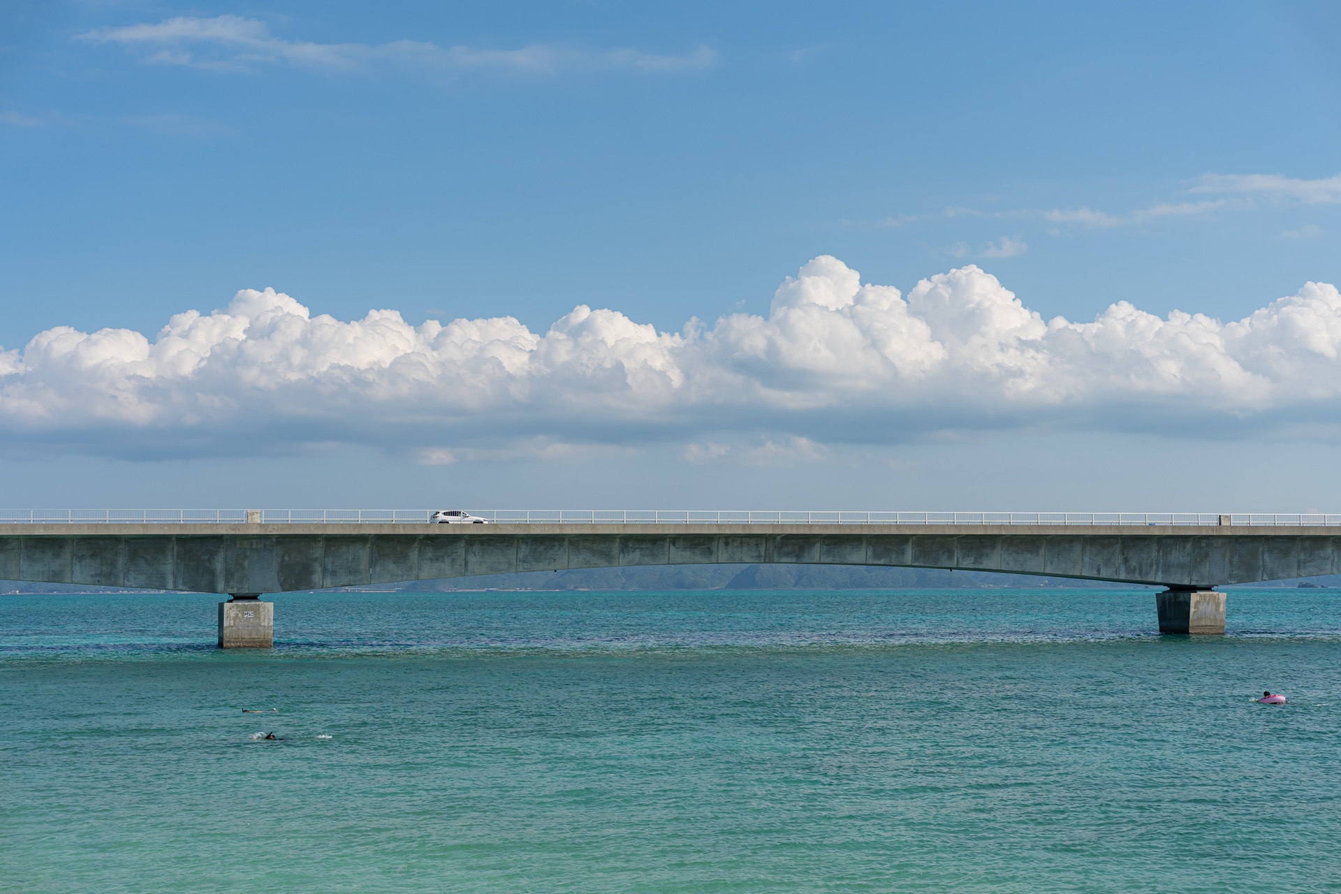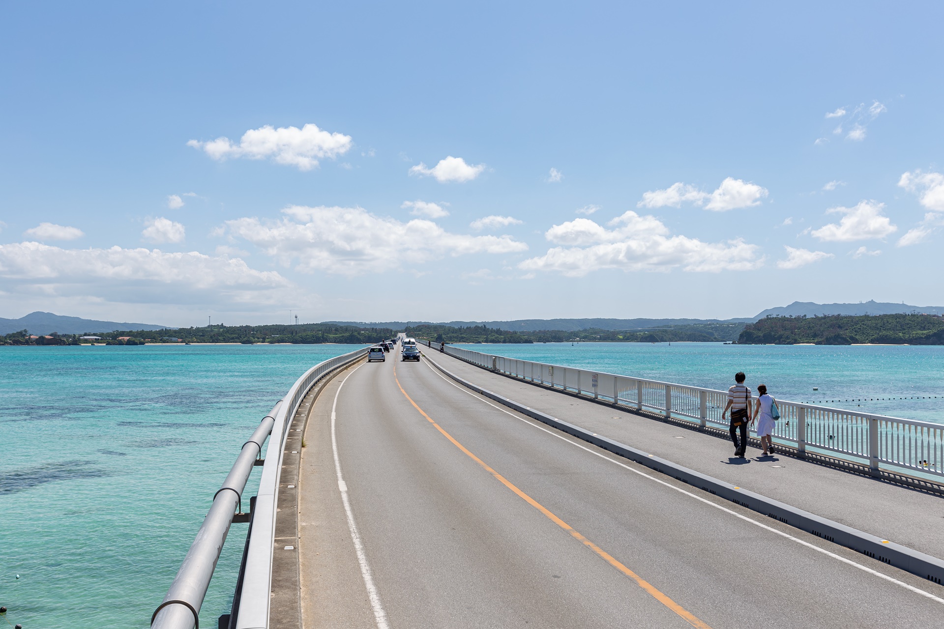 고우리지마 소라하시에서 조금만 걸어가면 고우리대교와 고우리 비치, 해변이 펼쳐집니다.