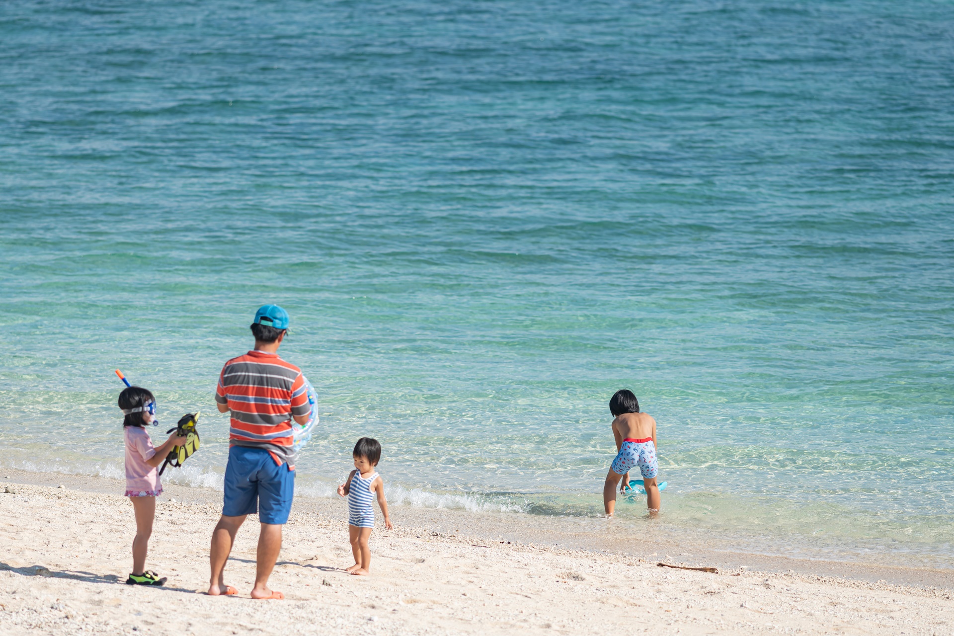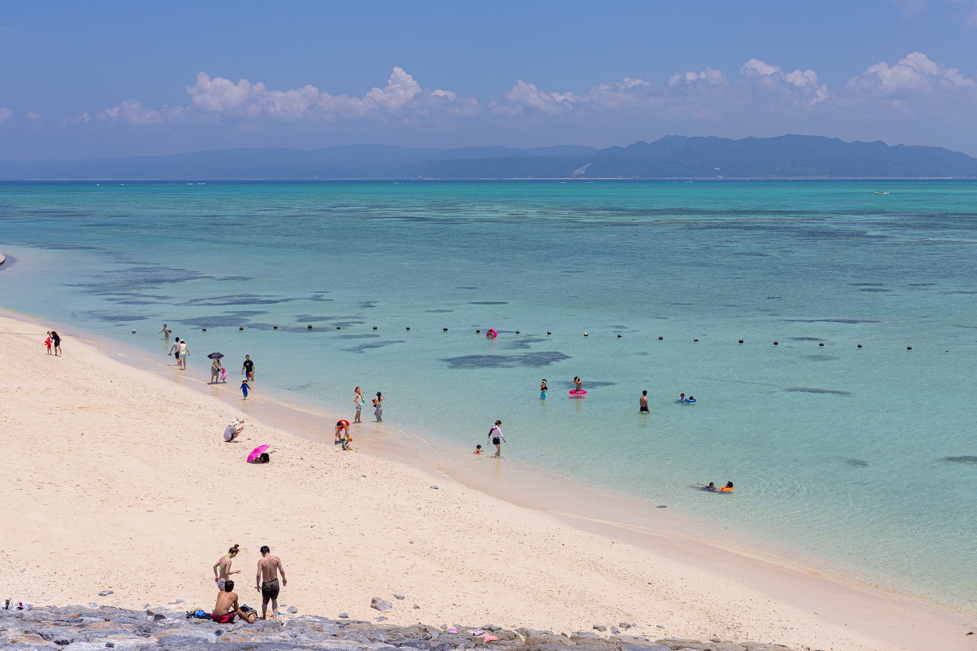 저마다의 방법으로 오키나와의 해변을 즐기는 사람들