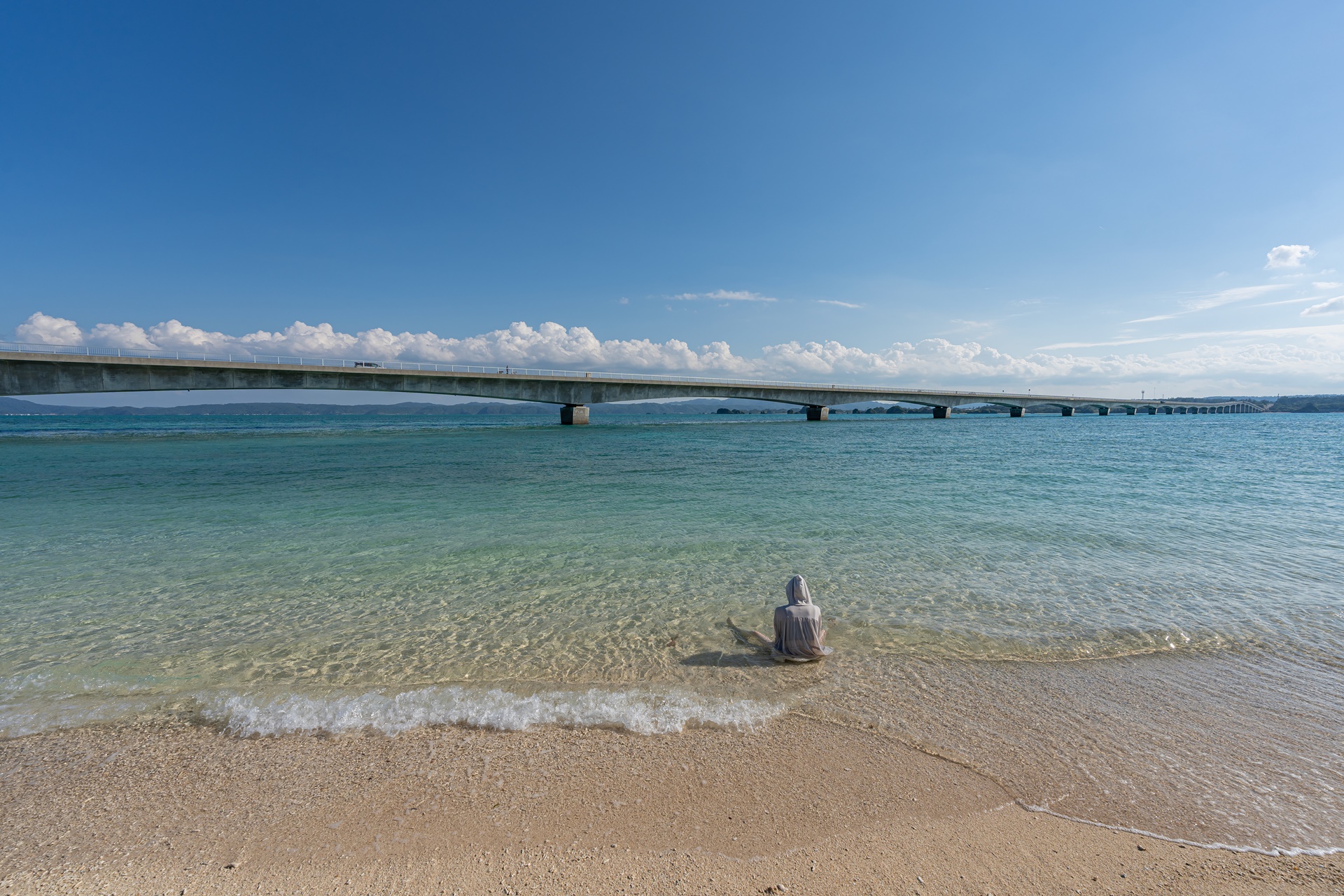 고우리지마의 고우리 대교를 감상하기 좋은 고우리 해변