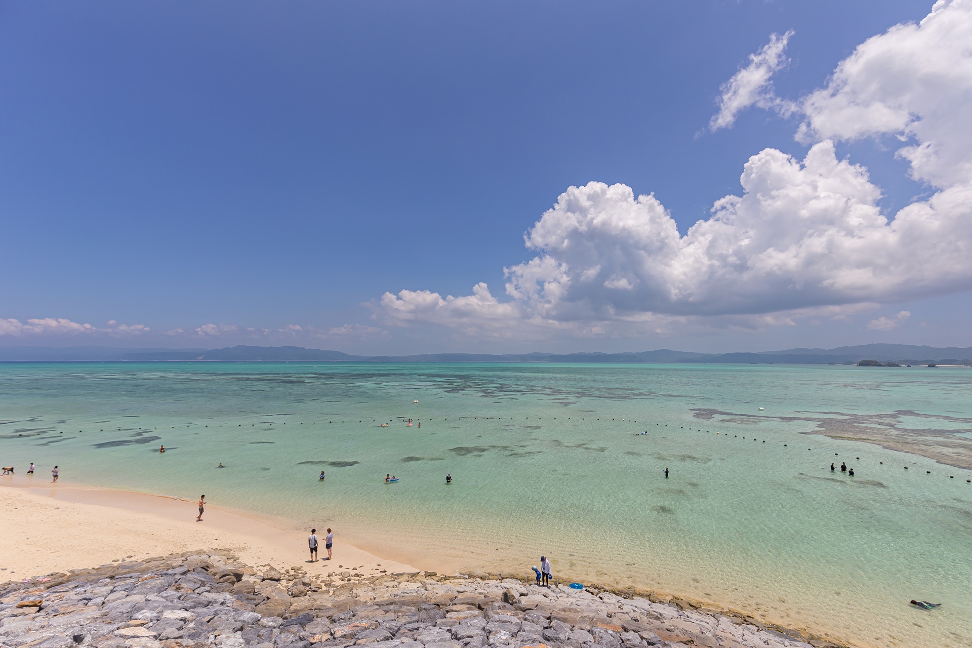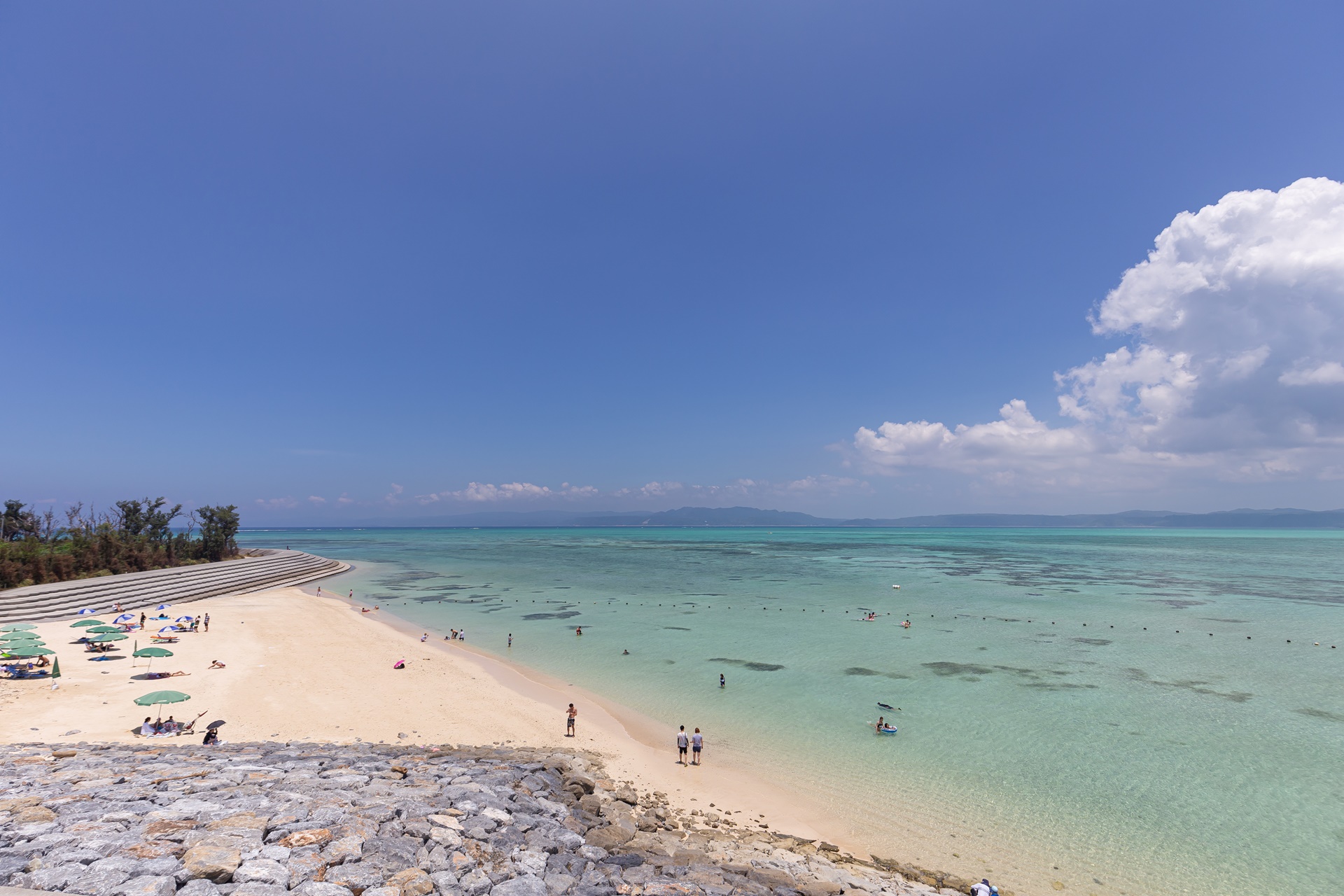 고우리지마는 바다가 얕고 넓으며 간만의 차가 큰 편이라 해수욕을 즐기기에 좋습니다.