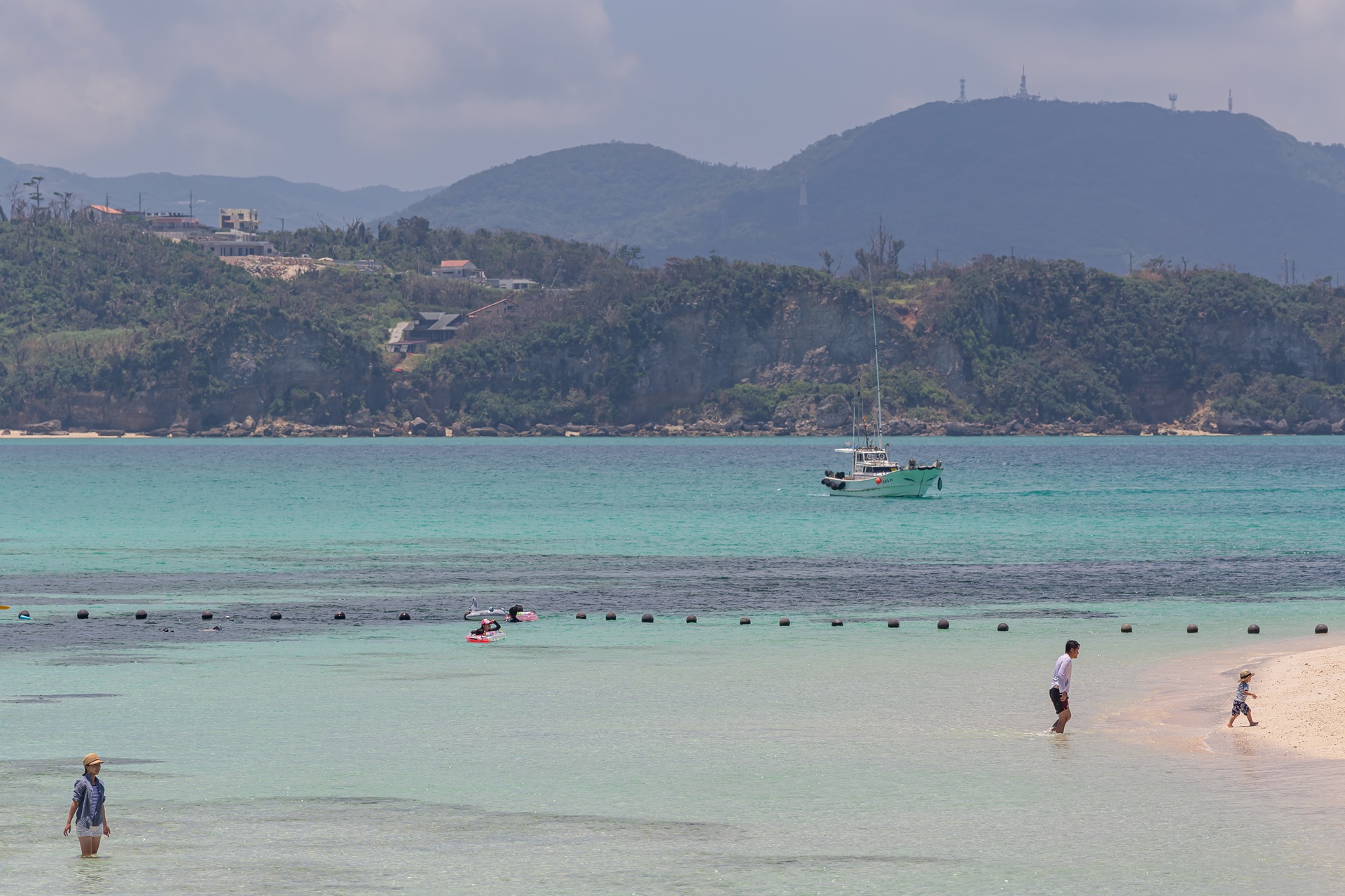 다양한 방법으로 고우리지마 해변을 즐기는 사람들