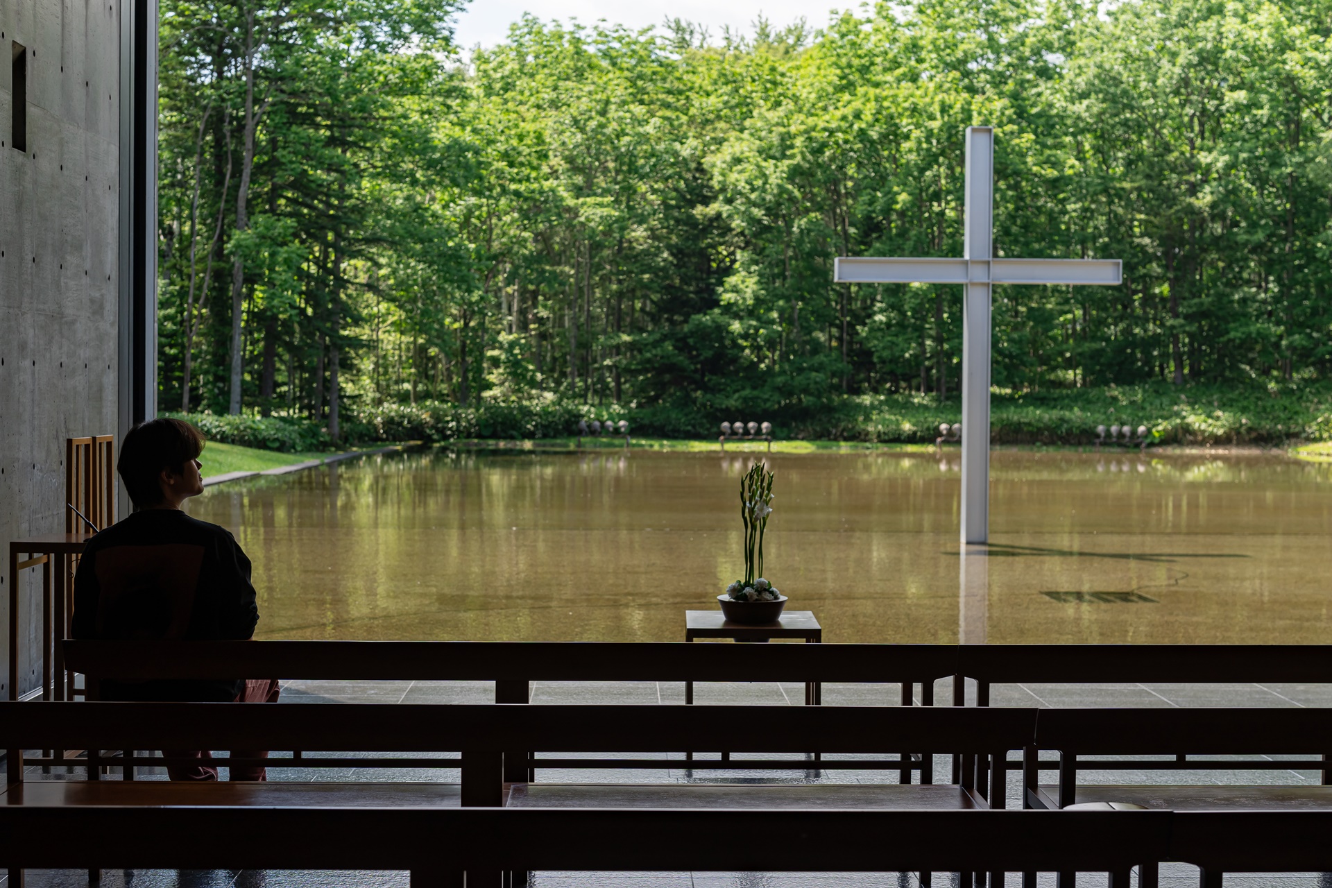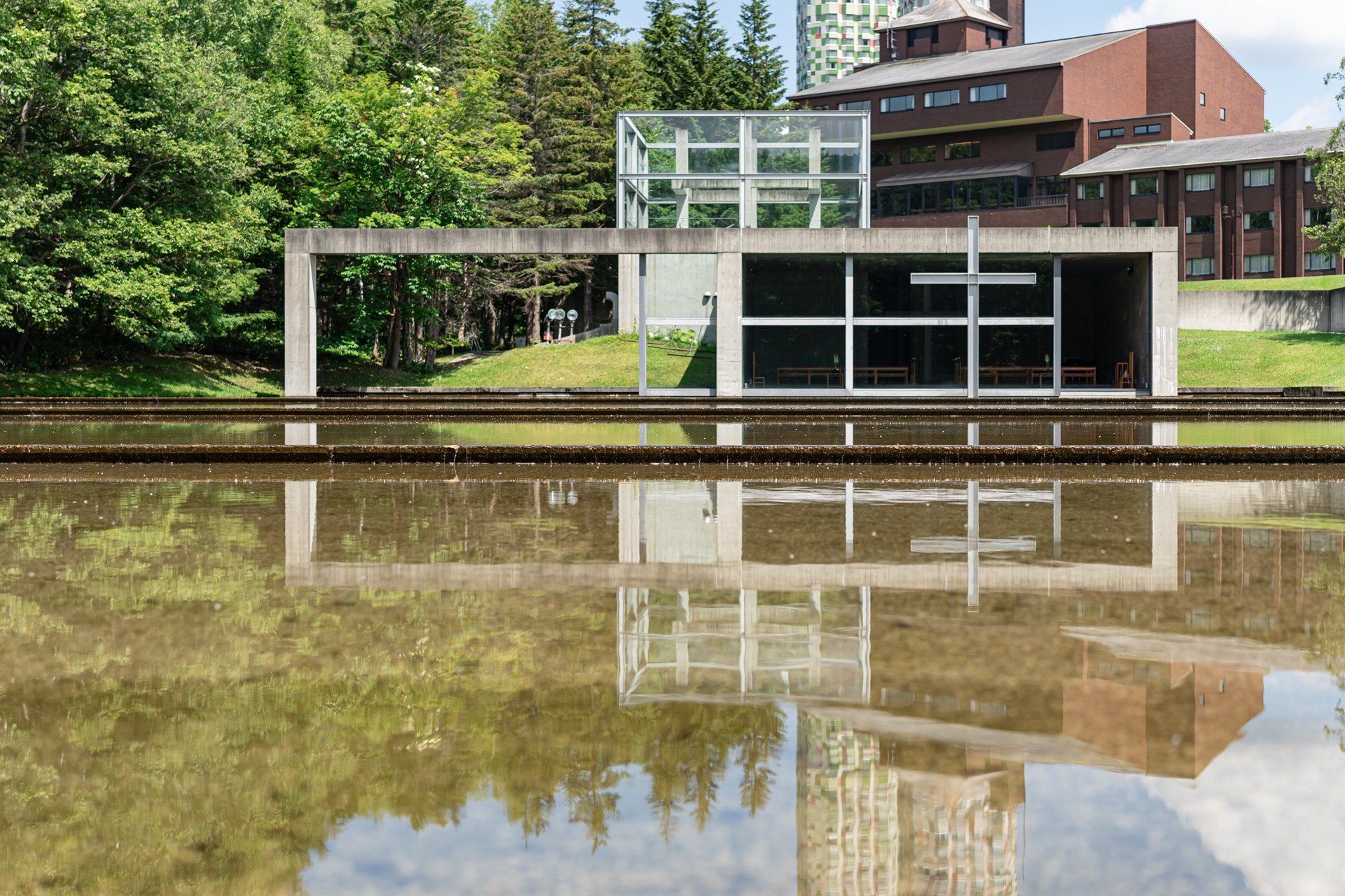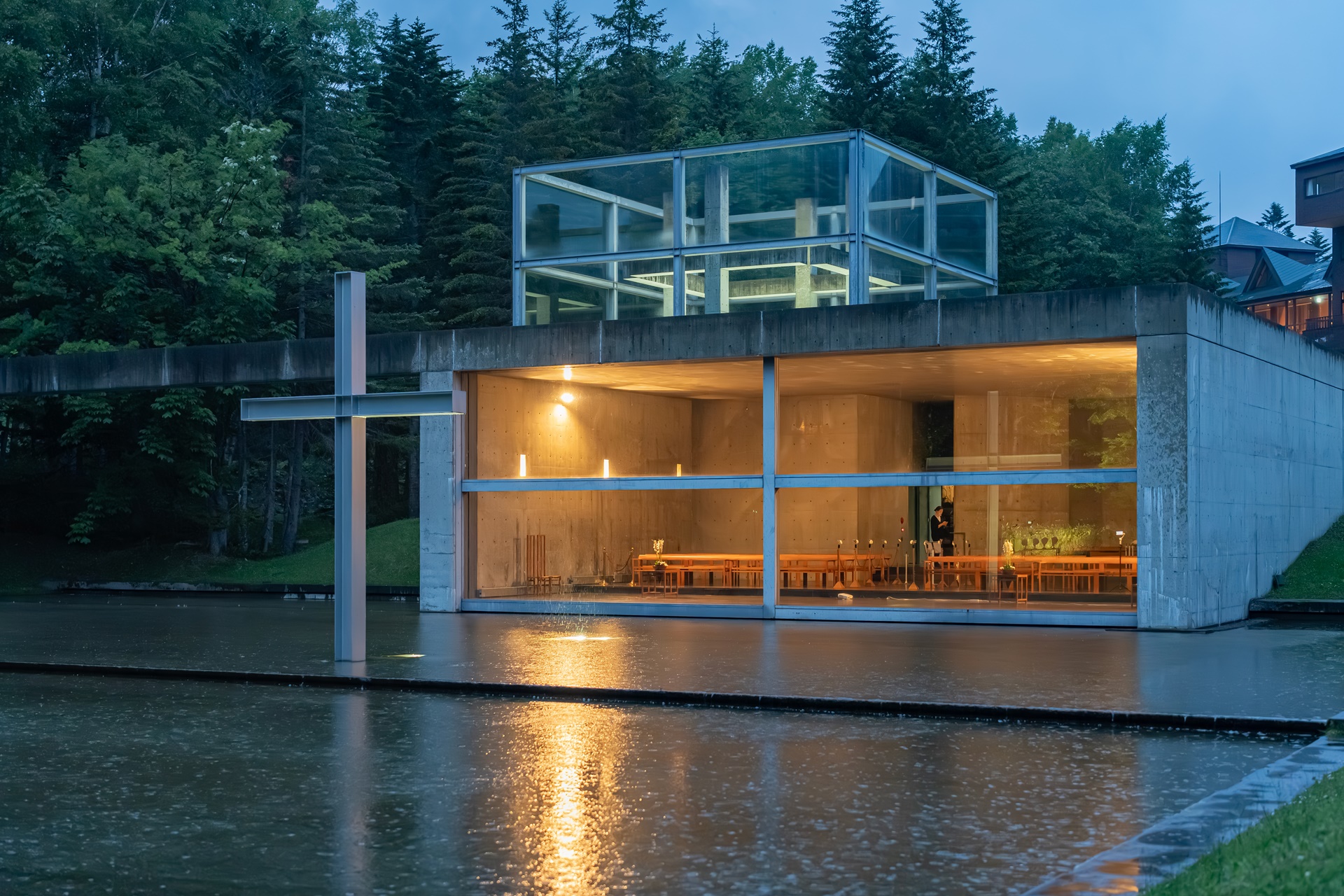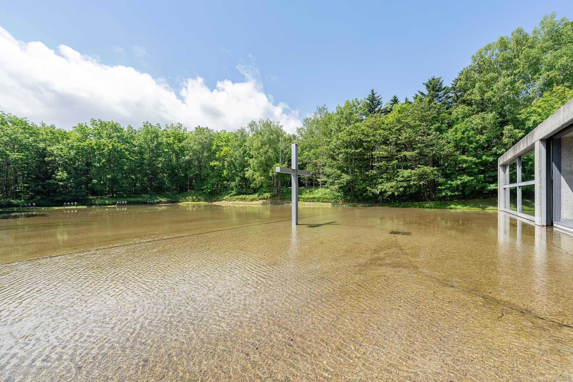 홋카이도 여행, 호시노 리조트 토마무 안도 다다오의 물의 교회 일본의 대표적인 건축가이자 세계적으로도 유명한 안도 다다오의 건축물은 노출 콘크리트 외관과 직사각형의 길다란 창이 특징