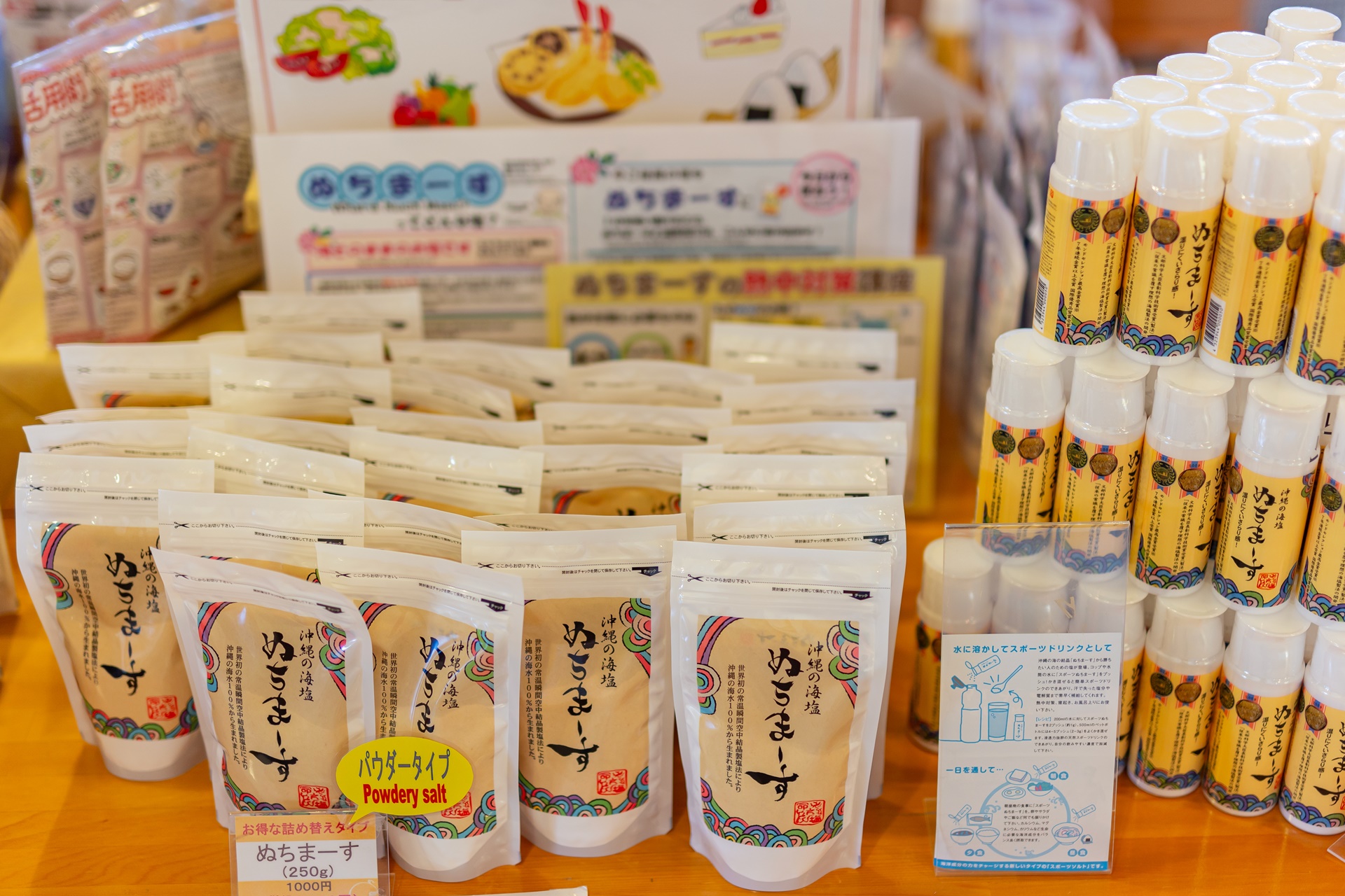 반대편인 북쪽의 미야기지마 섬에는 오키나와의 소금을 만드는 누치마스 소금 공장이 있습니다. 오키나와 말로 누치(생명), 마스(소금)을 의미하는 이곳의 소금은 투명도가 높으며 일반 정제염 보다 마그네슘 향량이 200배 높다고 합니다. 이곳만의 공정인 상온 순간 공중 결정 제염법(常温瞬間空中結晶製塩法) 으로 순도 높고 깔끔한 소금을 만들어 내며 이 과정을 직접 살펴볼 수 있도록 공간을 마련해 두었습니다. 제작한 소금은 이곳은 물론 오키나와 대부분의 기념품 가게에서 구입할 수 있습니다. 2층에는 레스토랑도 있어 이 소금으로 만든 다양한 요리를 맛볼 수 있습니다.