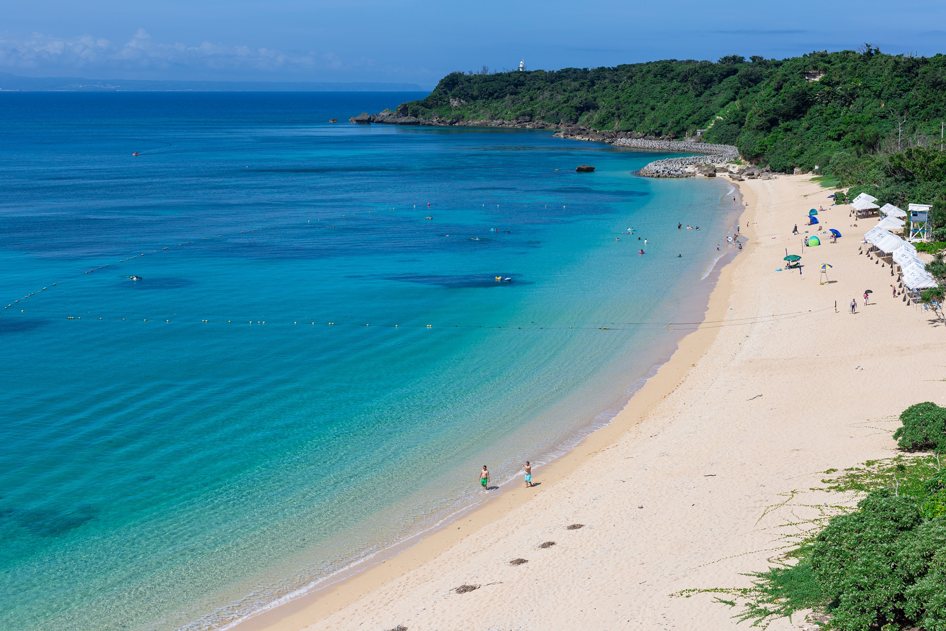 이케이지마의 서쪽이자 해중도로 드라이브의 거의 마지막 지점인 해변으로 약 400미터의 백사장이 길게 펼쳐져 있는 멋진 해변 입니다. 산호가 많아 다양한 물고기를 관찰 할 수 있으며 지형의 특성상 파도의 영향을 받기 어려워 맑은 투명도를 자랑합니다. 오키나와에서 가장 맑은 해변 중 한 곳으로 클리어 블루에서 에메랄드 그린, 딥 블루 등 다양한 바다의 색을 즐길 수 있습니다.