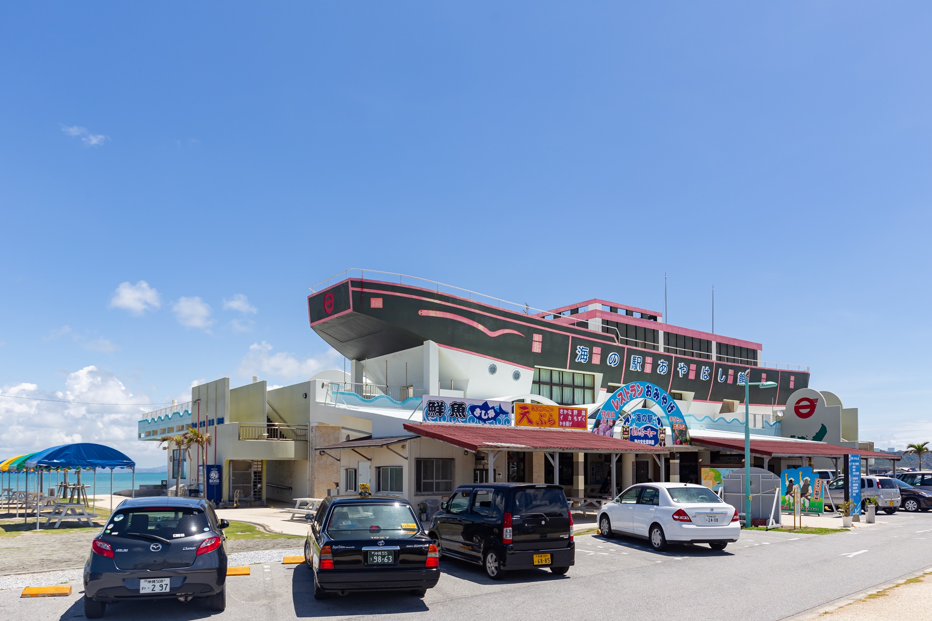 일본은 고속도로나 국도의 휴게소를 미치노에키(道の駅) 라고 부르며 바닷가 근처의 휴게소는 우미노에키 라고 부르곤 합니다. 해중 도로 중앙에 있는 휴게소로 주차장과 화장실, 쇼핑 시설이 모여 있는 건물입니다. 류큐왕조 시대부터 전해지는 마란선이라는 목조선 모양의 건물에서 오키나와의 특산품이나 우루미시 한정 상품들을 팔고 있으며 가볍게 식사를 할 수 있는 곳 입니다.