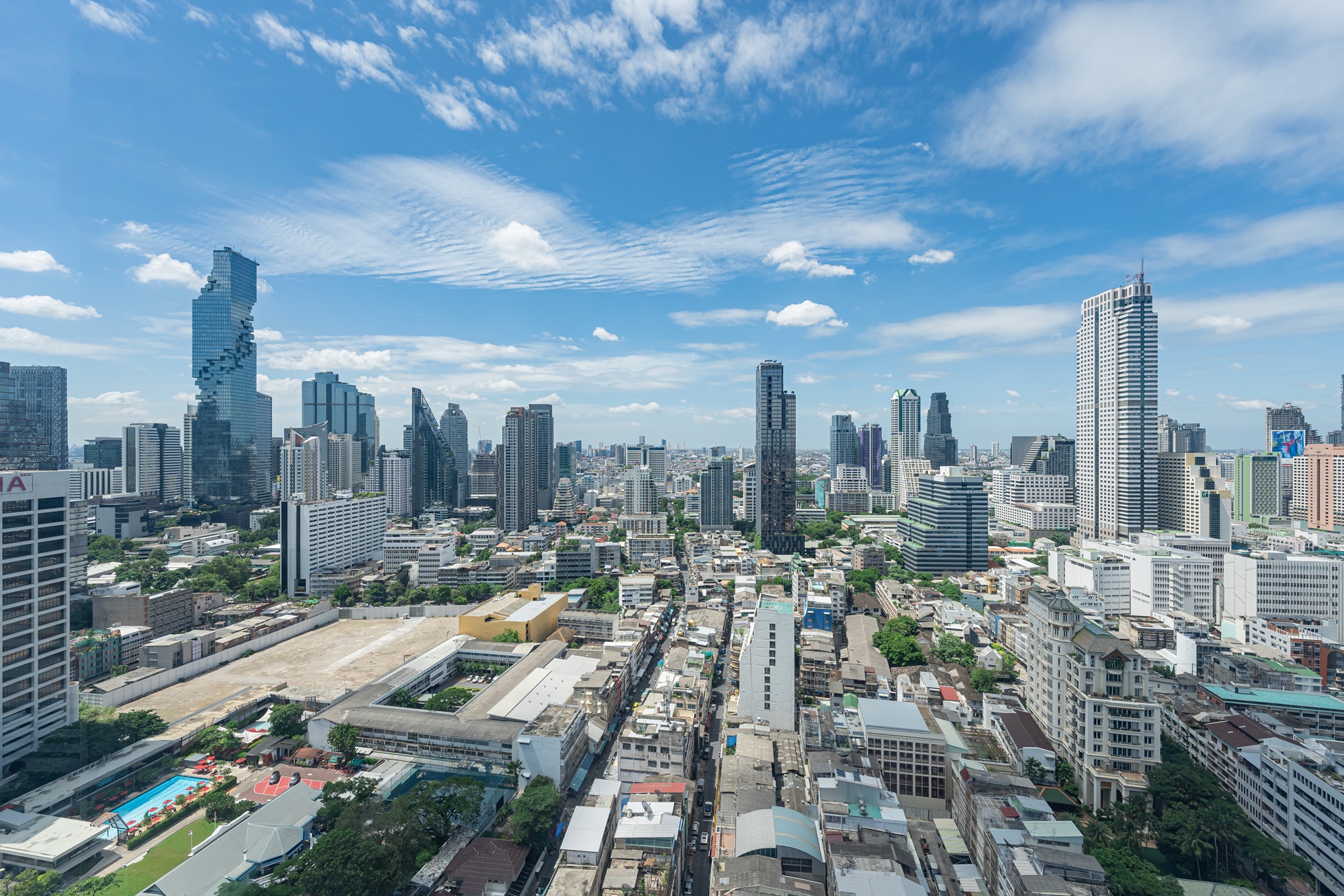 정면의 높은 건물인 주얼리 트레이드 센터 타일랜드 건물과 루프탑이 유명한 오른쪽의 르부아 앳 스테이트 타워