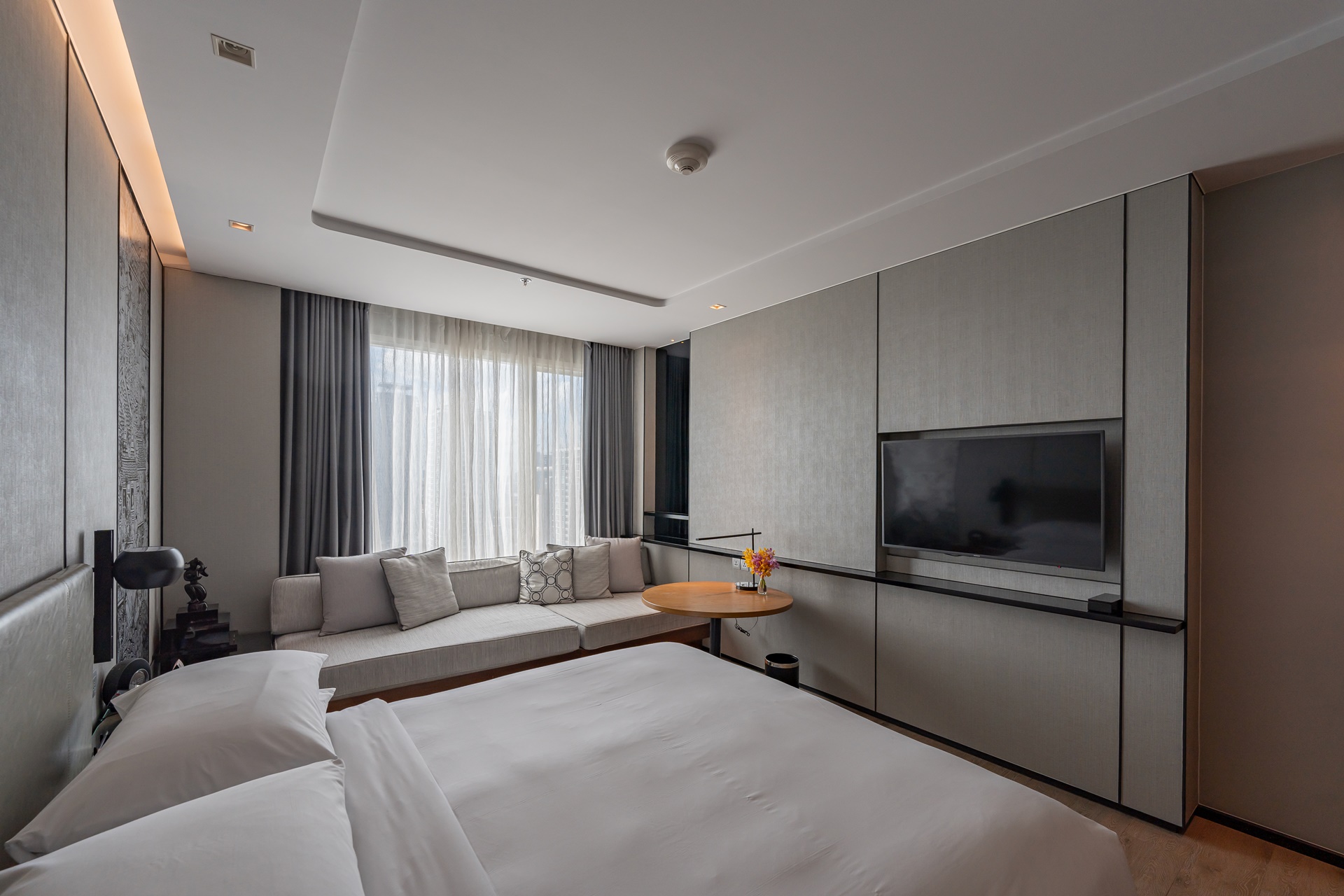 폭신한 침대와 넉넉한 공간의 창가의 소파