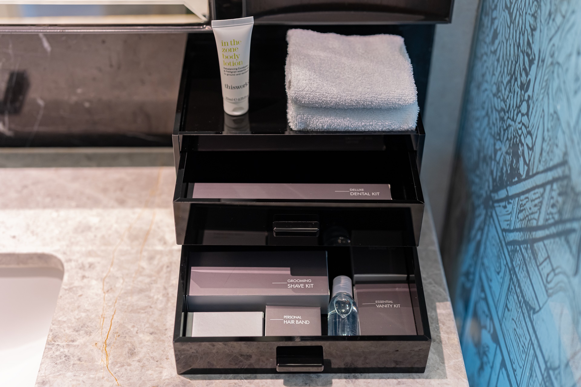 비누와 샴푸, 컨디셔너, 샤워젤은 메이어트에서 사용하는 디스웍스 제품