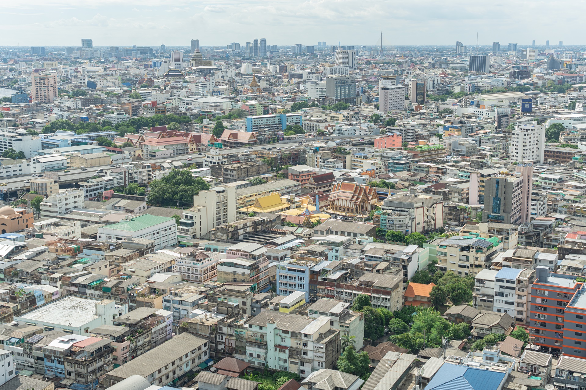 방콕의 멋진 전망과 고층 빌딩, 왼쪽에 주얼리 트레이드 센터 타일랜드