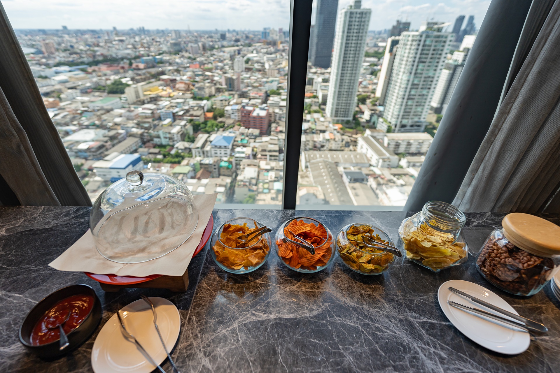 라운지에서 전망은 룸에서 보다 살짝 높은 전망으로 역시 방콕의 멋진 풍경을 감상할 수 있습니다.