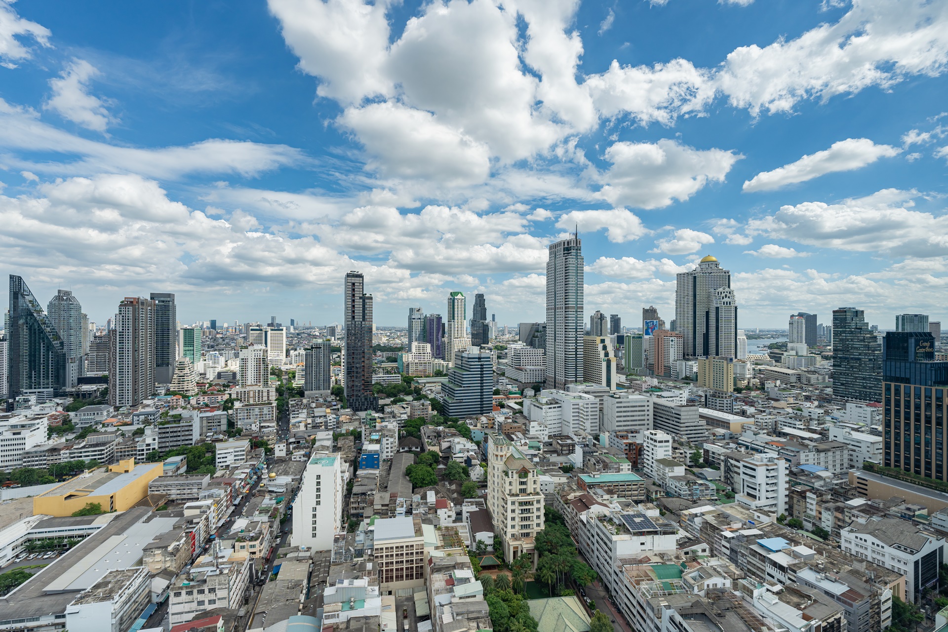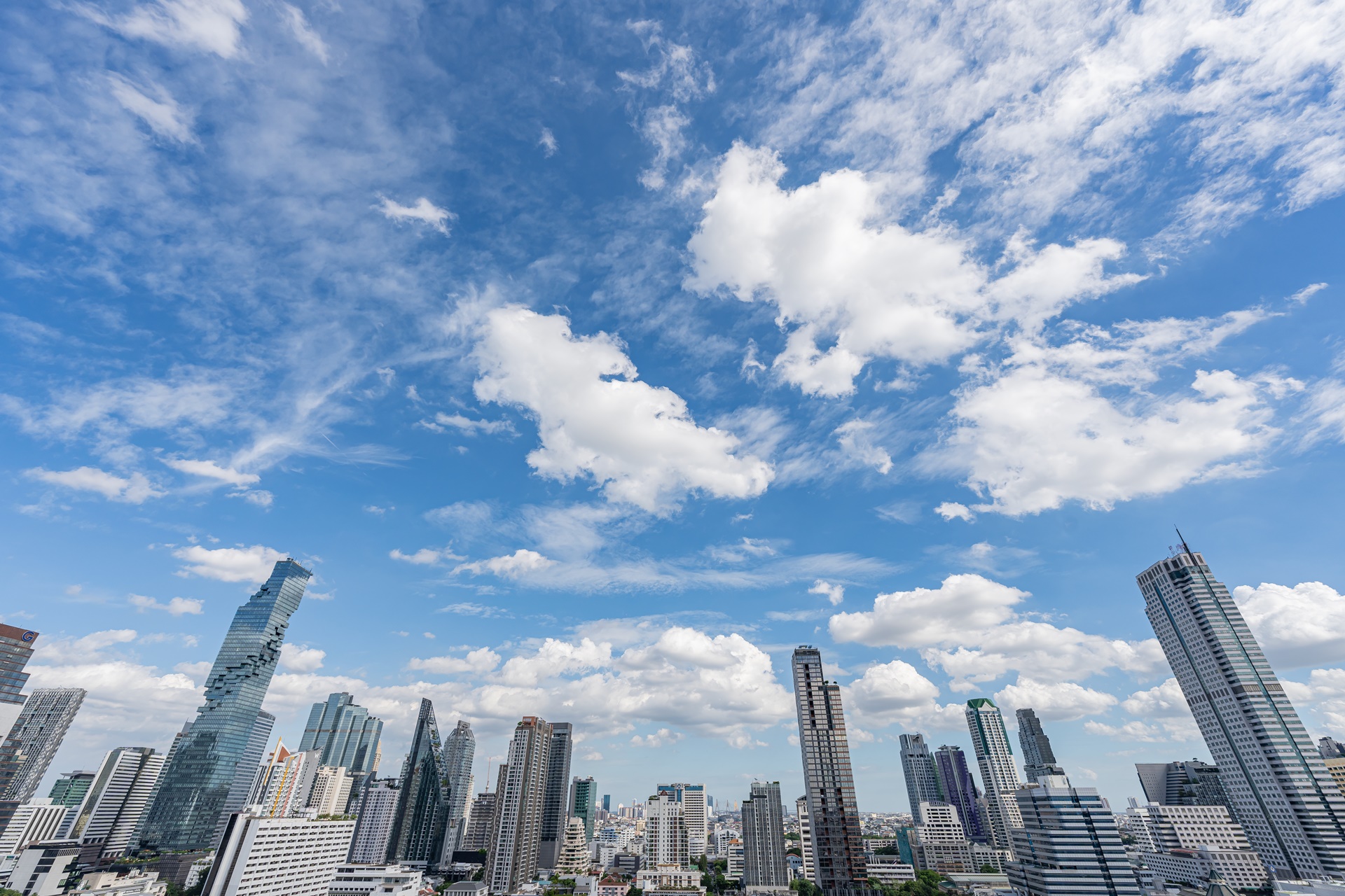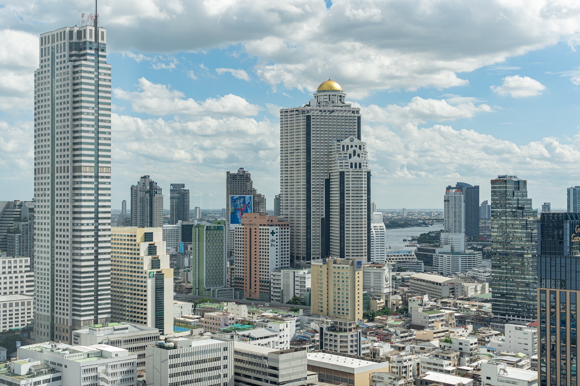 방콕의 멋진 전망과 고층 빌딩, 왼쪽에 주얼리 트레이드 센터 타일랜드
