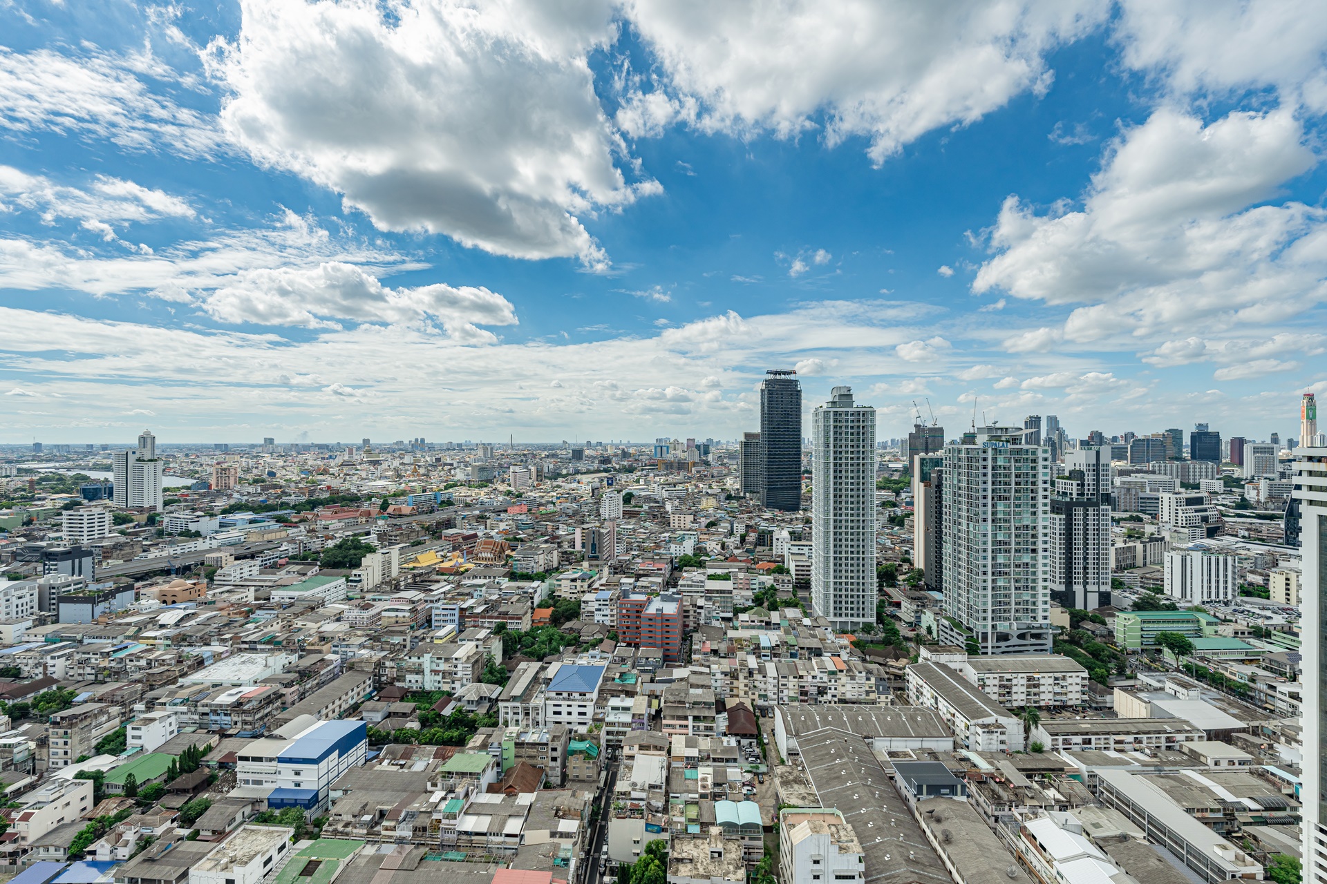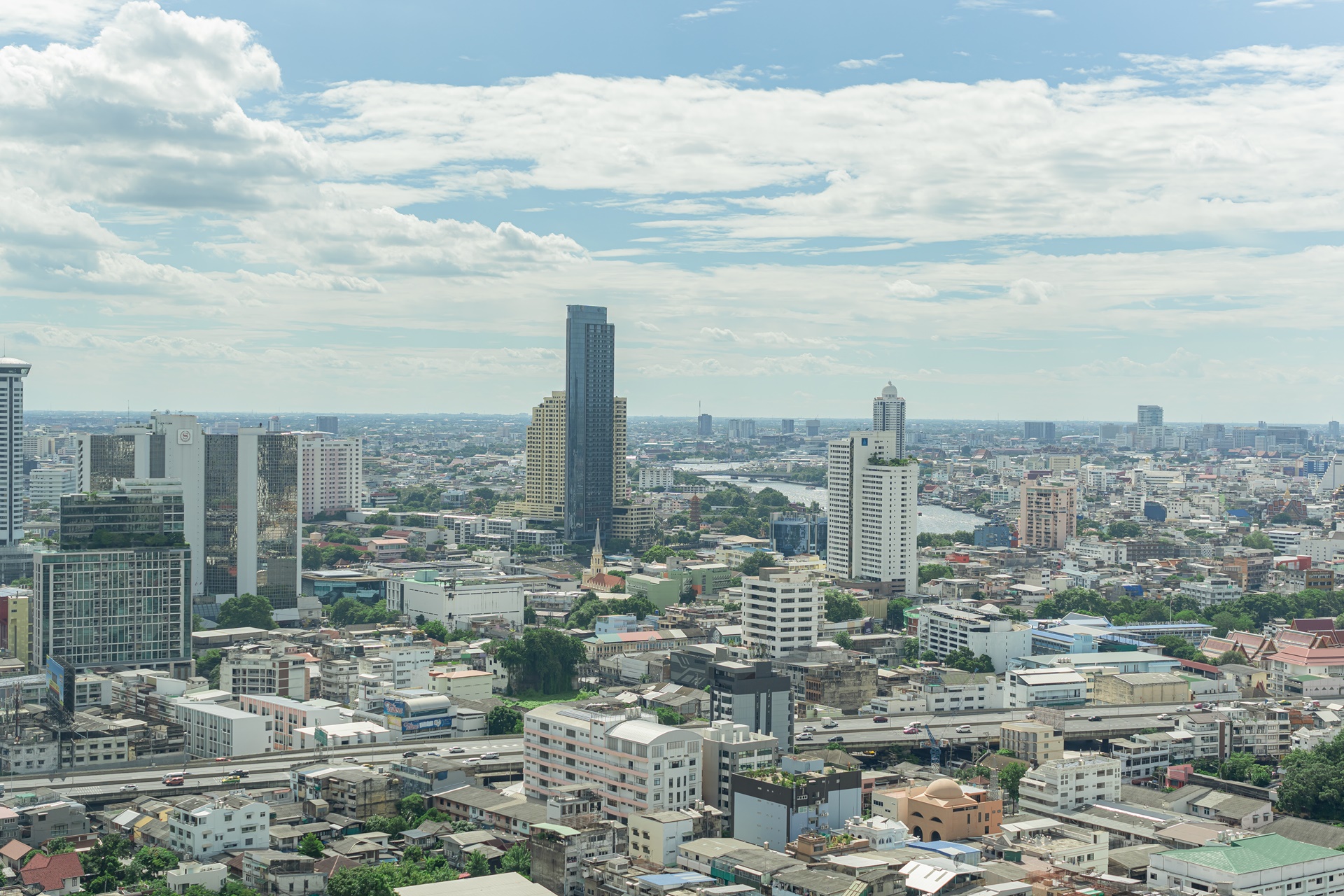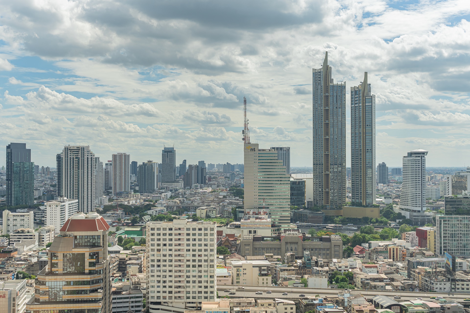 방콕의 멋진 전망과 고층 빌딩, 왼쪽에 주얼리 트레이드 센터 타일랜드