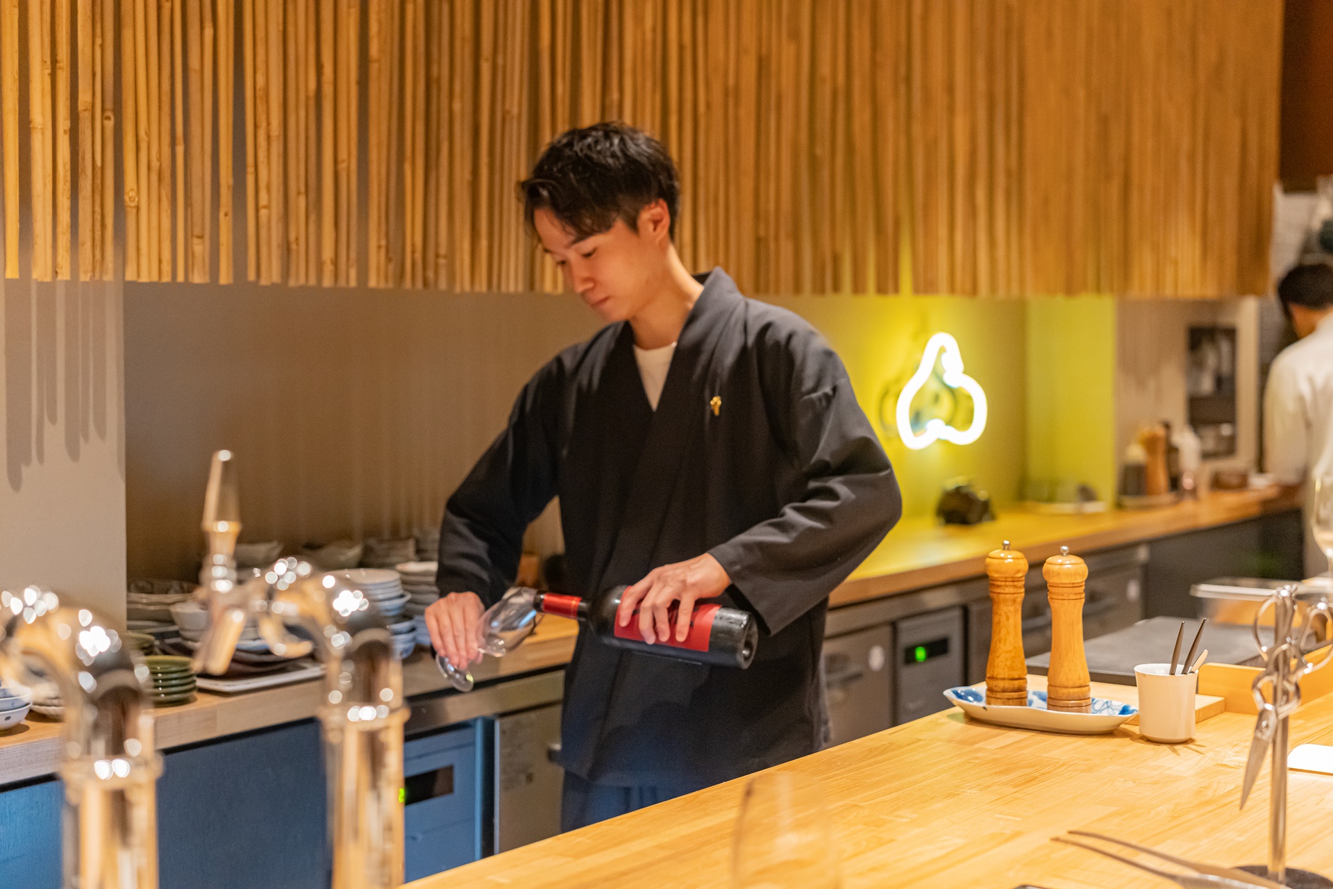깔끔한 인테리어 다양한 술이 진열 되어 있습니다. 니쿠토이에바 마쓰다 나라 본점은 미슐랭 2022, 2023에 소개 되어 있는 가게로 신사이바시 지점은 오사카 지점입니다.