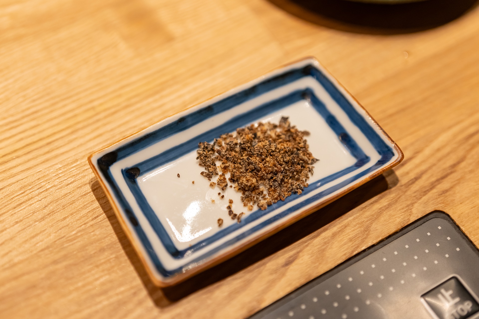 두번째 에피타이저인 김치 3종 모듬, 연근 김치, 갓 김치, 무말랭이 가 나왔으며 김치의 퀄리티가 좋아 물어보니 신사이바시의 한국 김치가게에서 구해 온다고 합니다. 앞으로 나올 고기와 함께 먹으면 느끼함을 잡아줘서 아주 좋았습니다.
