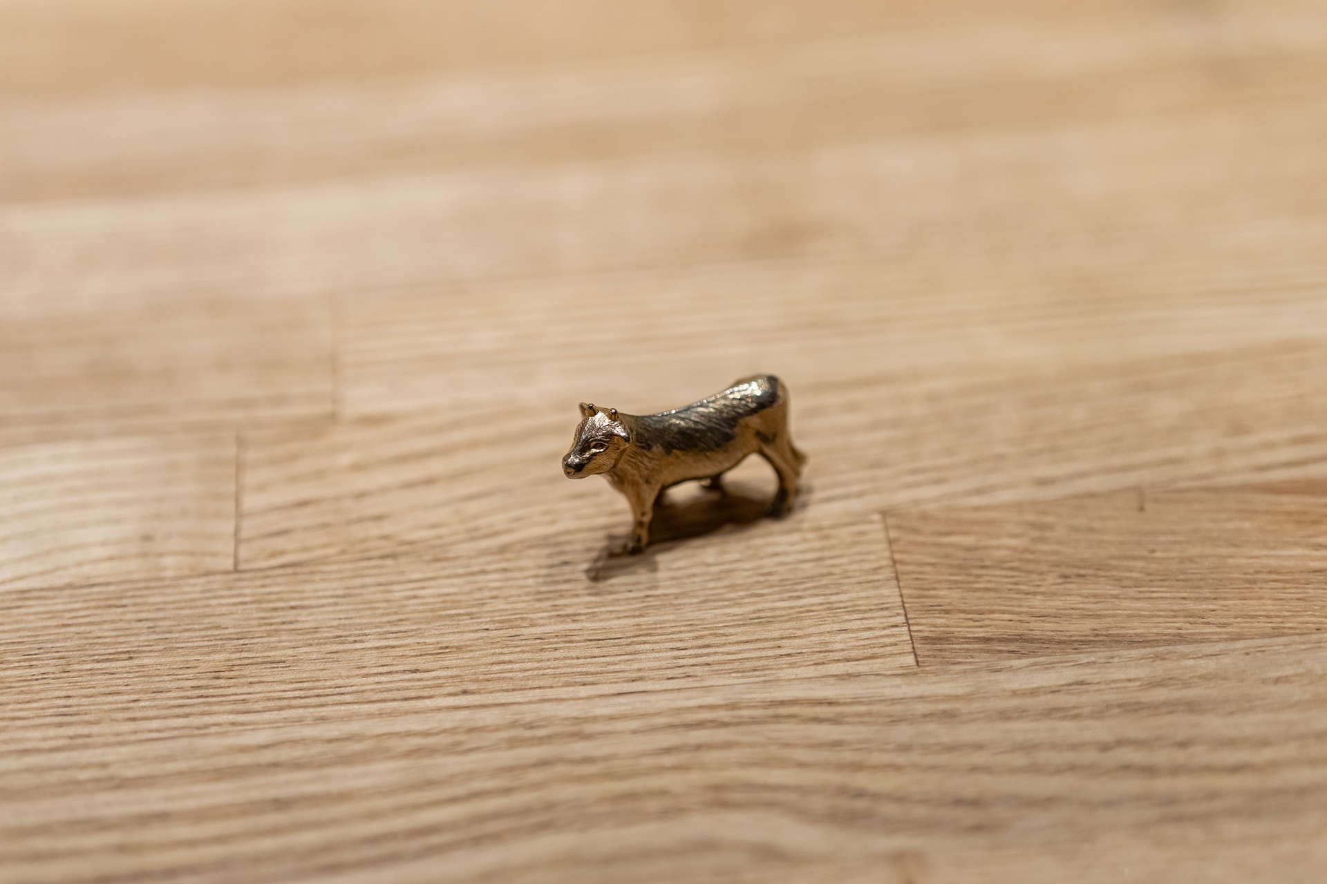 요리를 기다리며 젓가락 받침인 황금 송아지가 귀여워서 사진을 찍으며 놀았습니다.