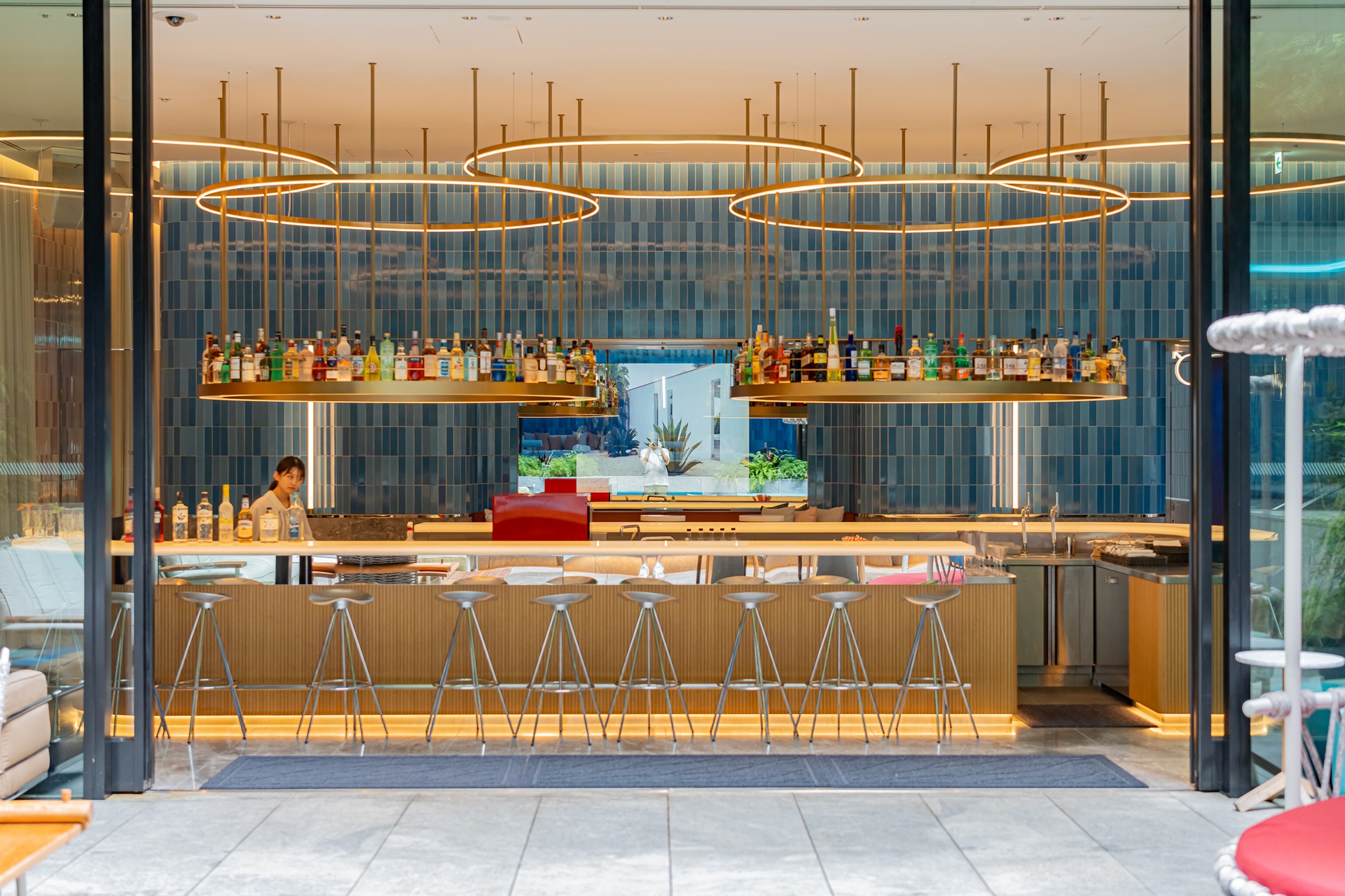 바와 수영장이 붙어 있으며 수영복을 입고 바 공간에서도 시간을 보낼 수 있습니다.