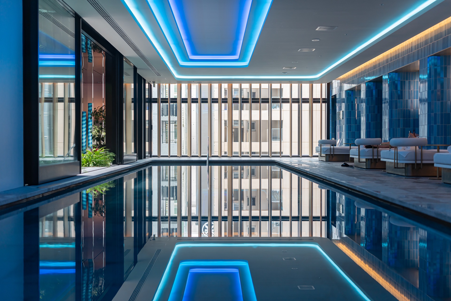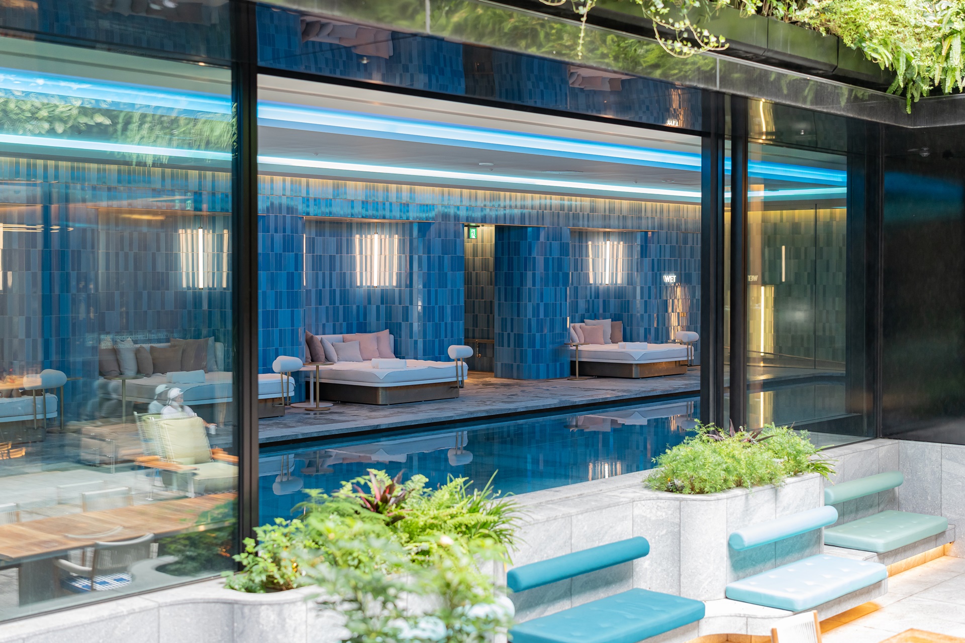 W 오사카 호텔의 부대시설로 스파, 수영장, 휘트니스 등이 있는데 한 층에 모여 있습니다.