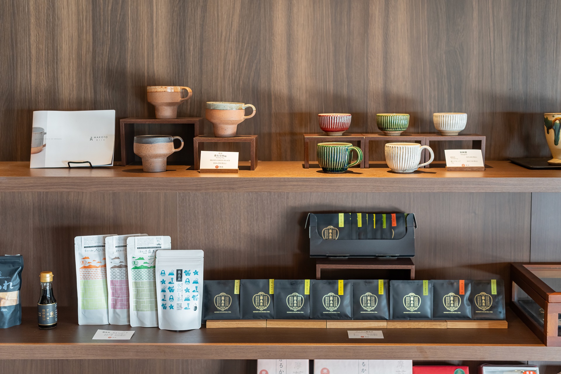 로비 옆에는 가고시마와 카이 기리시마의 기념품을 전시하고 있으며 가고시마의 도자기, 유리공예 품(사쓰마 키리코), 일본 생산량 1~2위를 다투는 녹차, 간장, 소주 등을 판매하고 있었습니다.