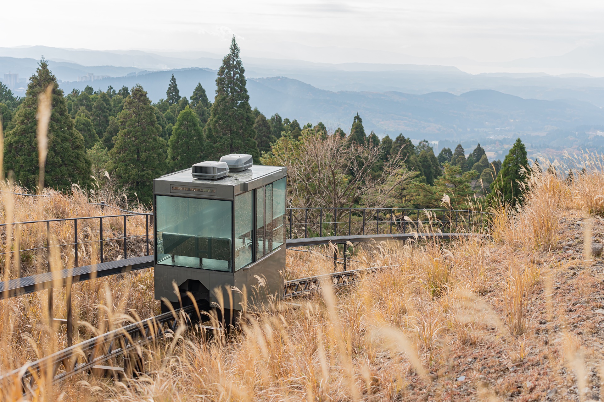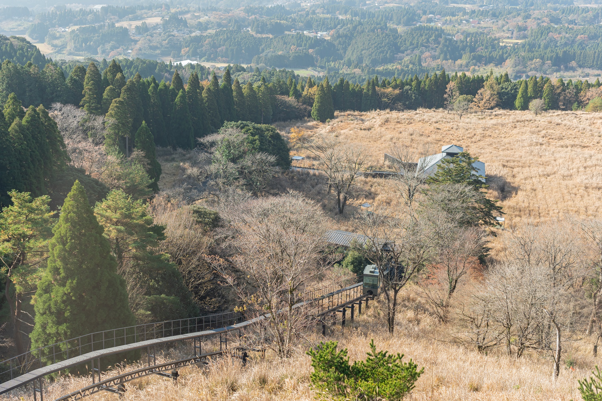 재미있는 슬로프로 온천으로 이동, 기리시마의 풍경을 감상하며 내려가면 2분이 금방 지나갑니다.
