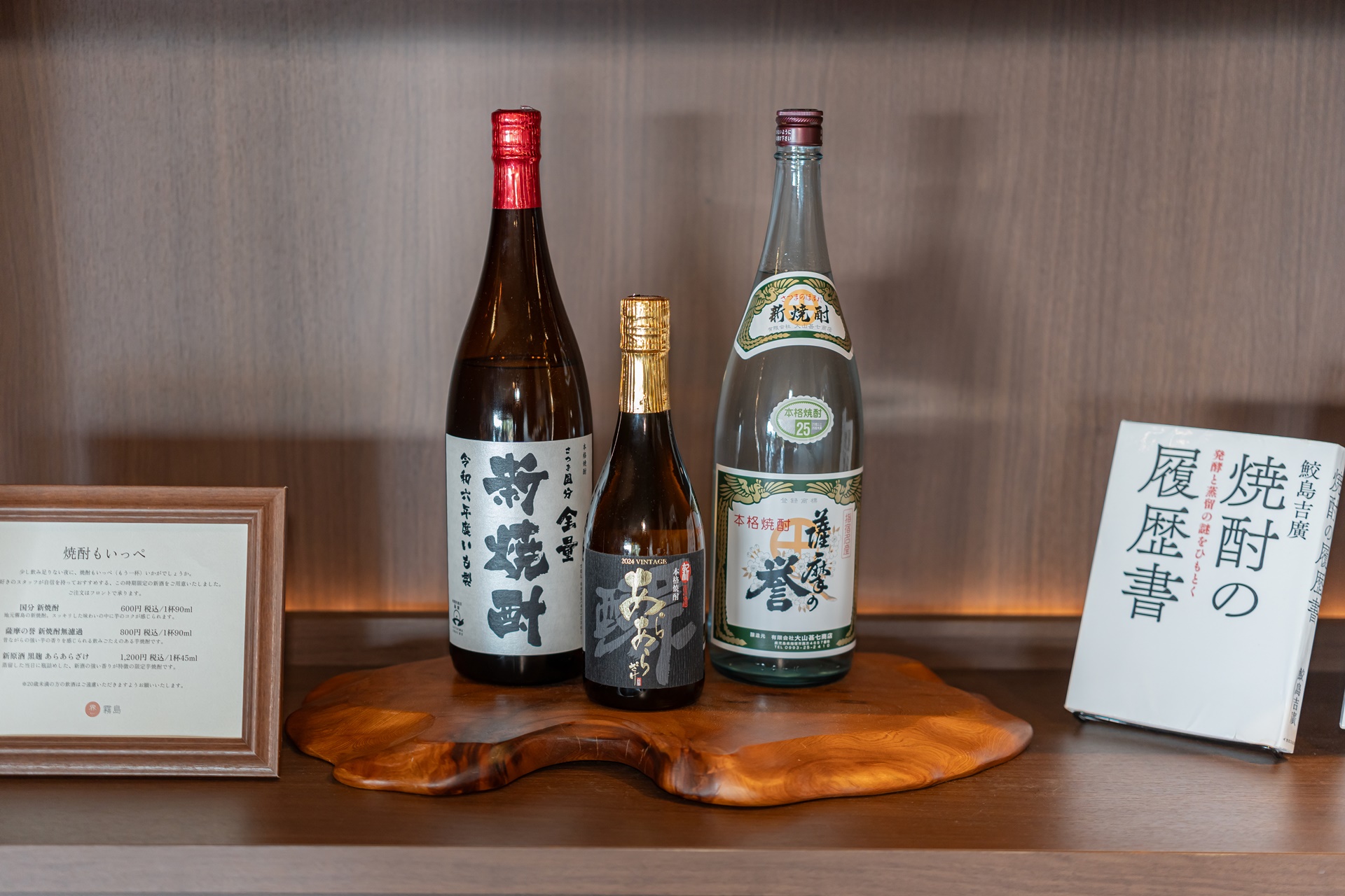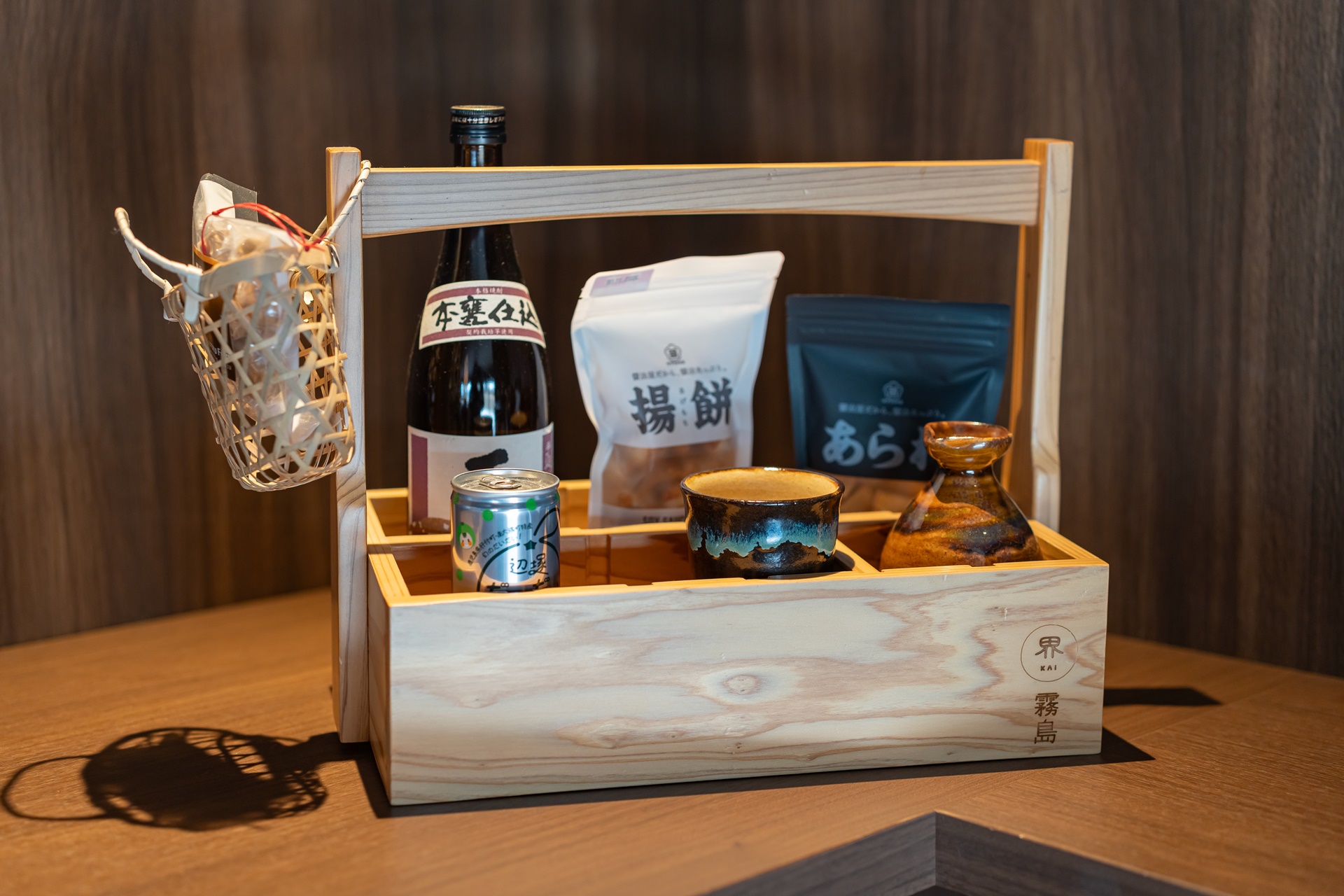 가고시마는 고구마가 많이 재배되는 지역이며 그 고구마로 만든 고구마 소주가 유명하며 일본에서도 소주 하면 규슈 그중에서도 가고시마를 꼽는 분들이 많습니다. 일본의 대부분의 이자카야에서 찾을 수 있는 구로키리시마(黒霧島) 소주가 이곳에서 생산됩니다. (사실 구로키리시마는 기리시마이지만 미야자키 쪽의 기리시마 이긴 합니다.) 카이 기리시마에서는 가고시마에서 생산되는 다양한 소주를 료칸의 저녁식사와 함께 페어링 하면서 즐길 수 있으며 별도로 로비나 룸 서비스로 주문을 하여 마셔볼 수 있습니다.