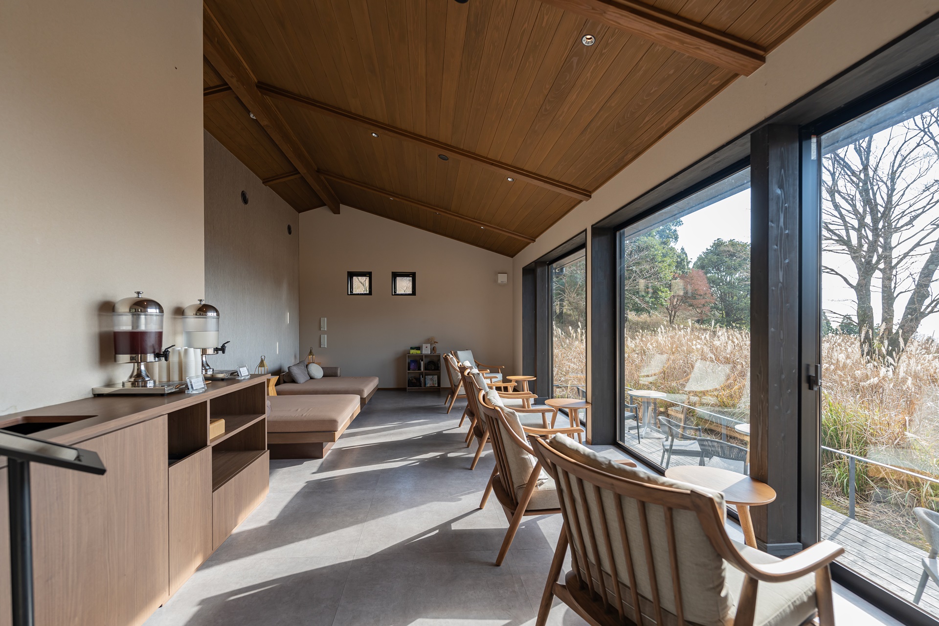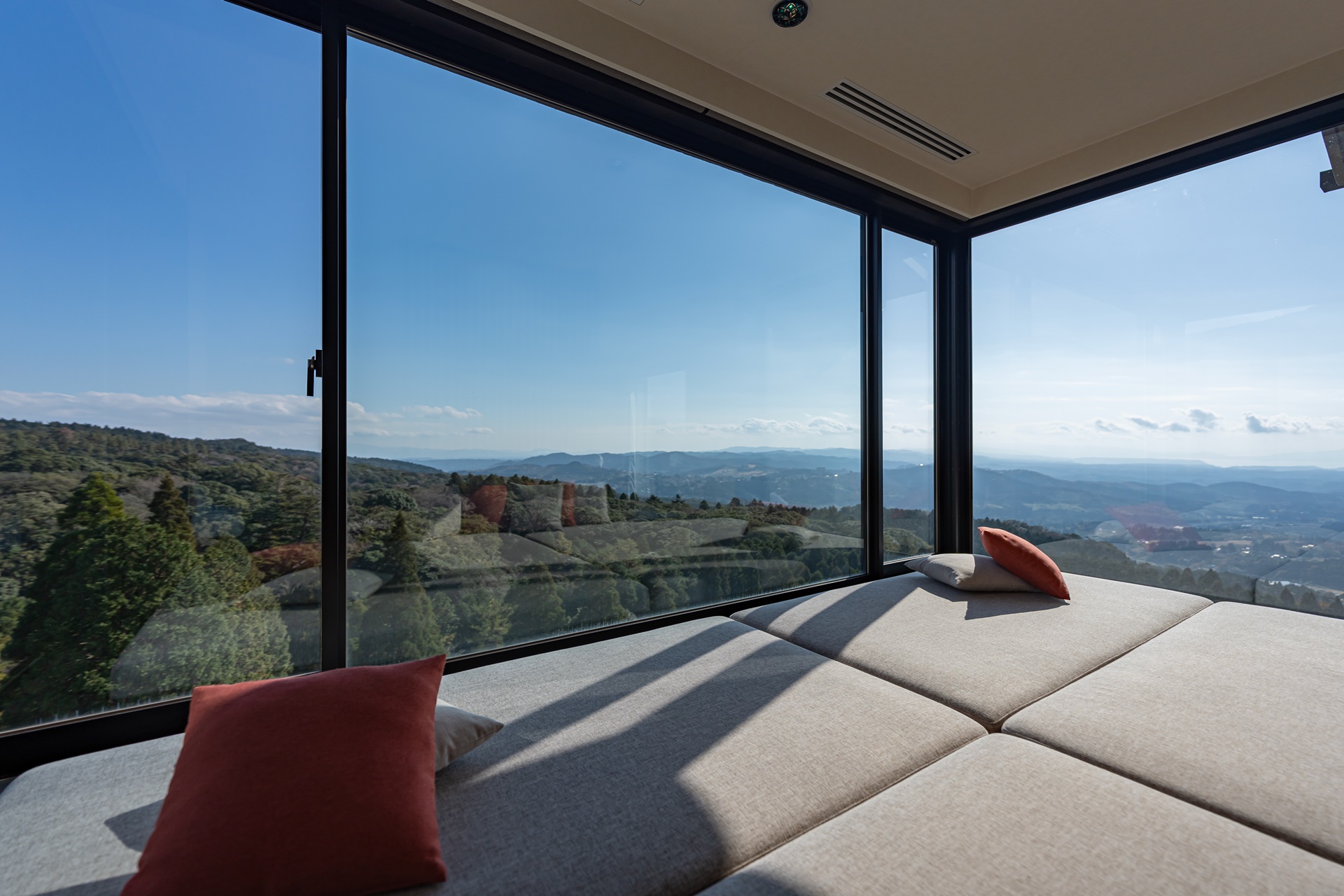 기리시마의 멋진 풍경도 감상하며 누워서 뒹굴 거릴 수 있도록 안쪽에 넓은 공간이 마련되어 있습니다.