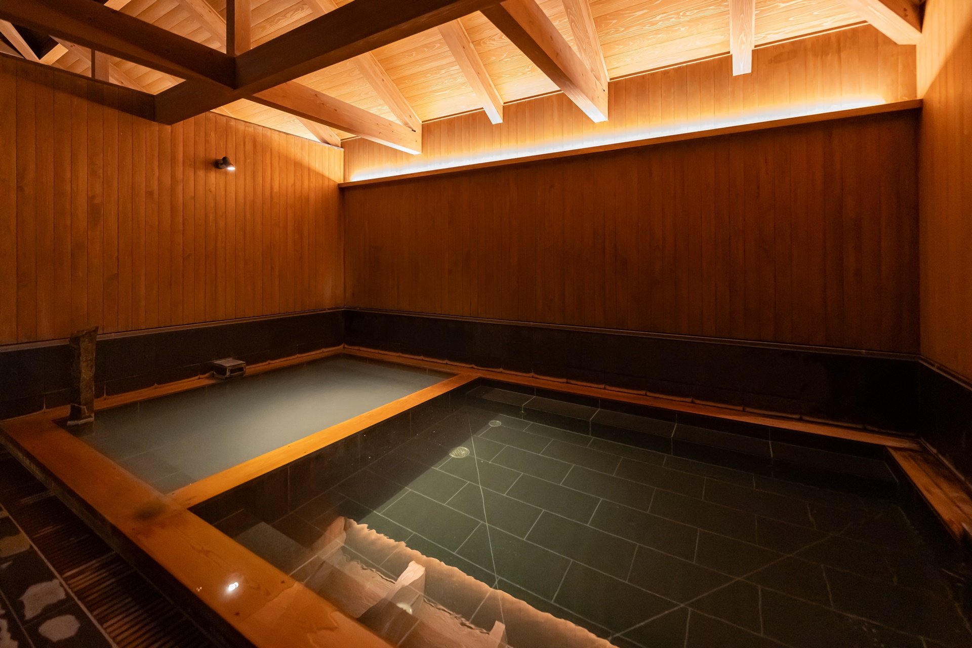 세면대와 온천 욕을 즐길 수 있는 욕조