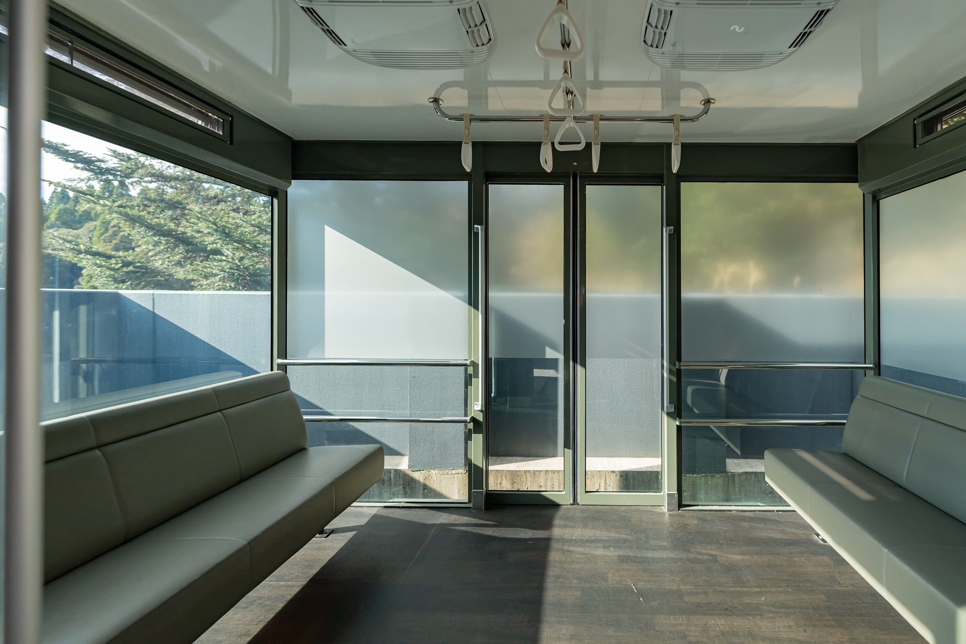 카이 기리시마의 온천 대욕장은 독특하게 건물의 언덕 아래 위치해 있습니다. 이동을 위해서는 건물의 1층에서 슬로프 카를 타야하며 편도로 2분 정도가 소요 됩니다.