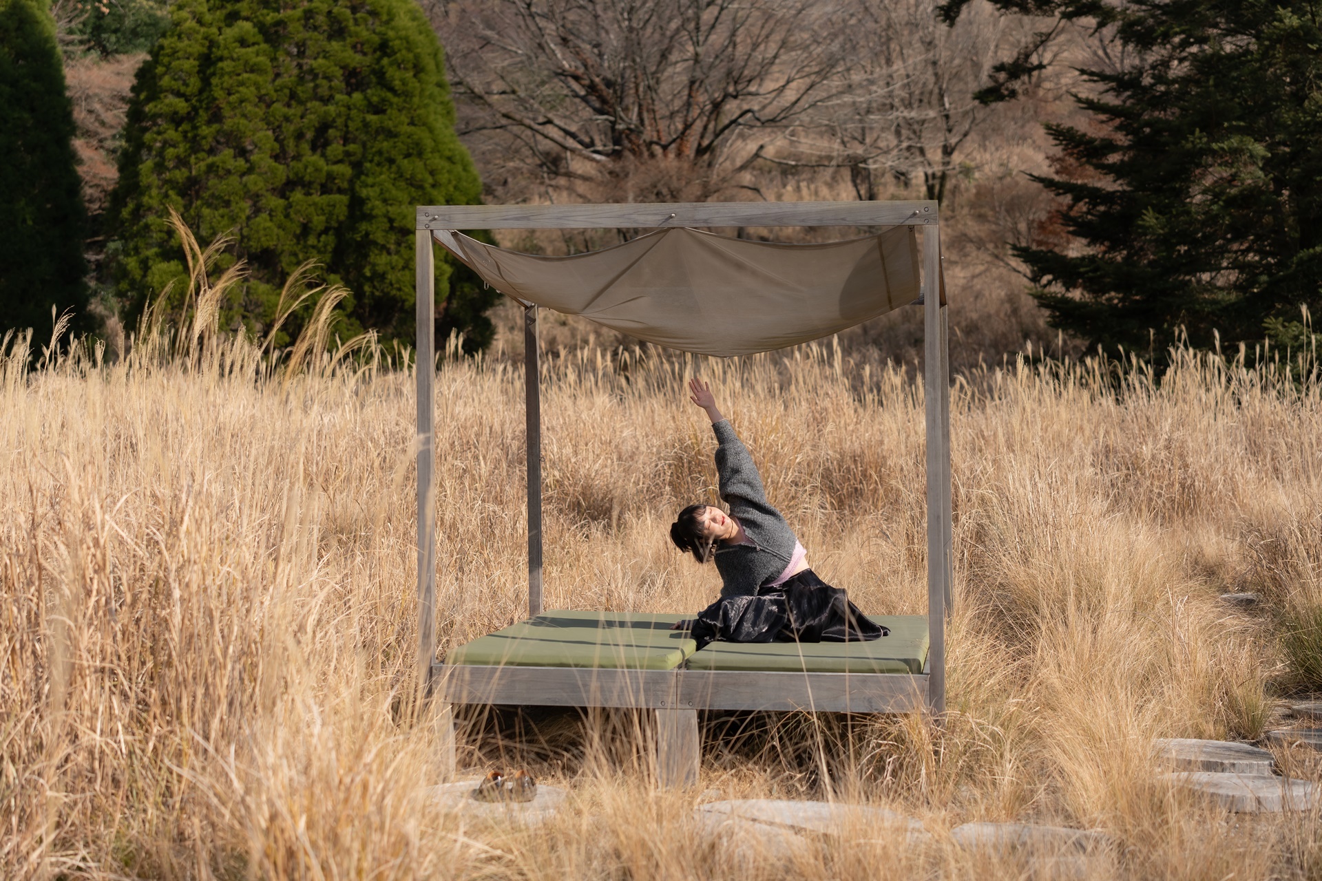 억새 들판을 걸으며, 휴식 공간에서 스트레칭, 요가를 하기도 하며 시간을 보내도 좋습니다.