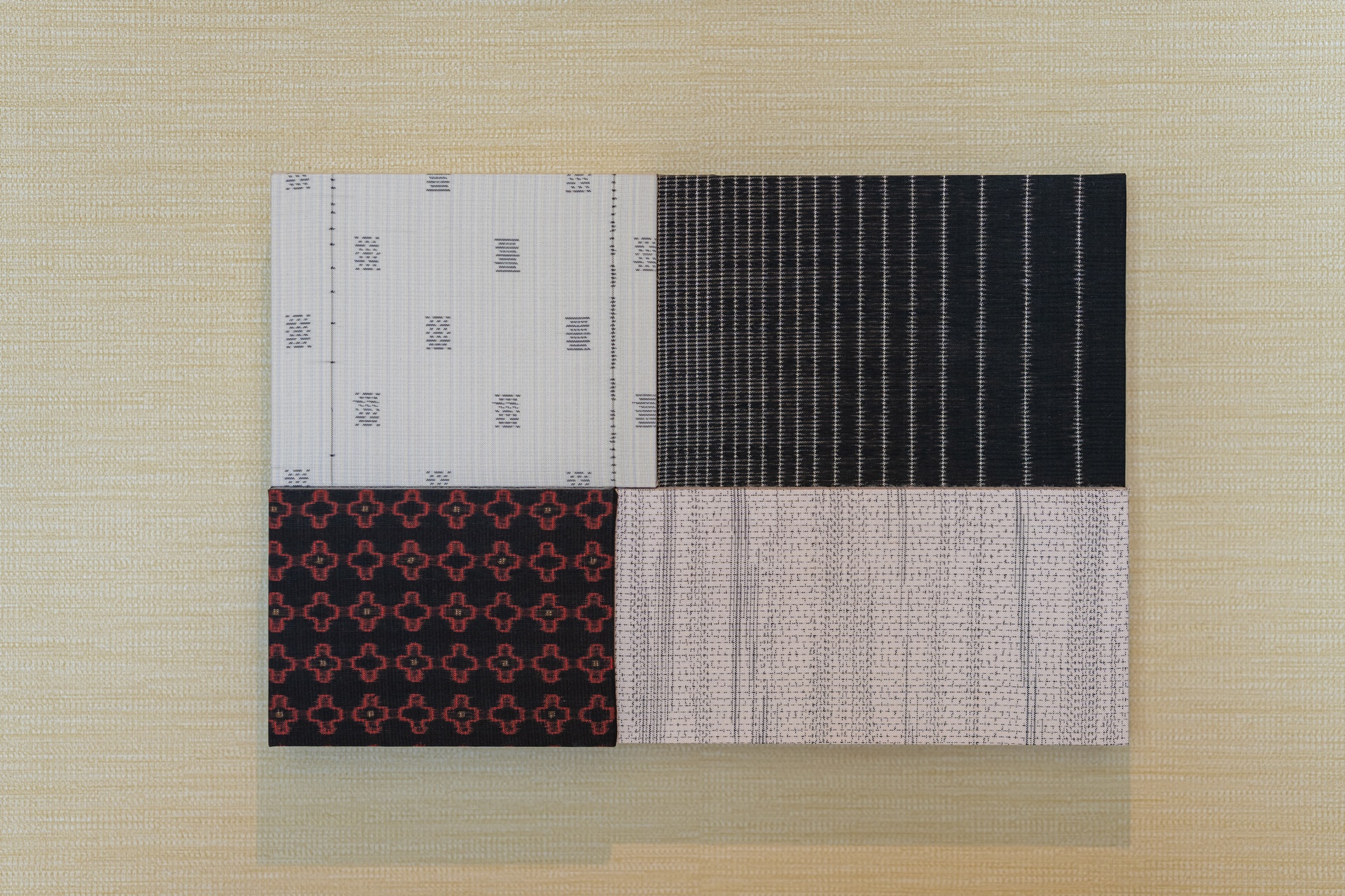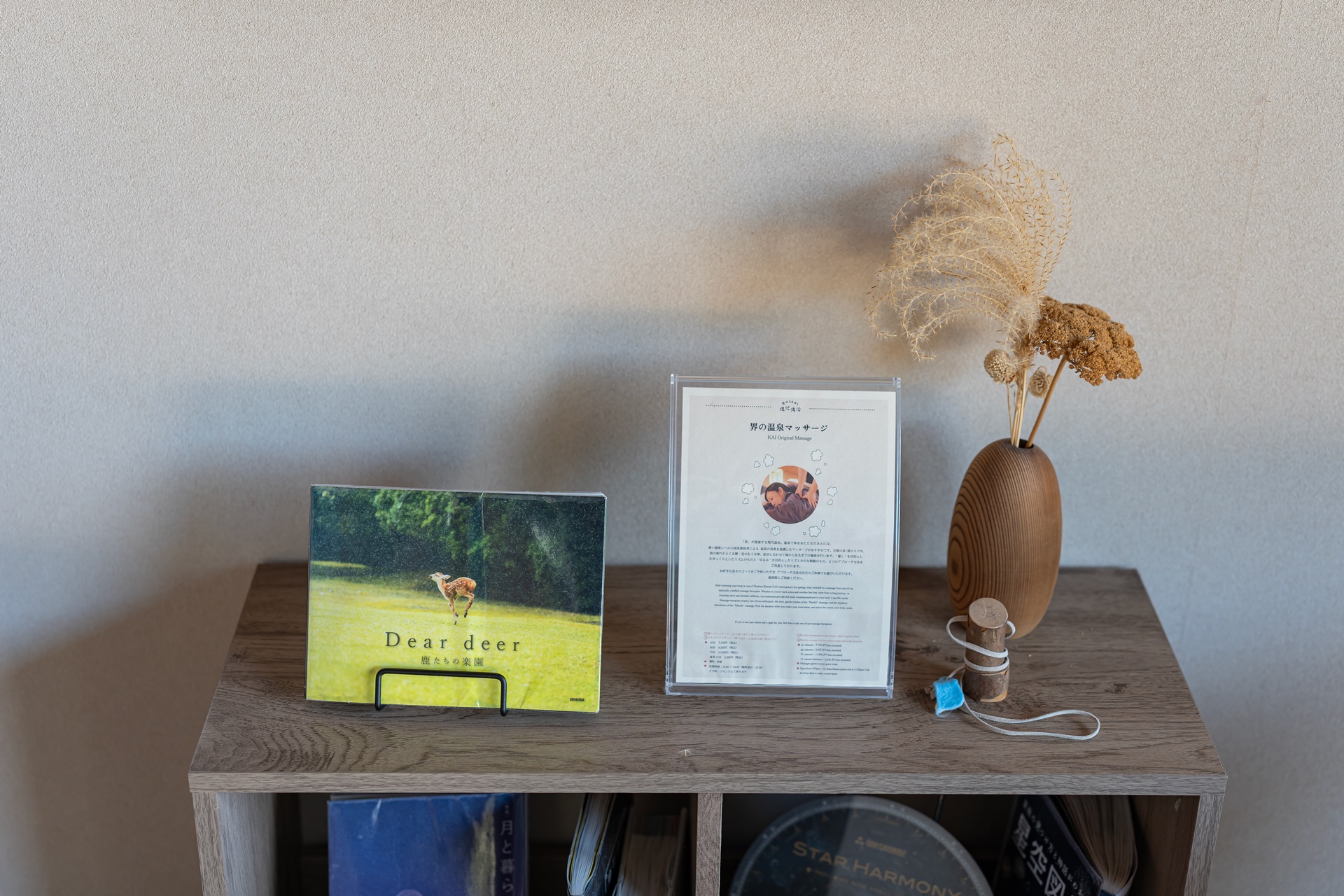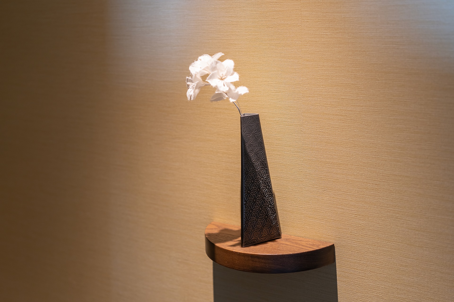 꽃 병과 가고시마의 직물 공예 품이 반겨줍니다.