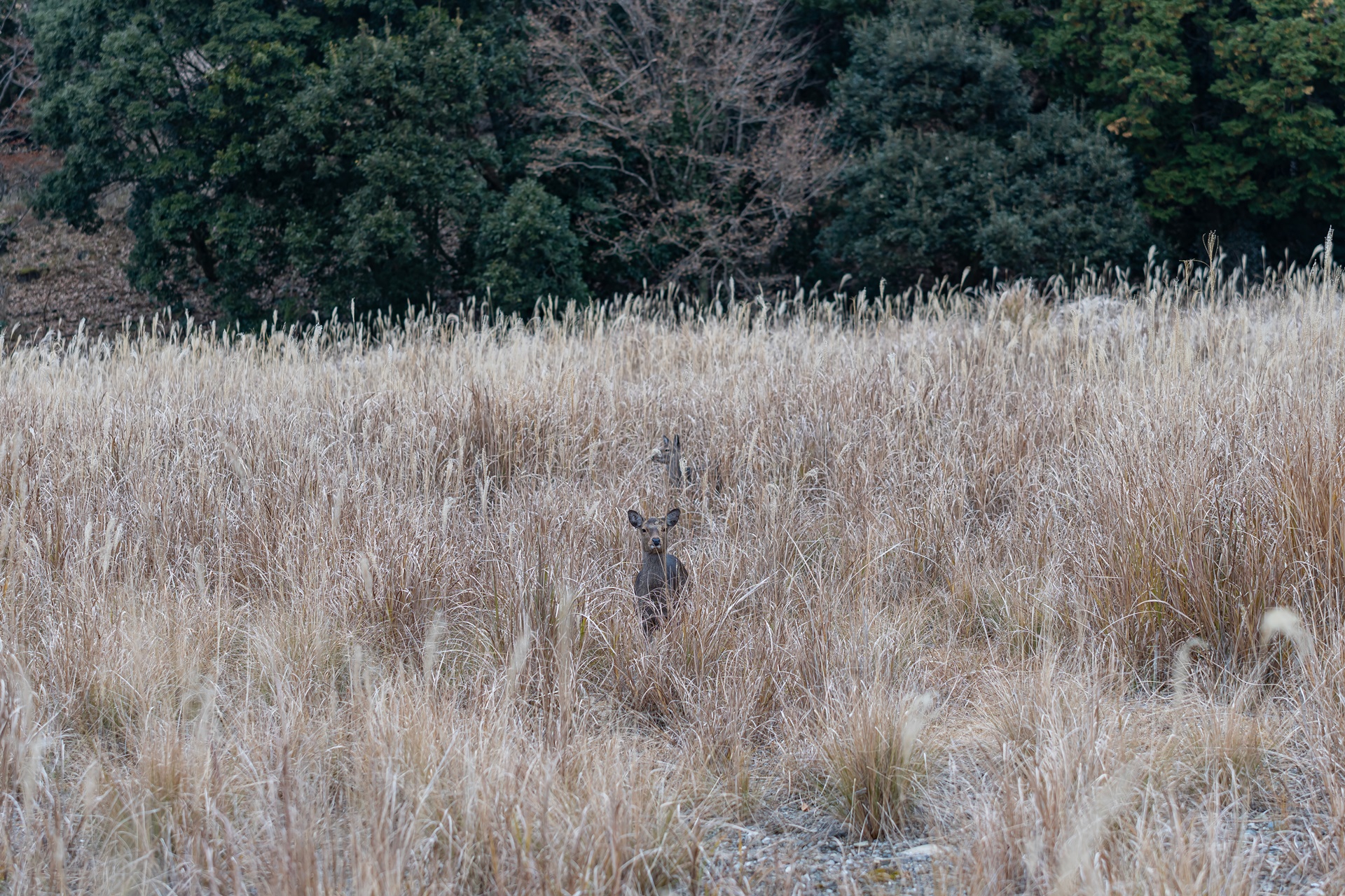 온천을 하다보면 가끔 억새밭에서 사슴들을 관찰할 수도 있습니다.