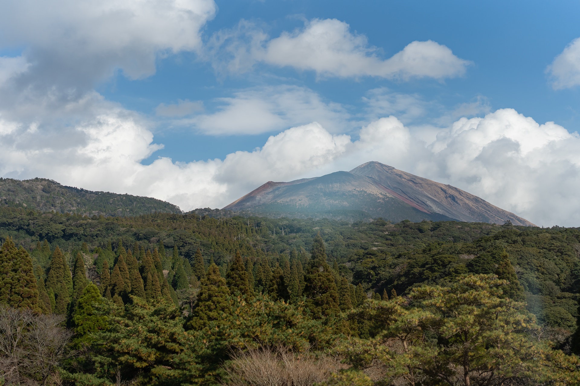 한쪽으로는 다카치호미네 산이 보입니다.