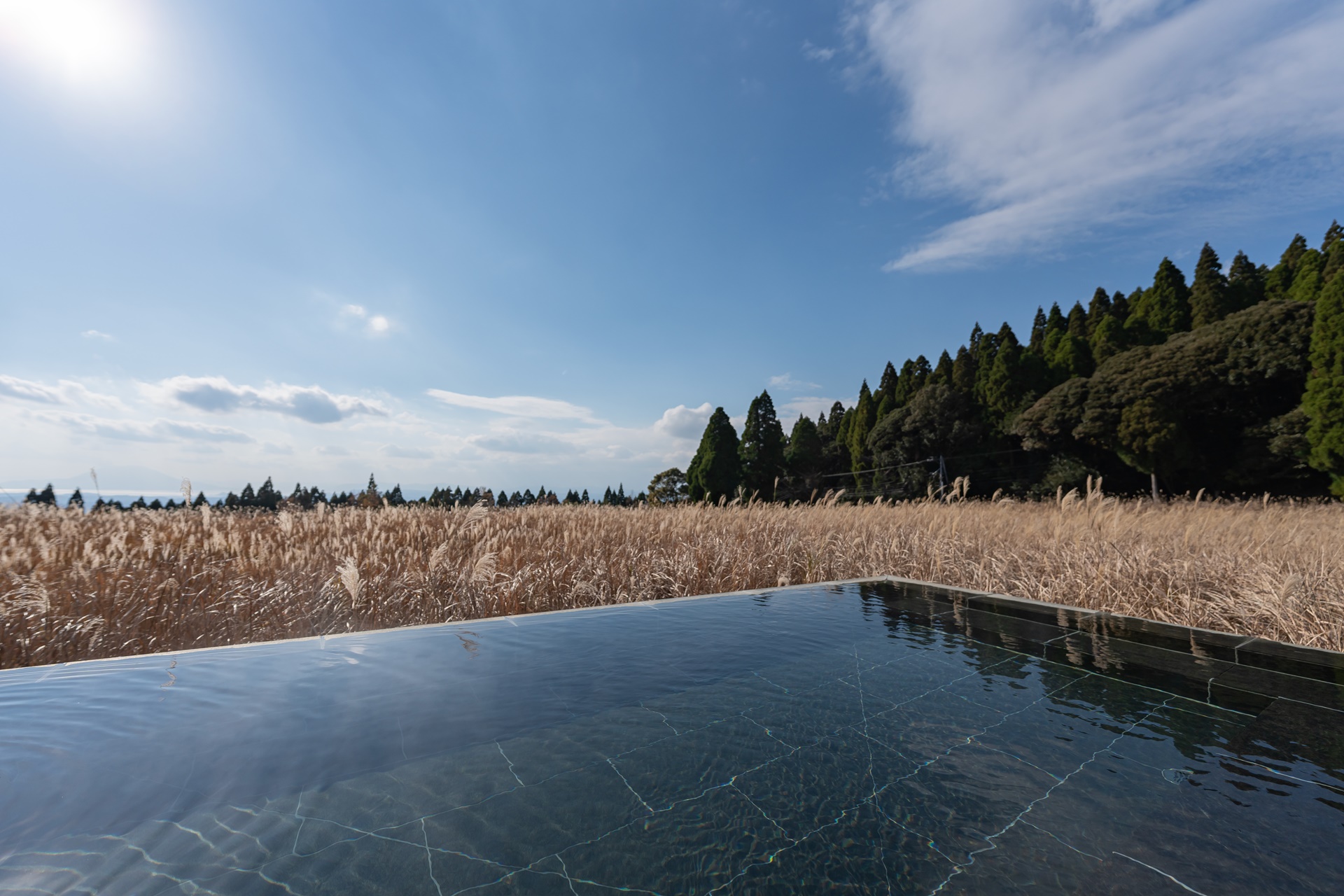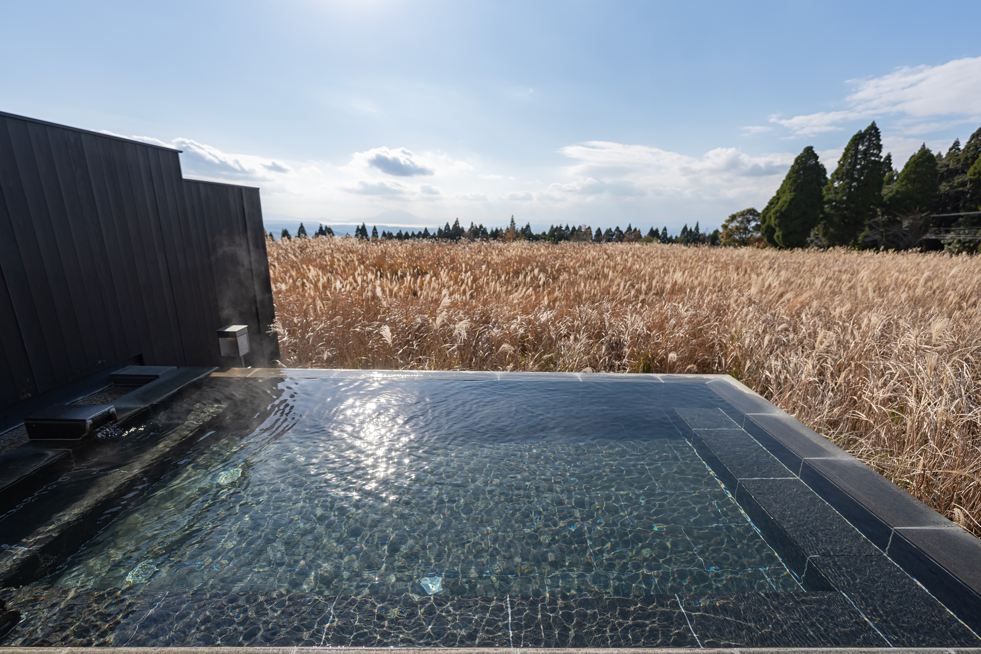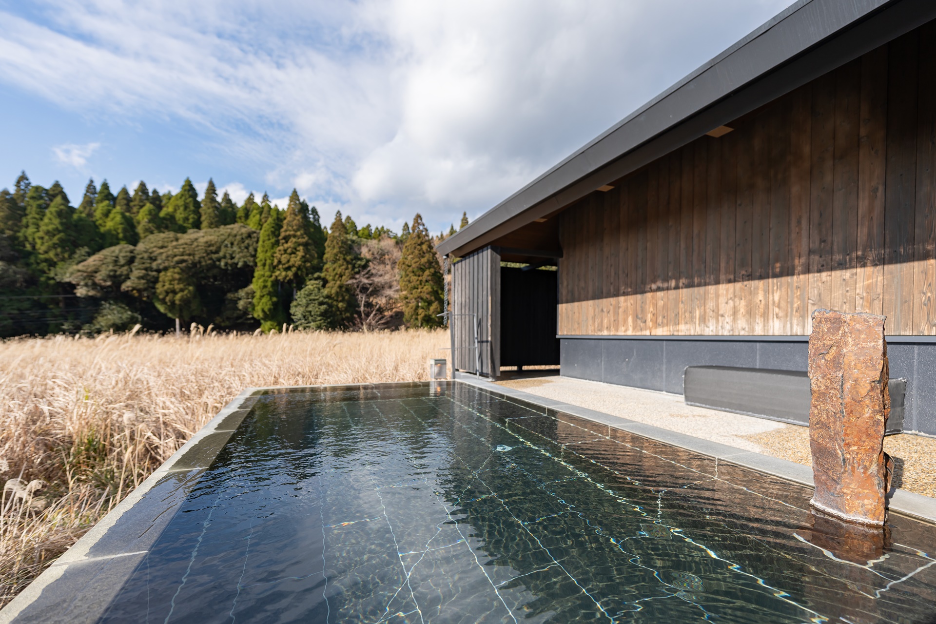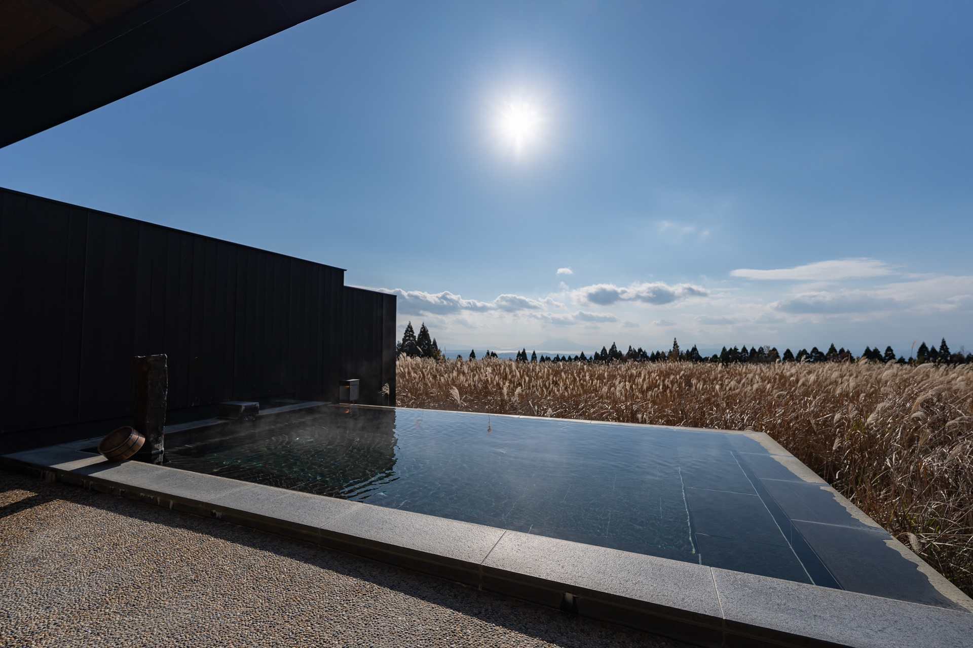 밖으로 나오면 노천 온천이 있으며 기리시마의 멋진 풍경, 참억새 들판을 바라보며 대자연 속의 온천을 즐길 수 있습니다.