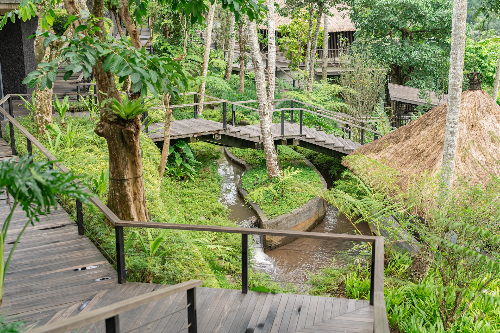 발리에서는 주민들이 물을 공유하는 수박 이라는 수문 문화가 있습니다. 9세기부터 1,000년 이상의 기간 동안 공동체의 협력으로 농사를 지어 왔으며 호시노야 발리는 발리의 전통 관개 수로 시설인 수박을 연상하게 하는 디자인으로 설계되었습니다.