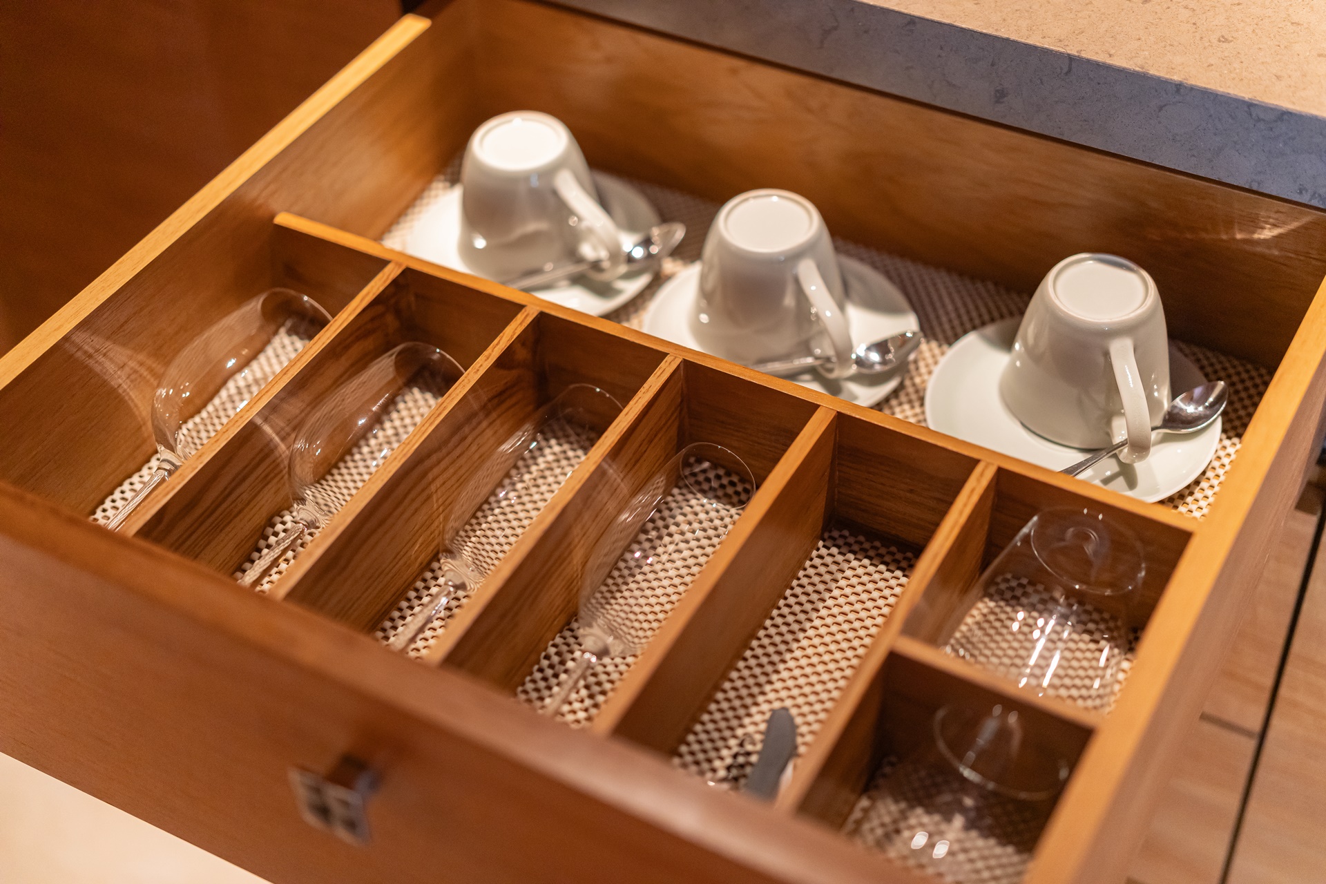 수납장을 열어보면 컵, 유리잔, 유료인 과자, 모기향, 벌래퇴치 스프레이, 손전등 이 있었습니다.