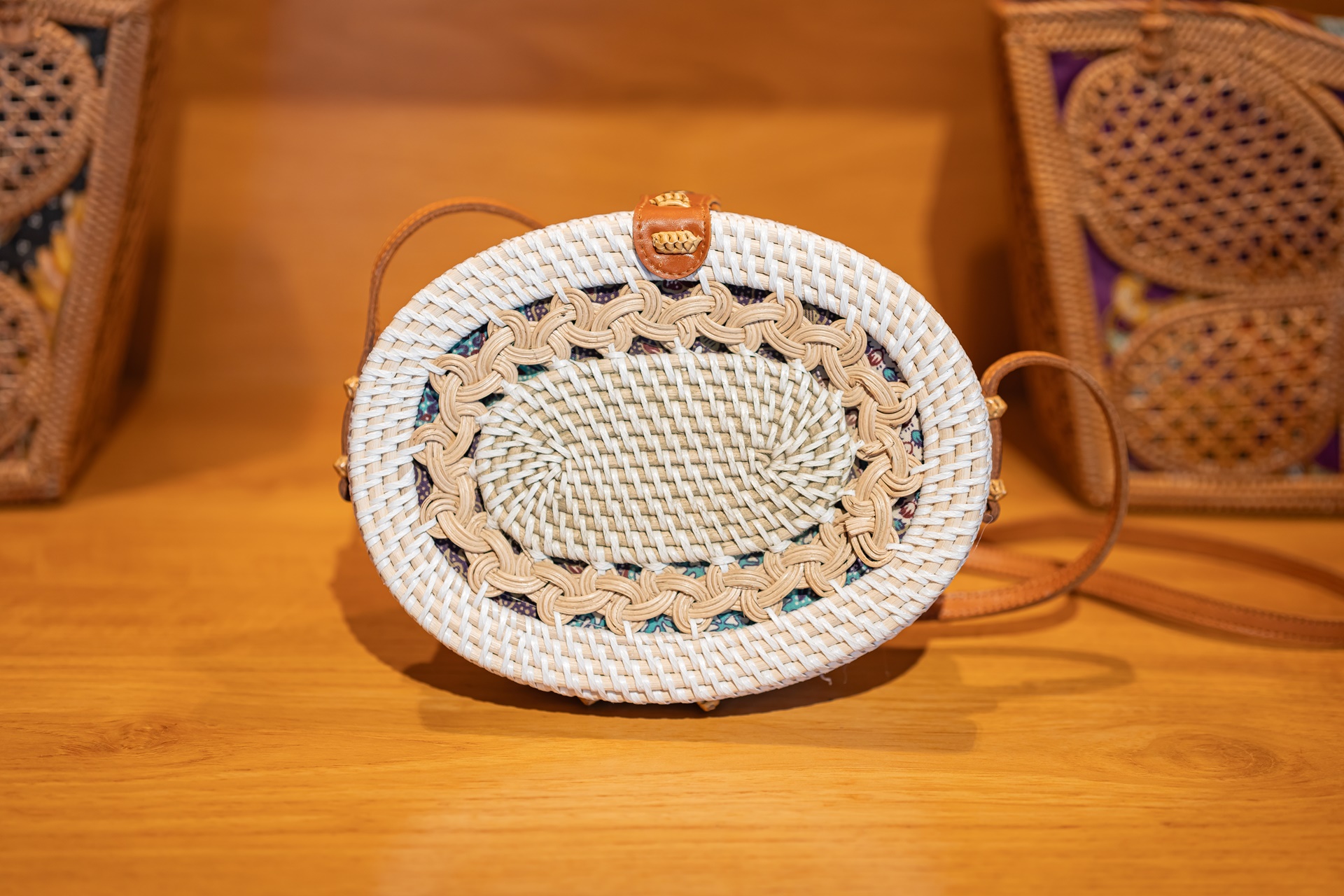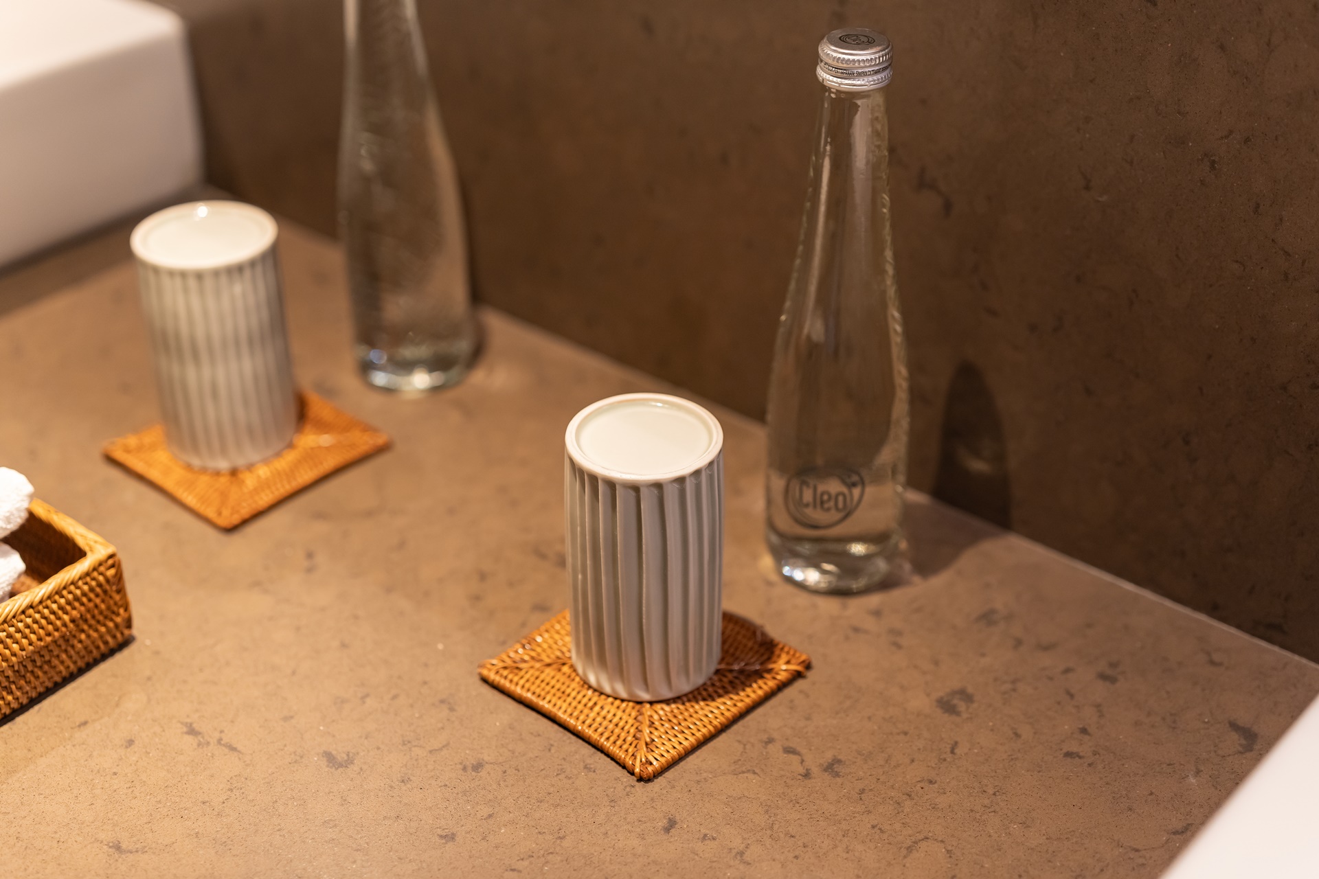 세면대 뒷편에는 옷장과 짐 보관 장소, 위에 놓여 있는 라탄 가방, 라탄 가방도 기념으로 가져가도 된다고 합니다.