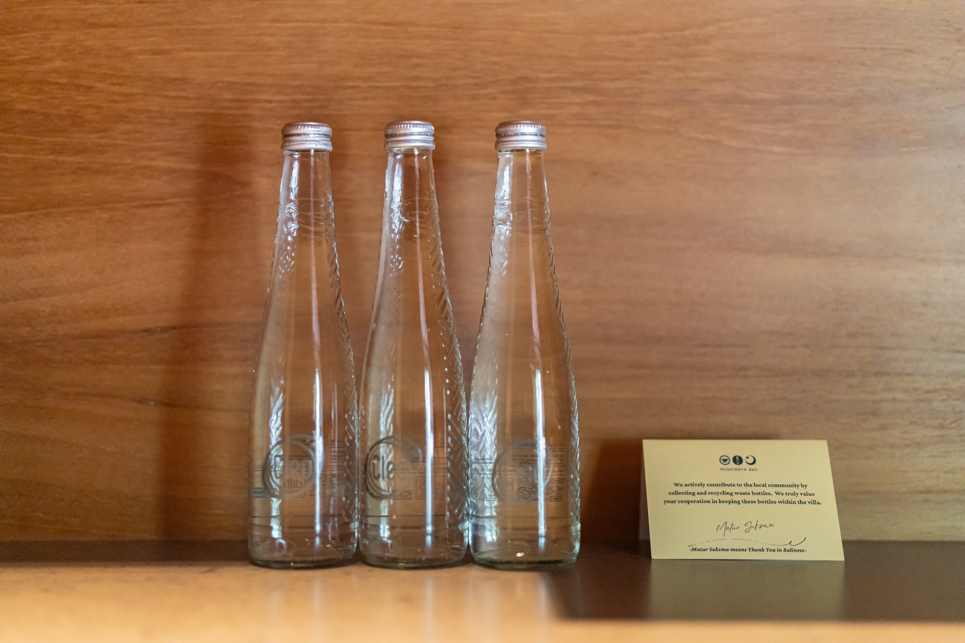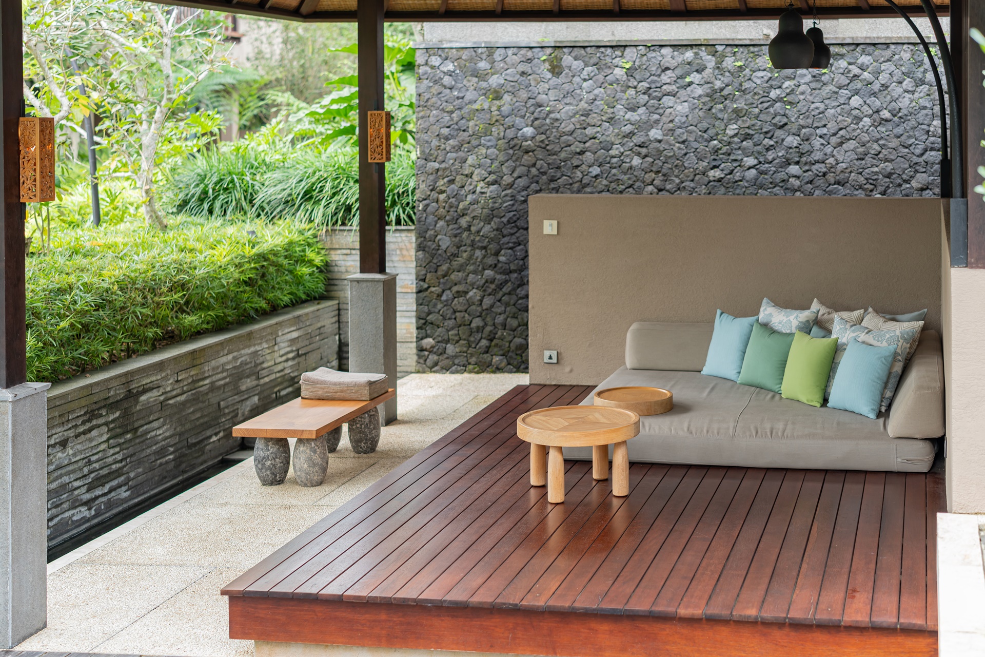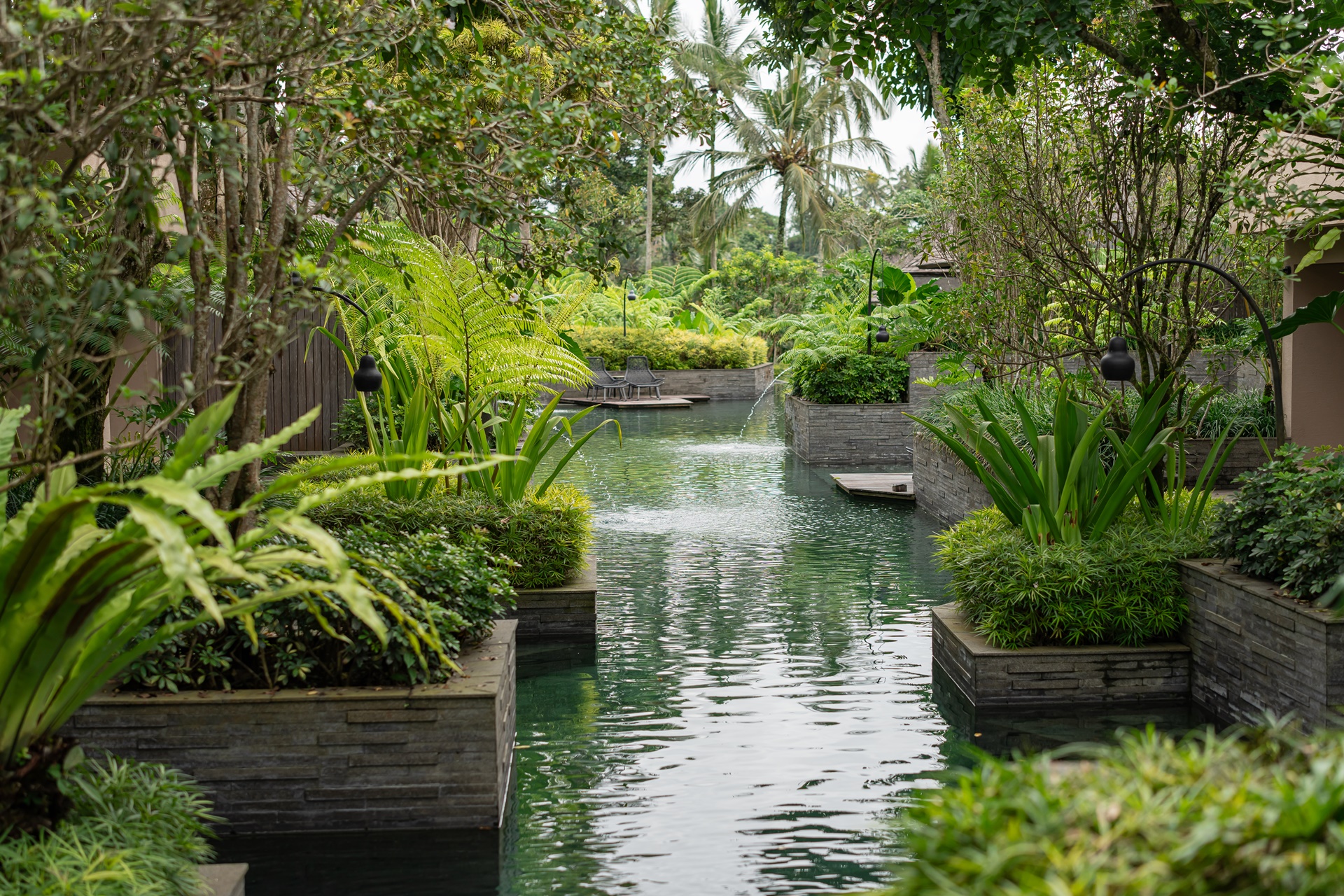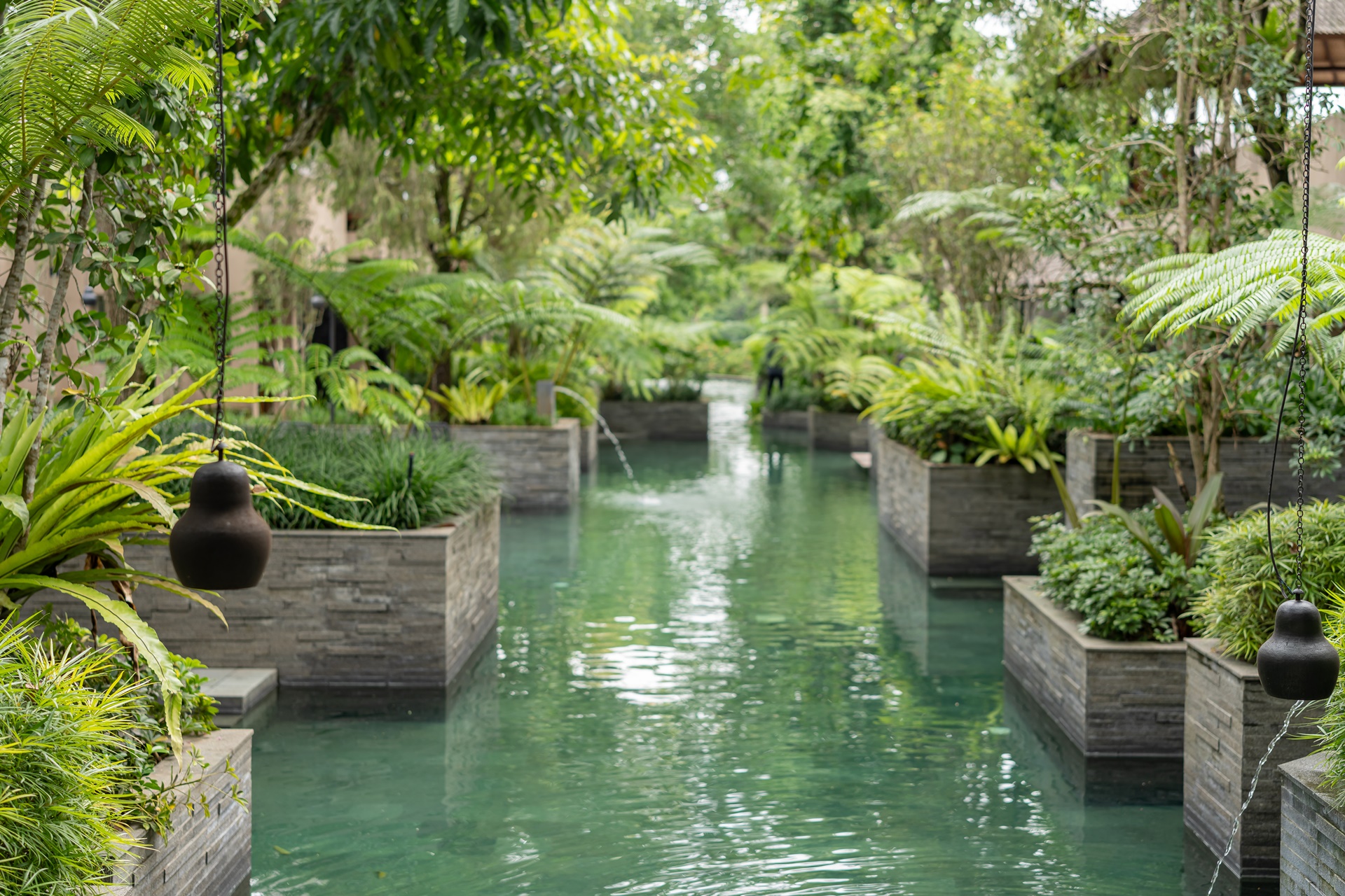 발리에서는 주민들이 물을 공유하는 수박 이라는 수문 문화가 있습니다. 9세기부터 1,000년 이상의 기간 동안 공동체의 협력으로 농사를 지어 왔으며 호시노야 발리는 발리의 전통 관개 수로 시설인 수박을 연상하게 하는 디자인으로 설계되었습니다.