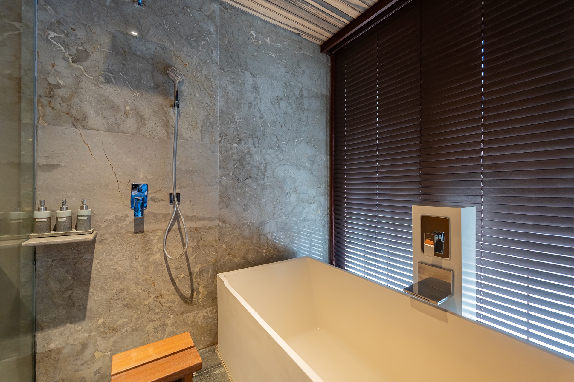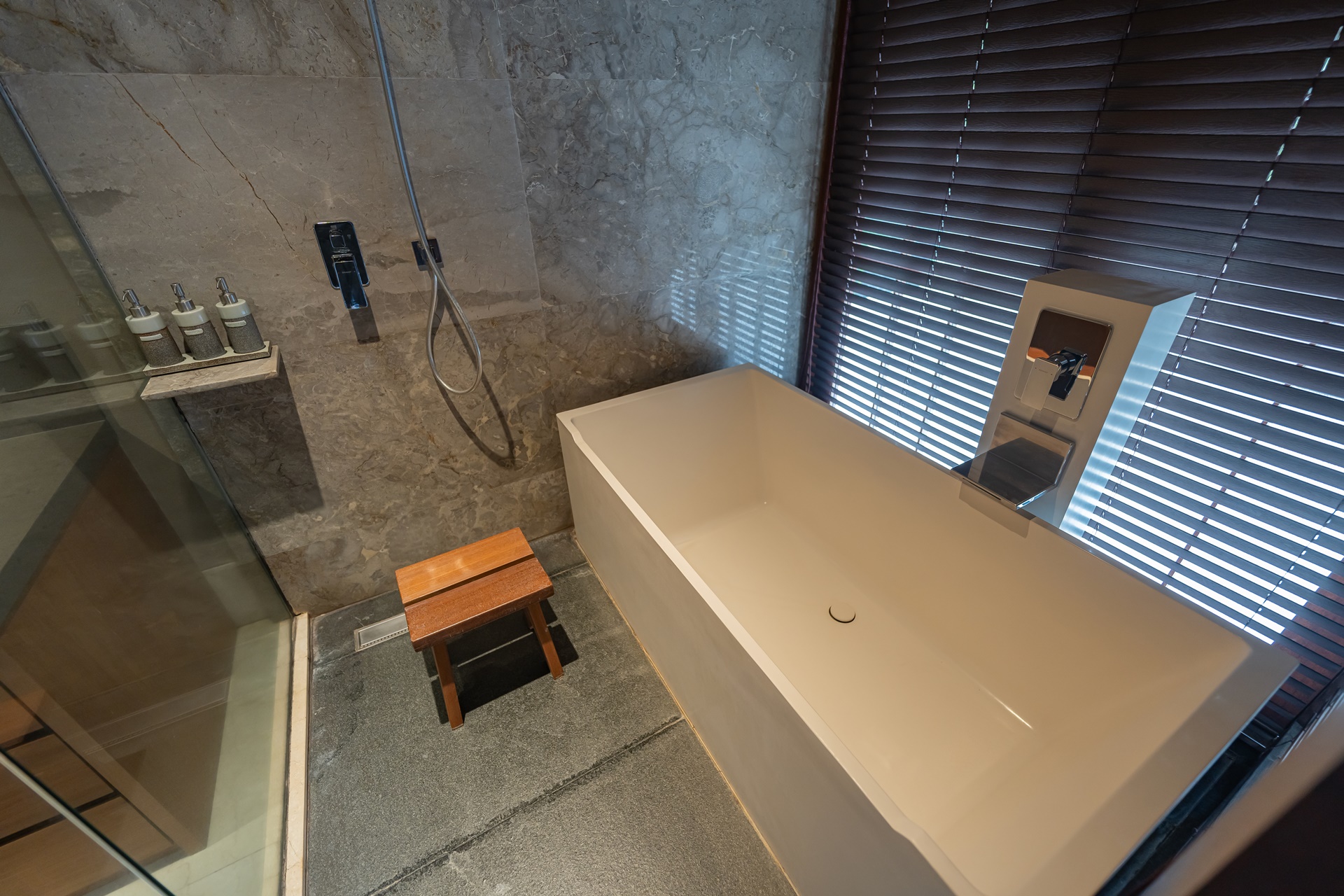 샤워실에는 샤워시설과 대형 욕조, 어메니티, 샤워실은 밖으로 나가는 문이 있어 수영장과 바로 연결되어 좋았습니다.