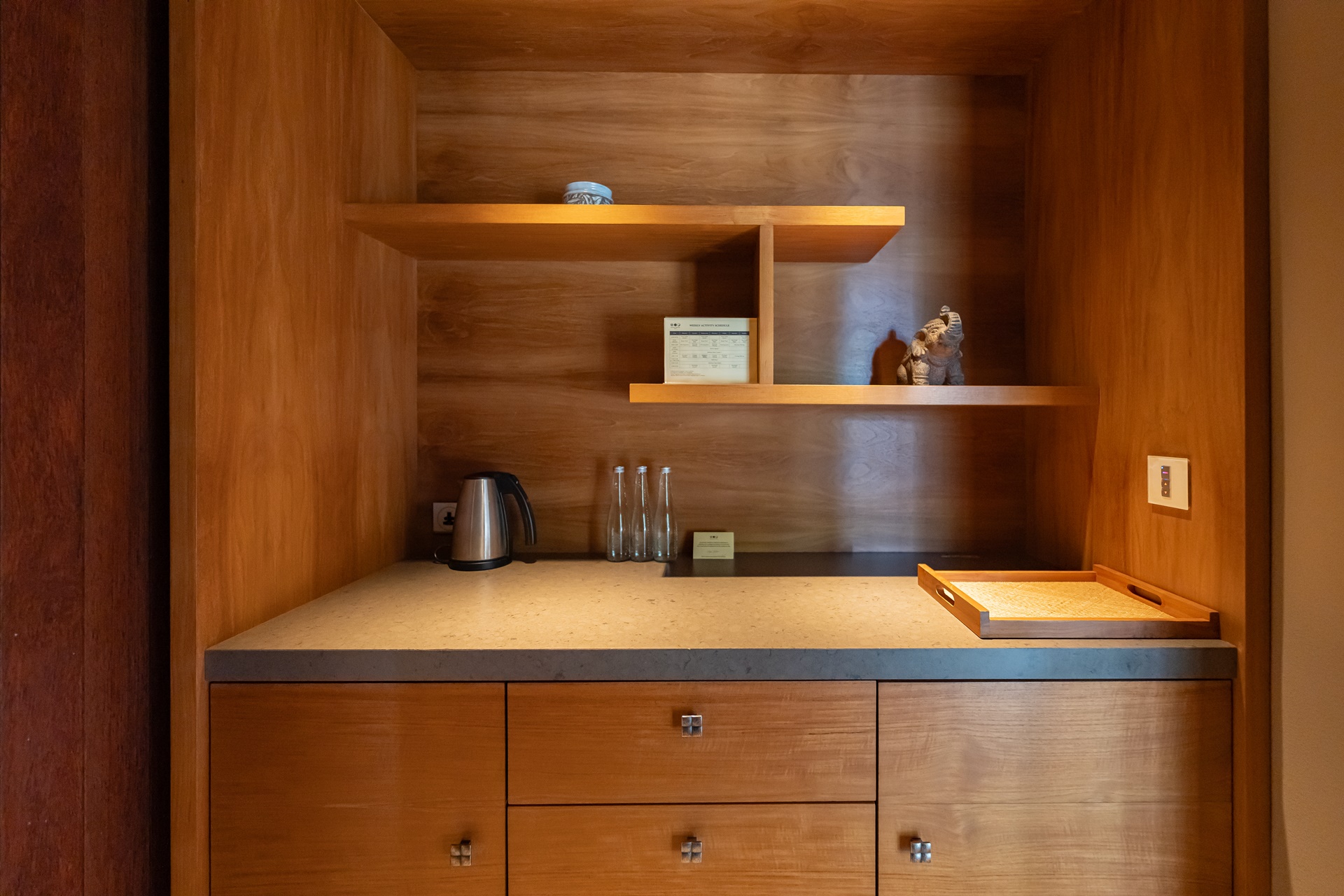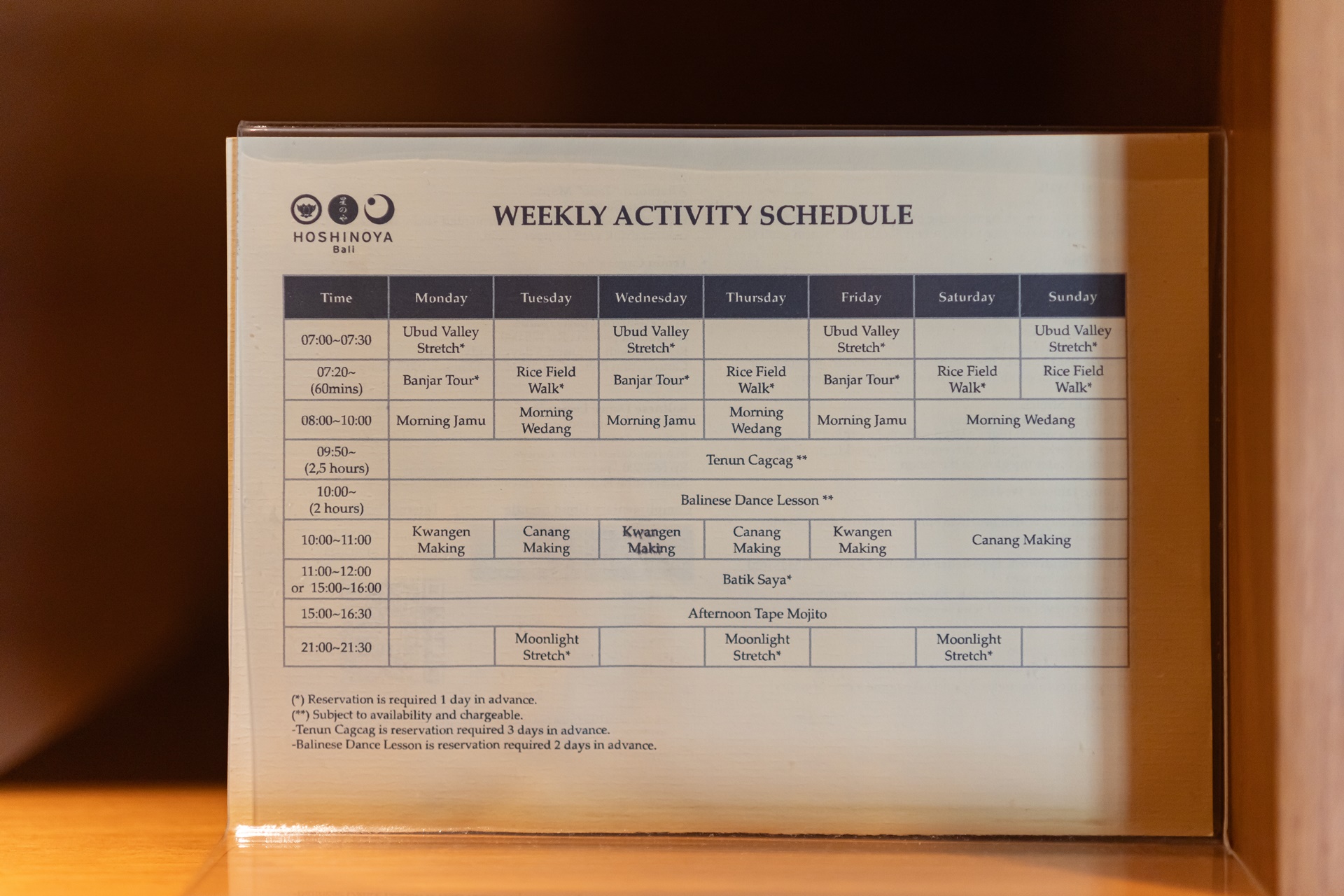 코끼리 오브제, 호시노야 발리에서 즐길 수 있는 엑티비티 스케줄 표, 생수 3병, 생수는 더 필요하면 계속 가져다 줍니다.