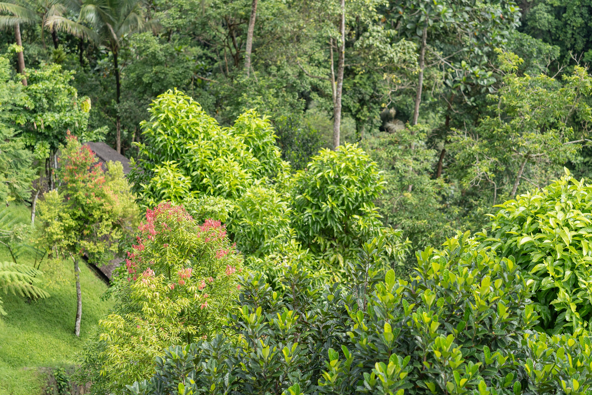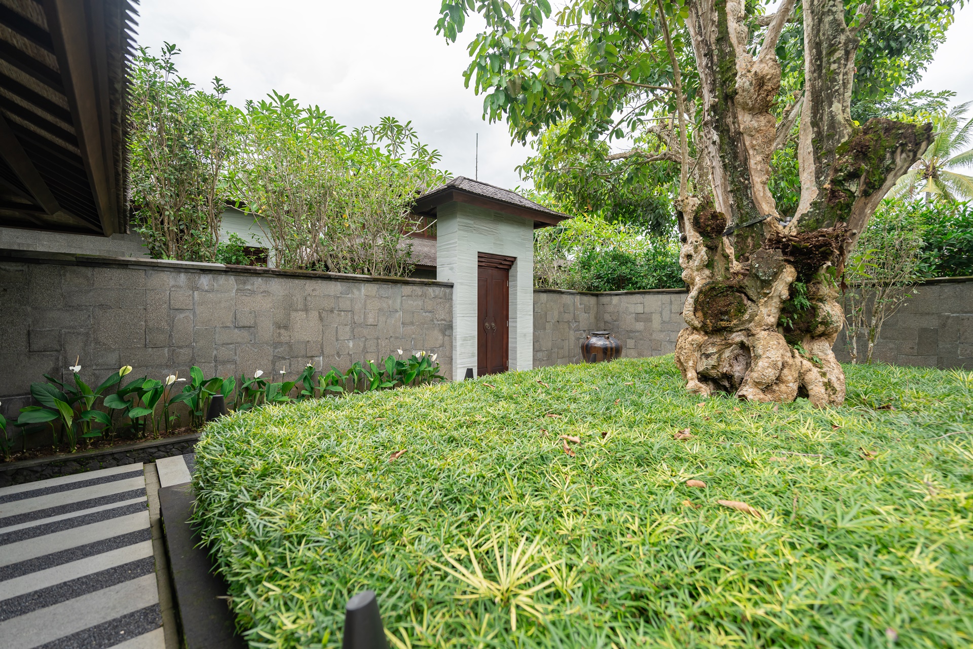 수영장 바로 앞은 나무로 살짝 가려져 있어 프라이빗 하며 그곳에서 조금만 나오면 넓고 긴 풀이 나옵니다.