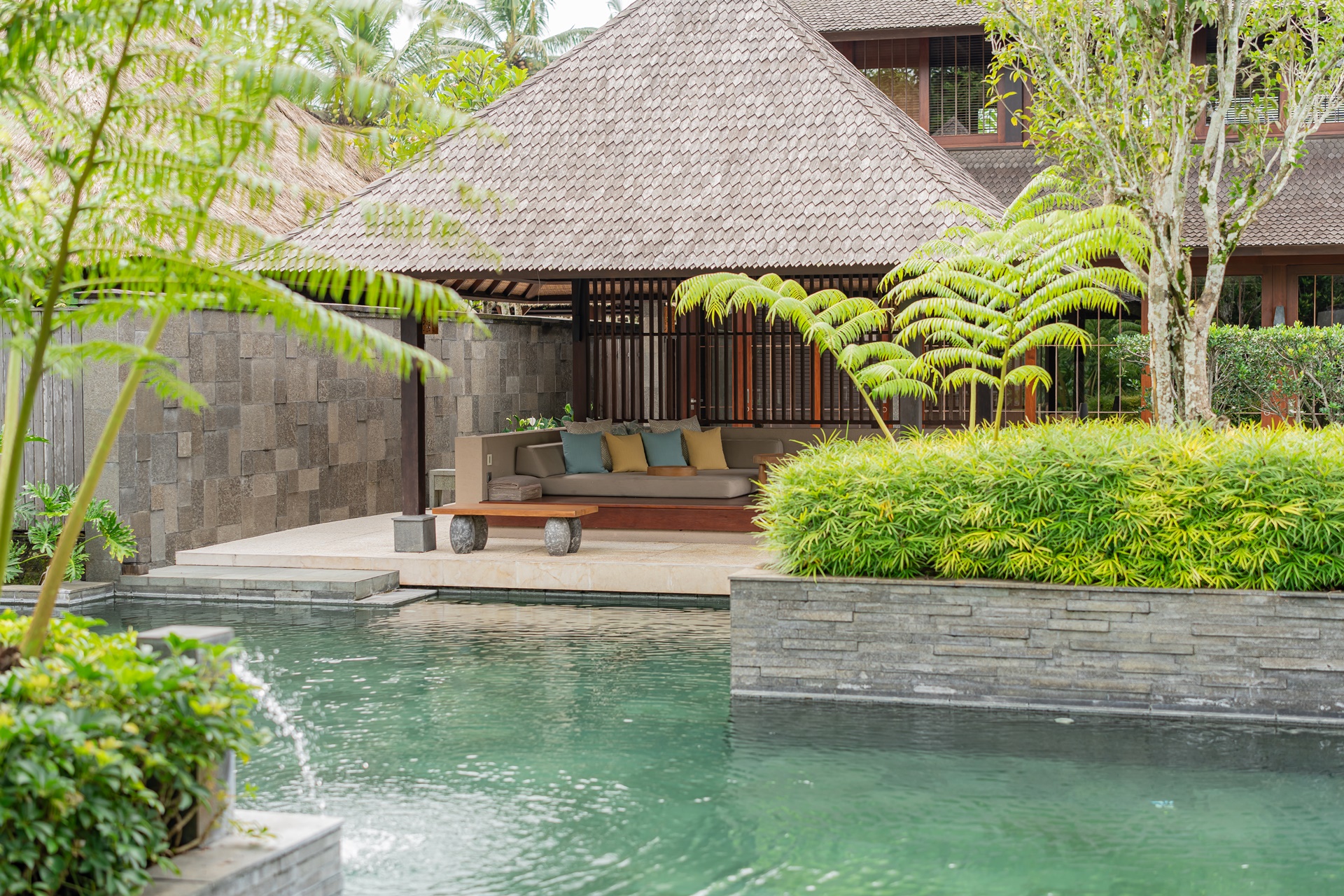 호시노야 발리의 수영장은 우붓의 사람들처럼 물을 공유하는 삶을 표현하고 있습니다. 발리의 아열대 기후에서는 매일 여러 차례 샤워를 하며 쾌적함을 유지하는 습관이 있어 이 수영장을 이용하며 발리 사람들과 같은 리듬으로 생활해 볼 수 있습니다.