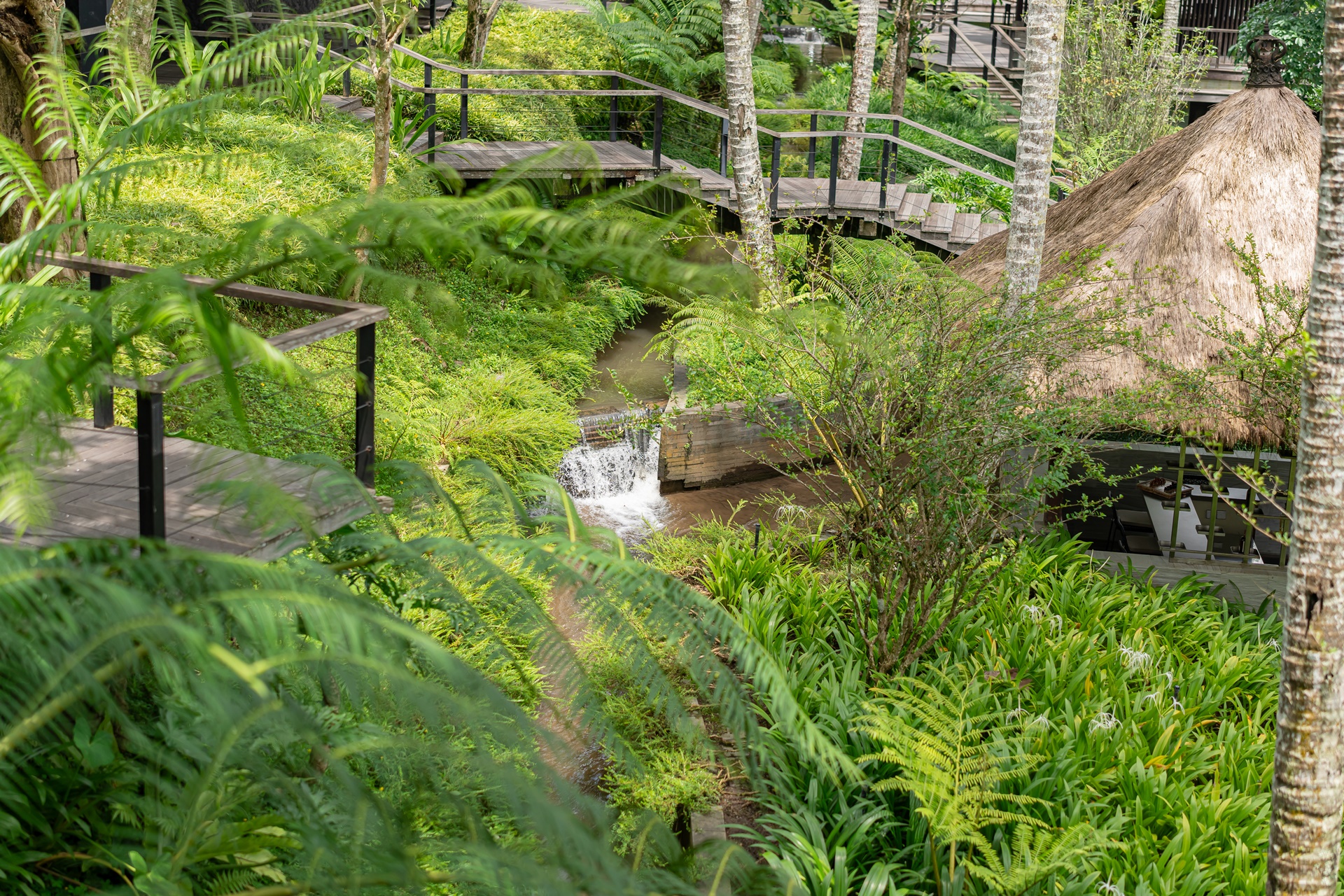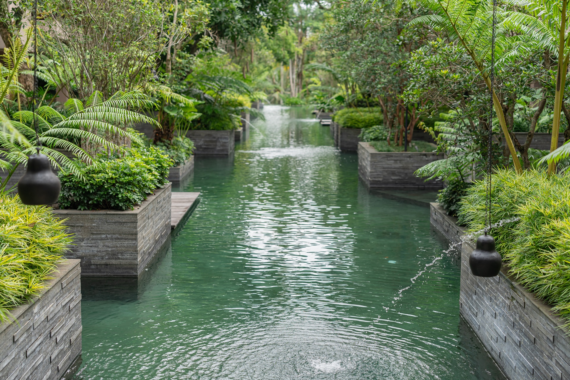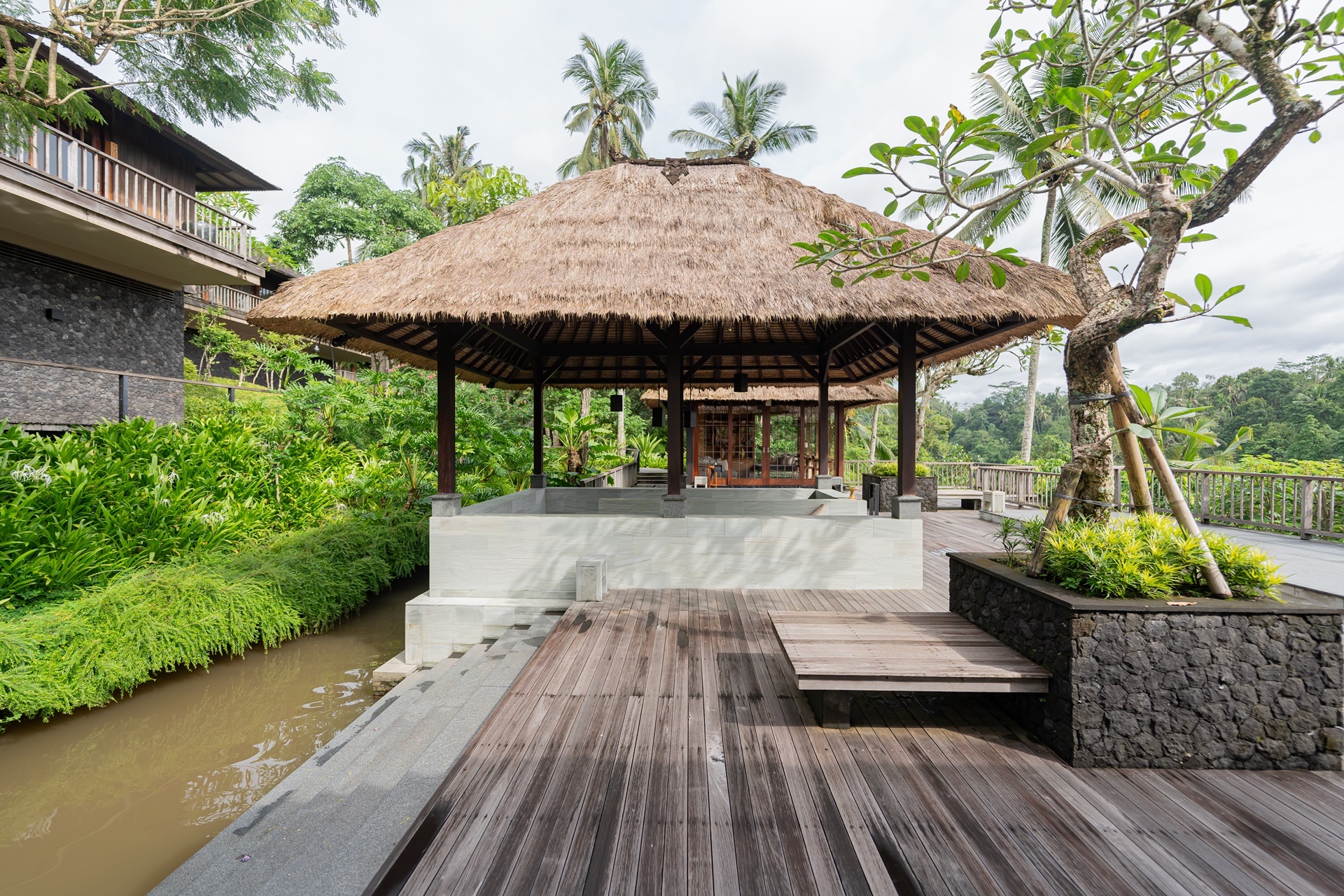 호시노야 발리는 이웃 마을의 수박에서 물을 공급 받으며 정원을 굽이굽이 흐르는 수로와 수박은 우붓의 물의 은혜를 상징하는 존재라고 합니다. 호시노야 발리 내부를 산책하거나 시설로 이동 할 때 기분 좋은 물소리가 항상 들려옵니다.