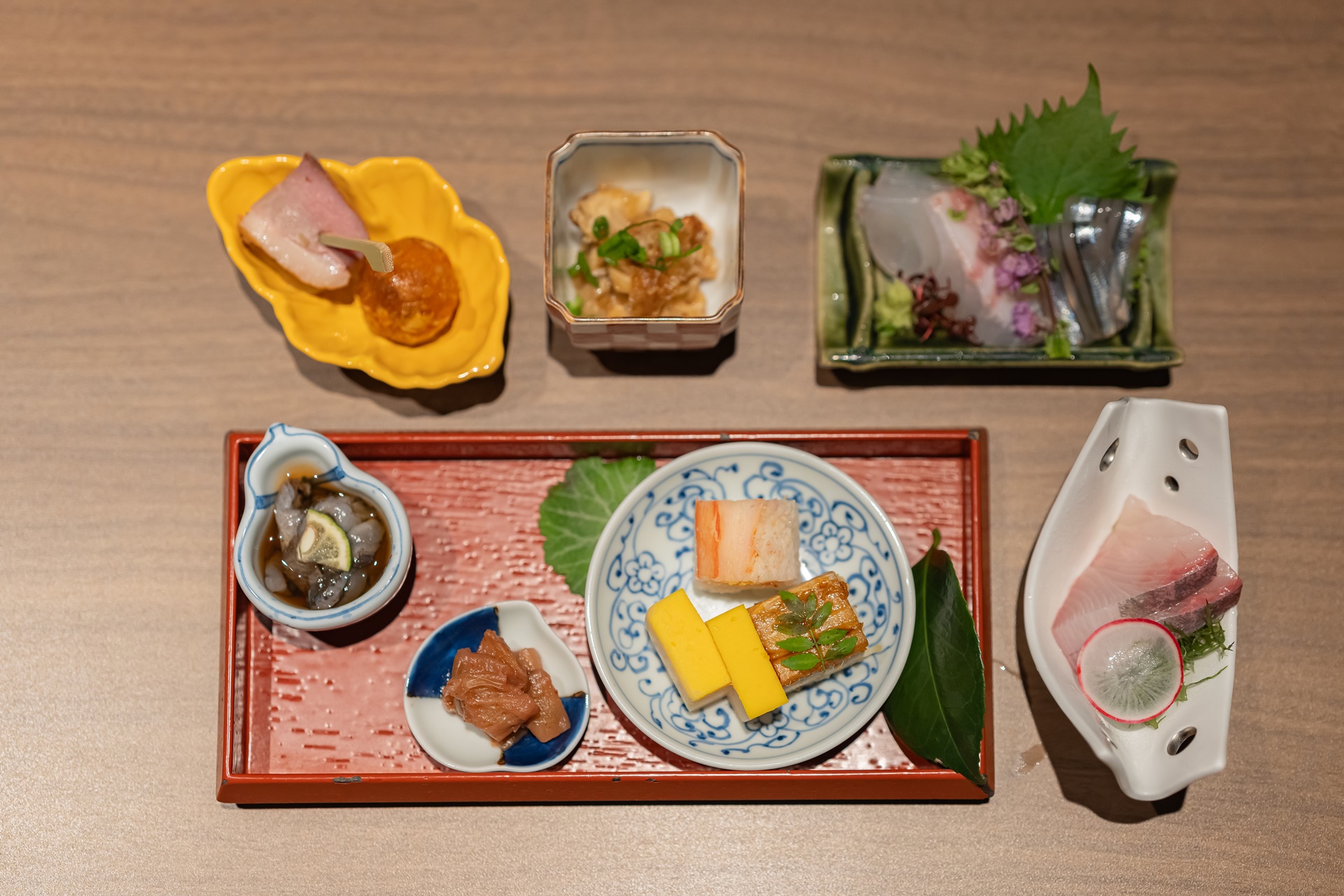 핫슨(八寸)은 작은 쟁반이나 이쁜 그릇에 담긴 요리를 말하며 제철 재료를 사용한 다양한 요리들이 나옵니다.