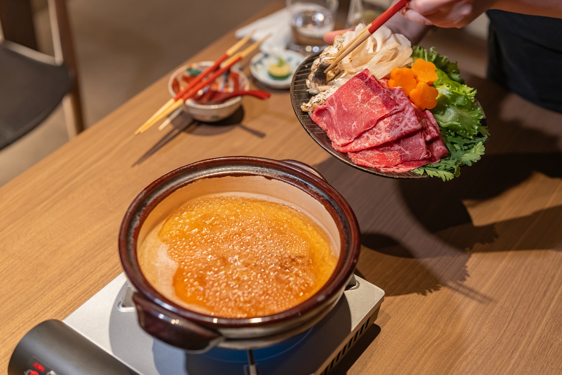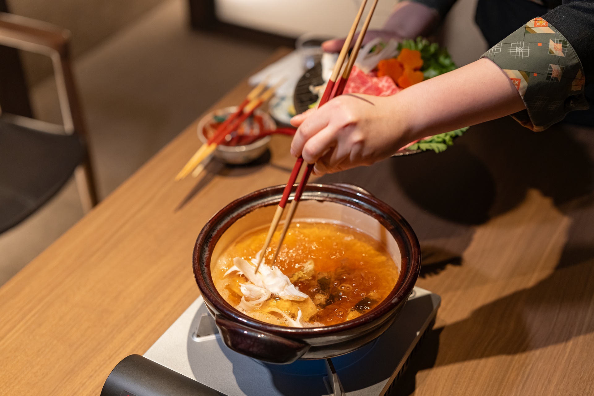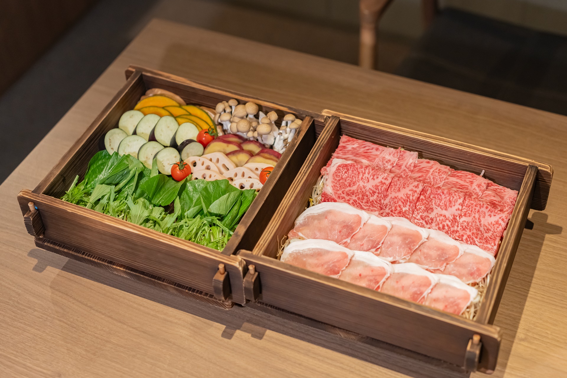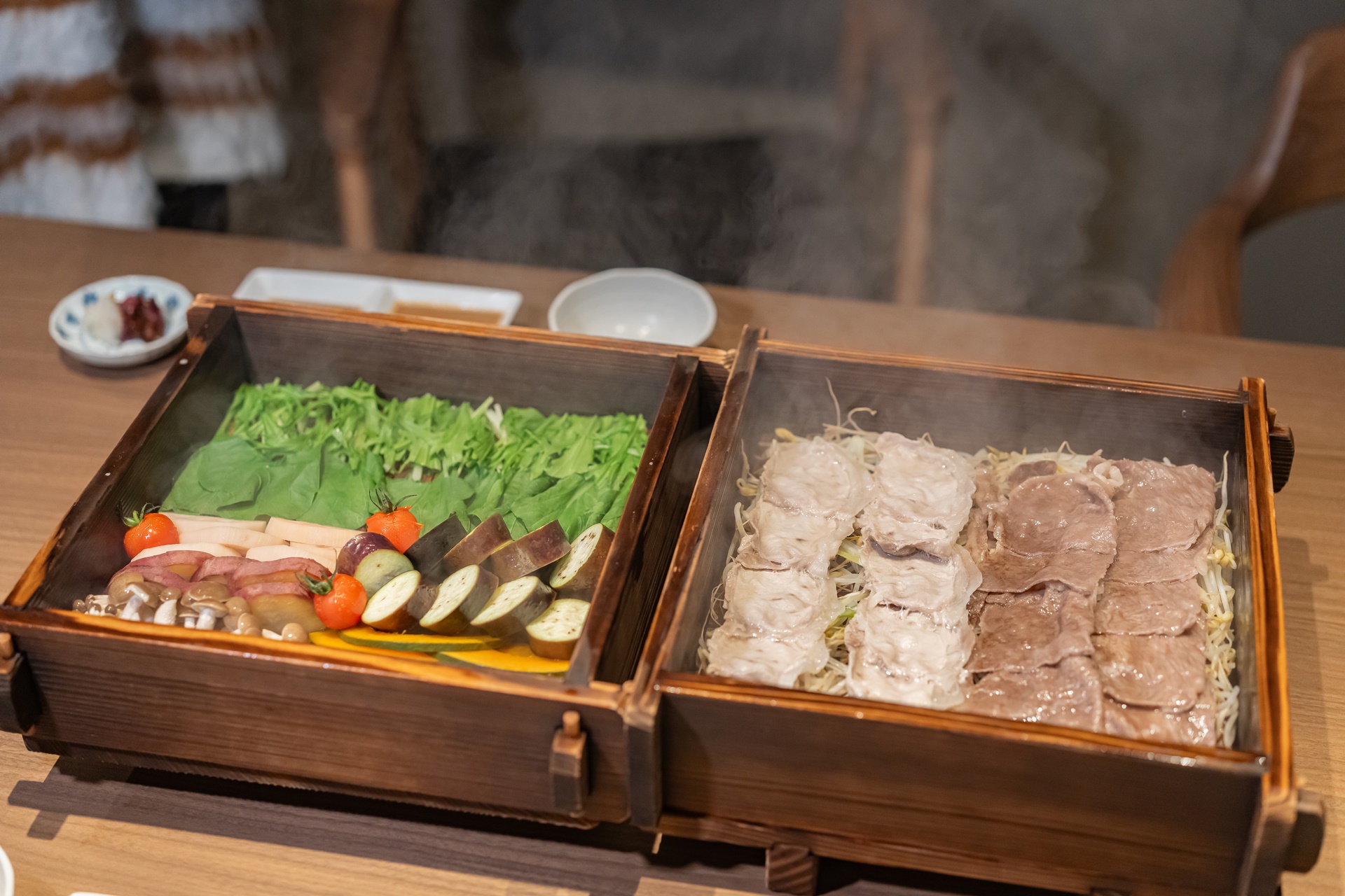 메인 요리는 샤브샤브 요리 입니다.